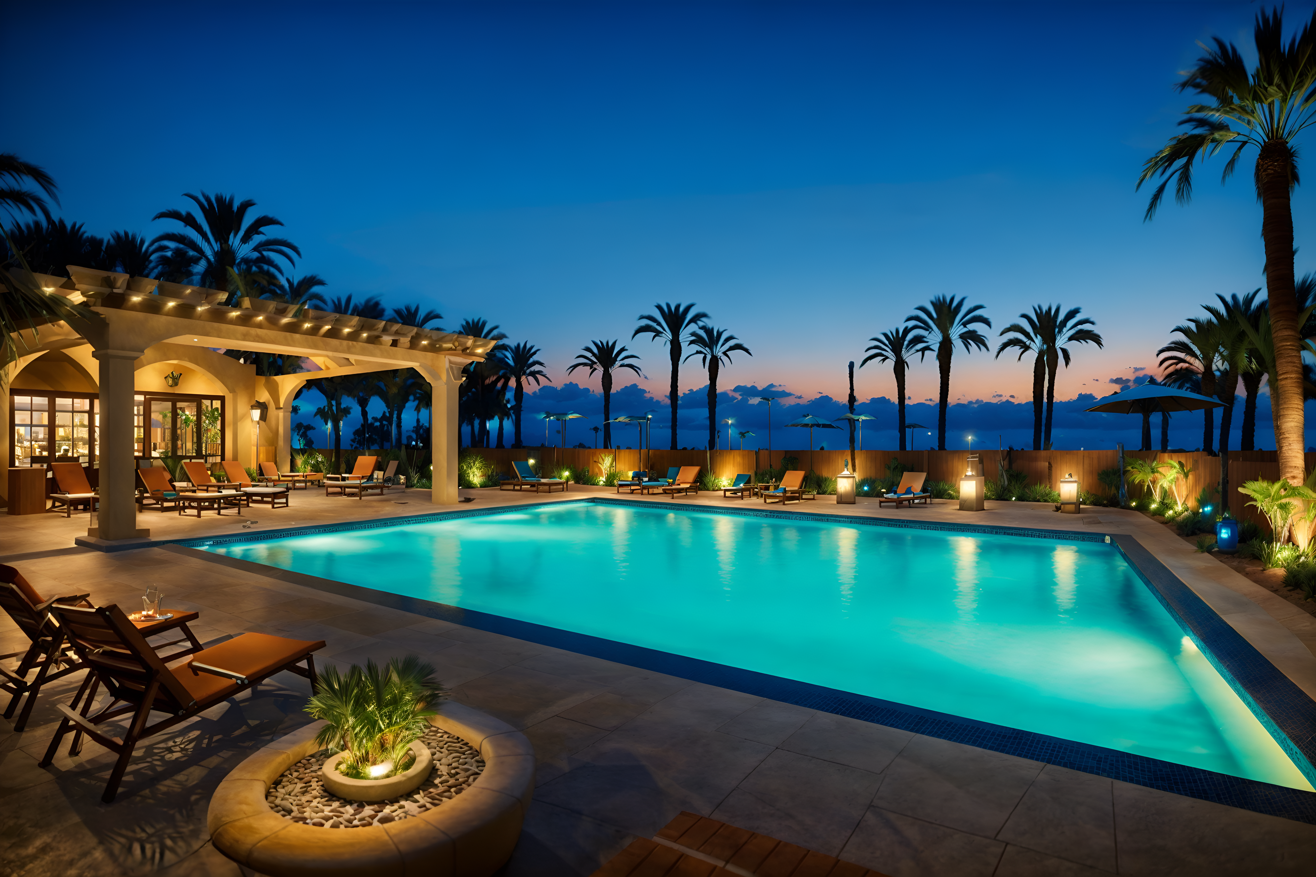 photo from pinterest of mediterranean-style designed (outdoor pool area ) with pool lights and pool and pool lounge chairs and pool lights cinematic photo, highly detailed, cinematic lighting, ultra-detailed, ultrarealistic, photorealism, 8k. trending on pinterest. mediterranean design style. masterpiece, cinematic light, ultrarealistic+, photorealistic+, 8k, raw photo, realistic, sharp focus on eyes, (symmetrical eyes), (intact eyes), hyperrealistic, highest quality, best quality, , highly detailed, masterpiece, best quality, extremely detailed 8k wallpaper, masterpiece, best quality, ultra-detailed, best shadow, detailed background, detailed face, detailed eyes, high contrast, best illumination, detailed face, dulux, caustic, dynamic angle, detailed glow. dramatic lighting. highly detailed, insanely detailed hair, symmetrical, intricate details, professionally retouched, 8k high definition. strong bokeh. award winning photo.