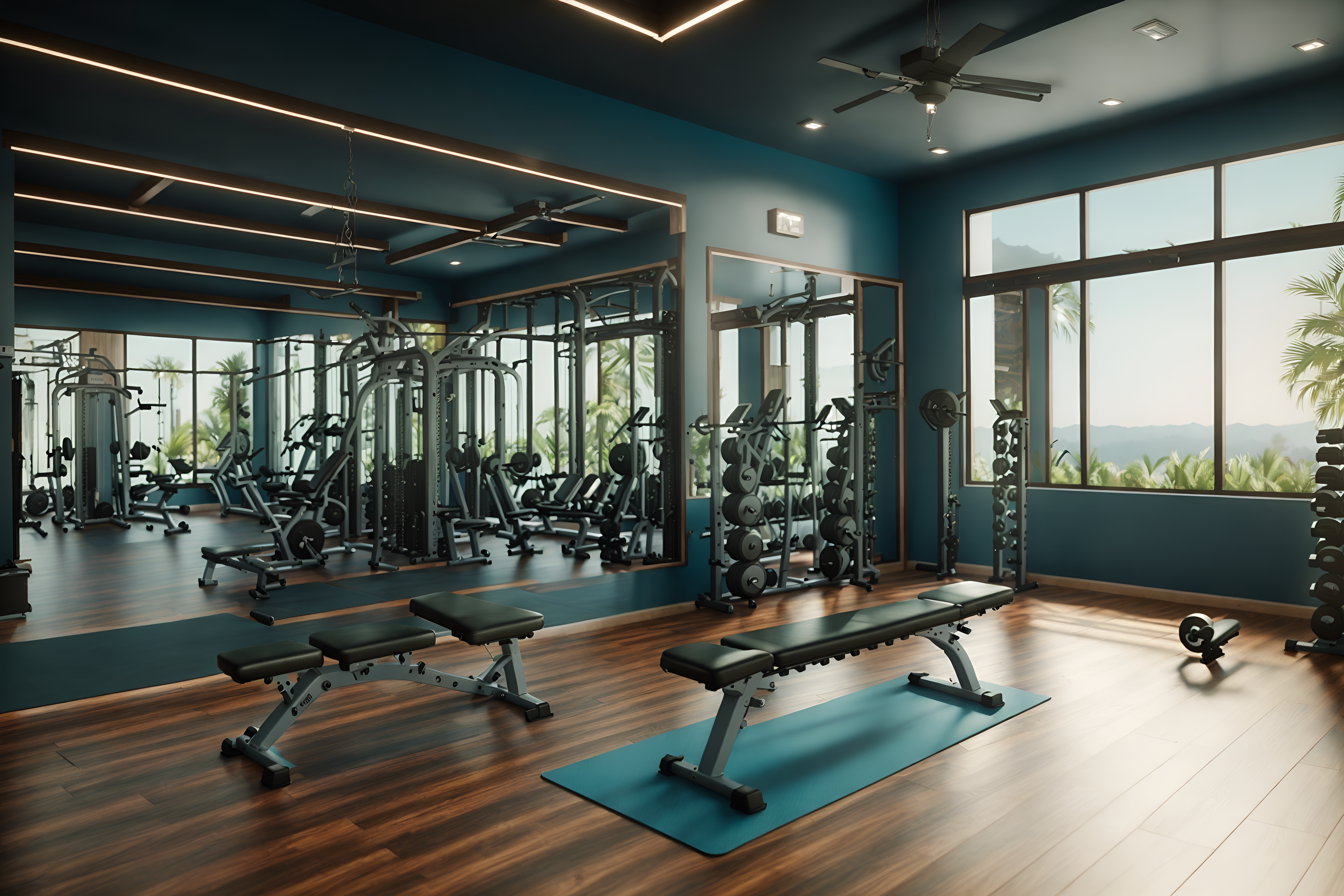 photo from pinterest of mediterranean-style interior designed (fitness gym interior) with crosstrainer and bench press and dumbbell stand and squat rack and exercise bicycle and crosstrainer cinematic photo, highly detailed, cinematic lighting, ultra-detailed, ultrarealistic, photorealism, 8k. trending on pinterest. mediterranean interior design style. masterpiece, cinematic light, ultrarealistic+, photorealistic+, 8k, raw photo, realistic, sharp focus on eyes, (symmetrical eyes), (intact eyes), hyperrealistic, highest quality, best quality, , highly detailed, masterpiece, best quality, extremely detailed 8k wallpaper, masterpiece, best quality, ultra-detailed, best shadow, detailed background, detailed face, detailed eyes, high contrast, best illumination, detailed face, dulux, caustic, dynamic angle, detailed glow. dramatic lighting. highly detailed, insanely detailed hair, symmetrical, intricate details, professionally retouched, 8k high definition. strong bokeh. award winning photo.