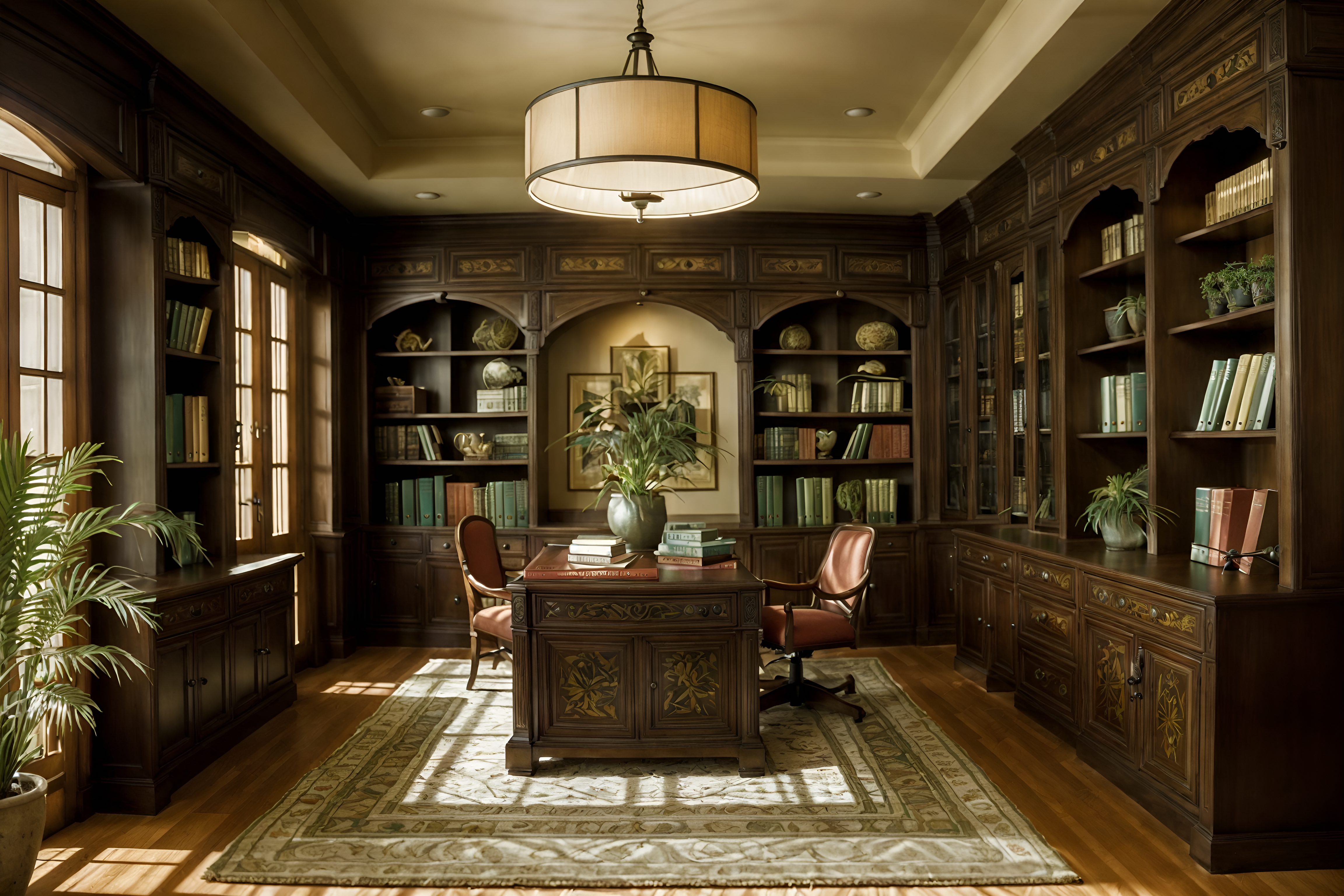 photo from pinterest of mediterranean-style interior designed (study room interior) with cabinets and plant and desk lamp and writing desk and lounge chair and office chair and bookshelves and cabinets cinematic photo, highly detailed, cinematic lighting, ultra-detailed, ultrarealistic, photorealism, 8k. trending on pinterest. mediterranean interior design style. masterpiece, cinematic light, ultrarealistic+, photorealistic+, 8k, raw photo, realistic, sharp focus on eyes, (symmetrical eyes), (intact eyes), hyperrealistic, highest quality, best quality, , highly detailed, masterpiece, best quality, extremely detailed 8k wallpaper, masterpiece, best quality, ultra-detailed, best shadow, detailed background, detailed face, detailed eyes, high contrast, best illumination, detailed face, dulux, caustic, dynamic angle, detailed glow. dramatic lighting. highly detailed, insanely detailed hair, symmetrical, intricate details, professionally retouched, 8k high definition. strong bokeh. award winning photo.