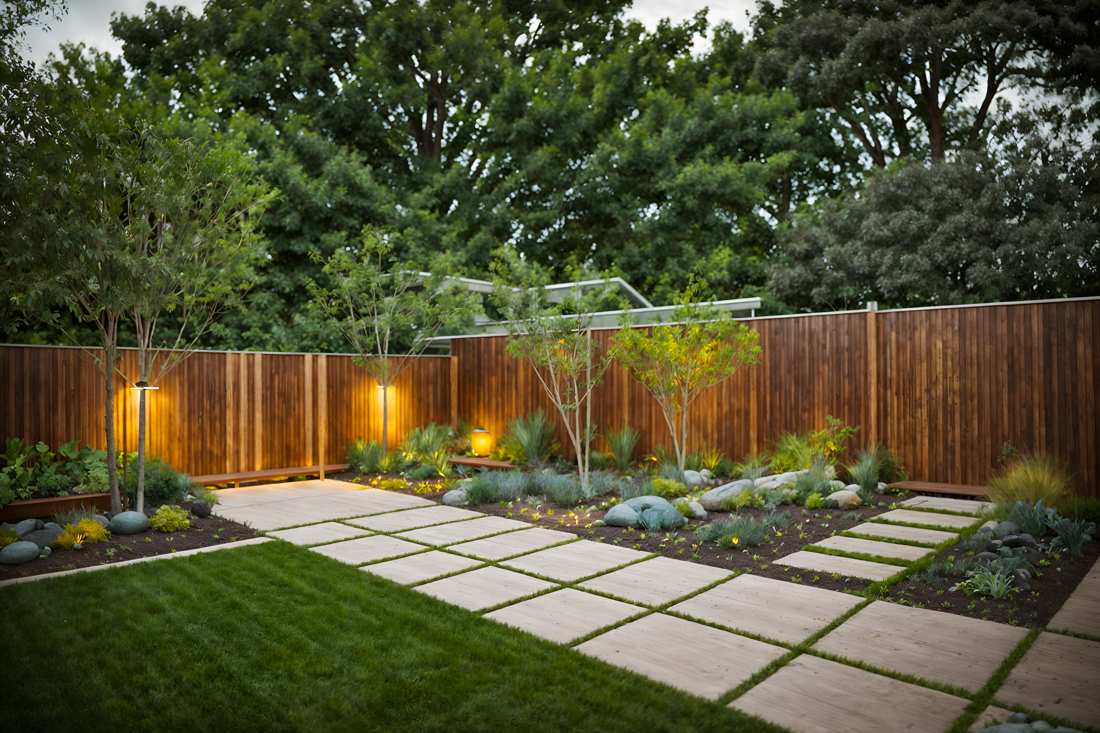midcentury modern outdoor gardensinterior decorate this outdoor garden with midcentury modern style. . . with garden tree and grass and garden plants and garden tree. . with minimalist and graphic shapes and integrating indoor and outdoor motifs and natural and manmade materials and vibrant colors and function over form and mid century modern mobile chandelier and muted tones. . .