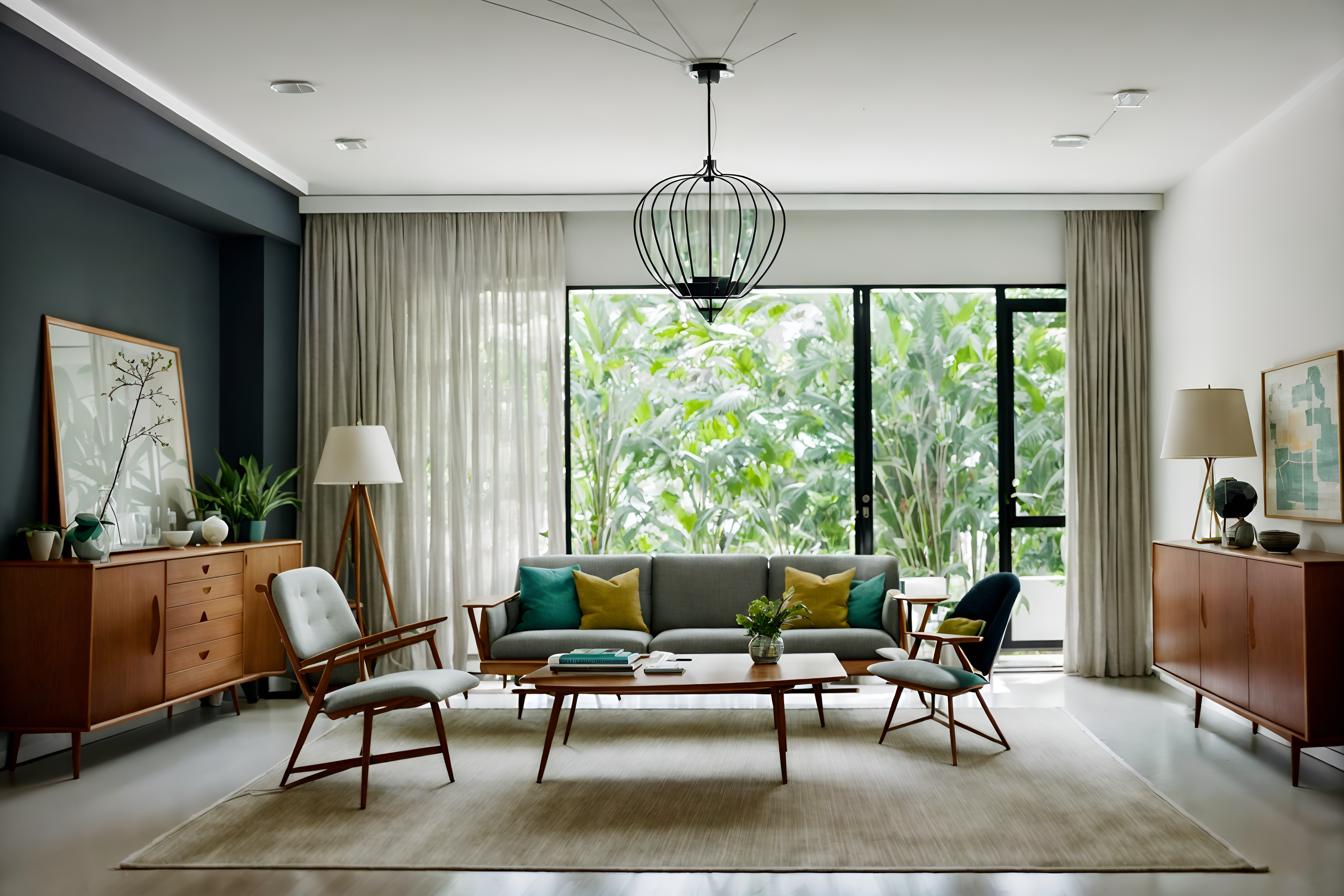 photo from pinterest of midcentury modern-style interior designed (exhibition space interior) . with minimalist and function over form and organic and geometric shapes and integrating indoor and outdoor motifs and clean lines and nature indoors and muted tones and mid century modern mobile chandelier. . cinematic photo, highly detailed, cinematic lighting, ultra-detailed, ultrarealistic, photorealism, 8k. trending on pinterest. midcentury modern interior design style. masterpiece, cinematic light, ultrarealistic+, photorealistic+, 8k, raw photo, realistic, sharp focus on eyes, (symmetrical eyes), (intact eyes), hyperrealistic, highest quality, best quality, , highly detailed, masterpiece, best quality, extremely detailed 8k wallpaper, masterpiece, best quality, ultra-detailed, best shadow, detailed background, detailed face, detailed eyes, high contrast, best illumination, detailed face, dulux, caustic, dynamic angle, detailed glow. dramatic lighting. highly detailed, insanely detailed hair, symmetrical, intricate details, professionally retouched, 8k high definition. strong bokeh. award winning photo.