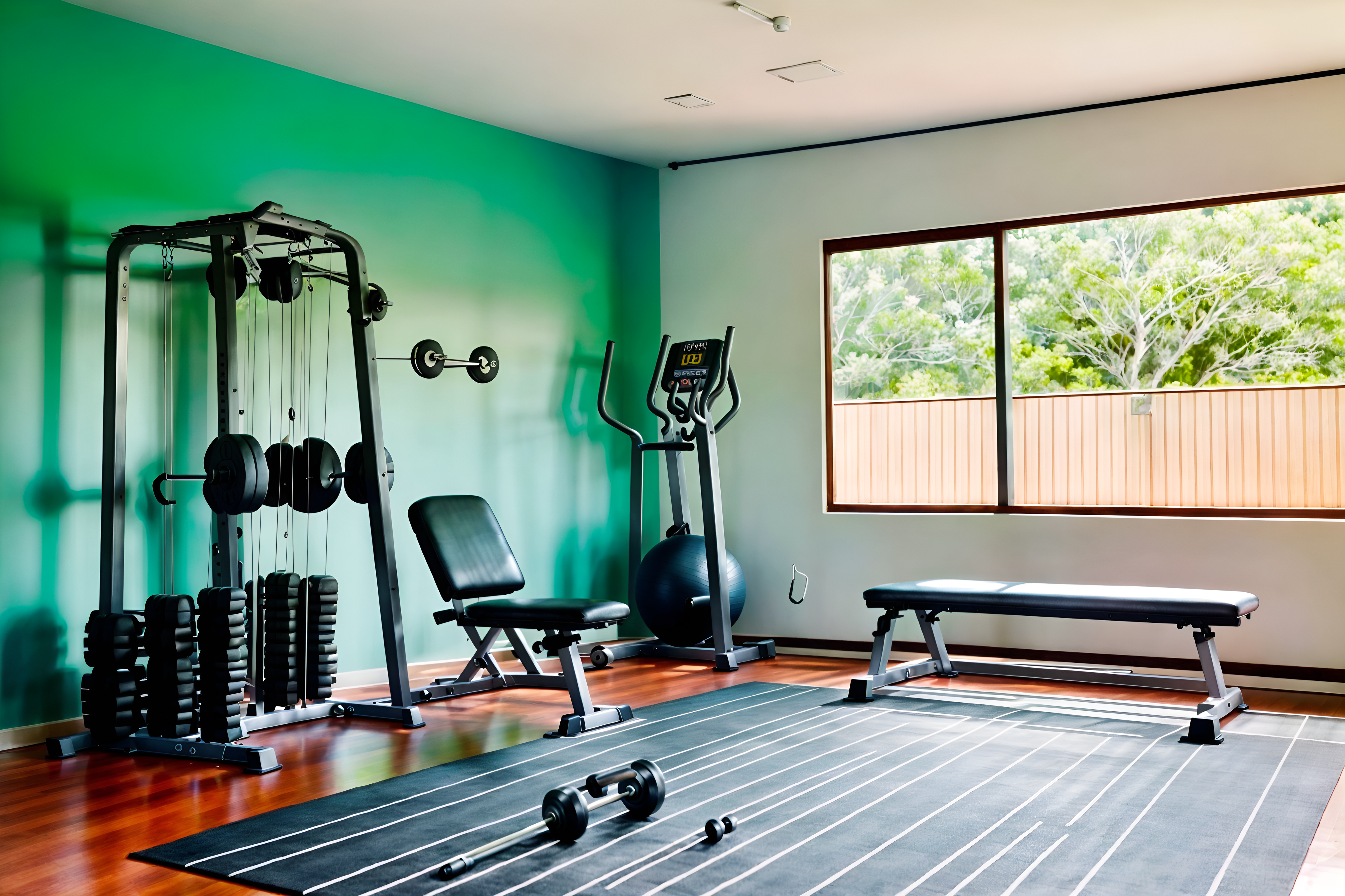 photo from pinterest of midcentury modern-style interior designed (fitness gym interior) with crosstrainer and bench press and squat rack and dumbbell stand and exercise bicycle and crosstrainer. . with minimalist and clean lines and integrating indoor and outdoor motifs and organic and geometric shapes and vibrant colors and graphic shapes and natural and manmade materials and function over form. . cinematic photo, highly detailed, cinematic lighting, ultra-detailed, ultrarealistic, photorealism, 8k. trending on pinterest. midcentury modern interior design style. masterpiece, cinematic light, ultrarealistic+, photorealistic+, 8k, raw photo, realistic, sharp focus on eyes, (symmetrical eyes), (intact eyes), hyperrealistic, highest quality, best quality, , highly detailed, masterpiece, best quality, extremely detailed 8k wallpaper, masterpiece, best quality, ultra-detailed, best shadow, detailed background, detailed face, detailed eyes, high contrast, best illumination, detailed face, dulux, caustic, dynamic angle, detailed glow. dramatic lighting. highly detailed, insanely detailed hair, symmetrical, intricate details, professionally retouched, 8k high definition. strong bokeh. award winning photo.