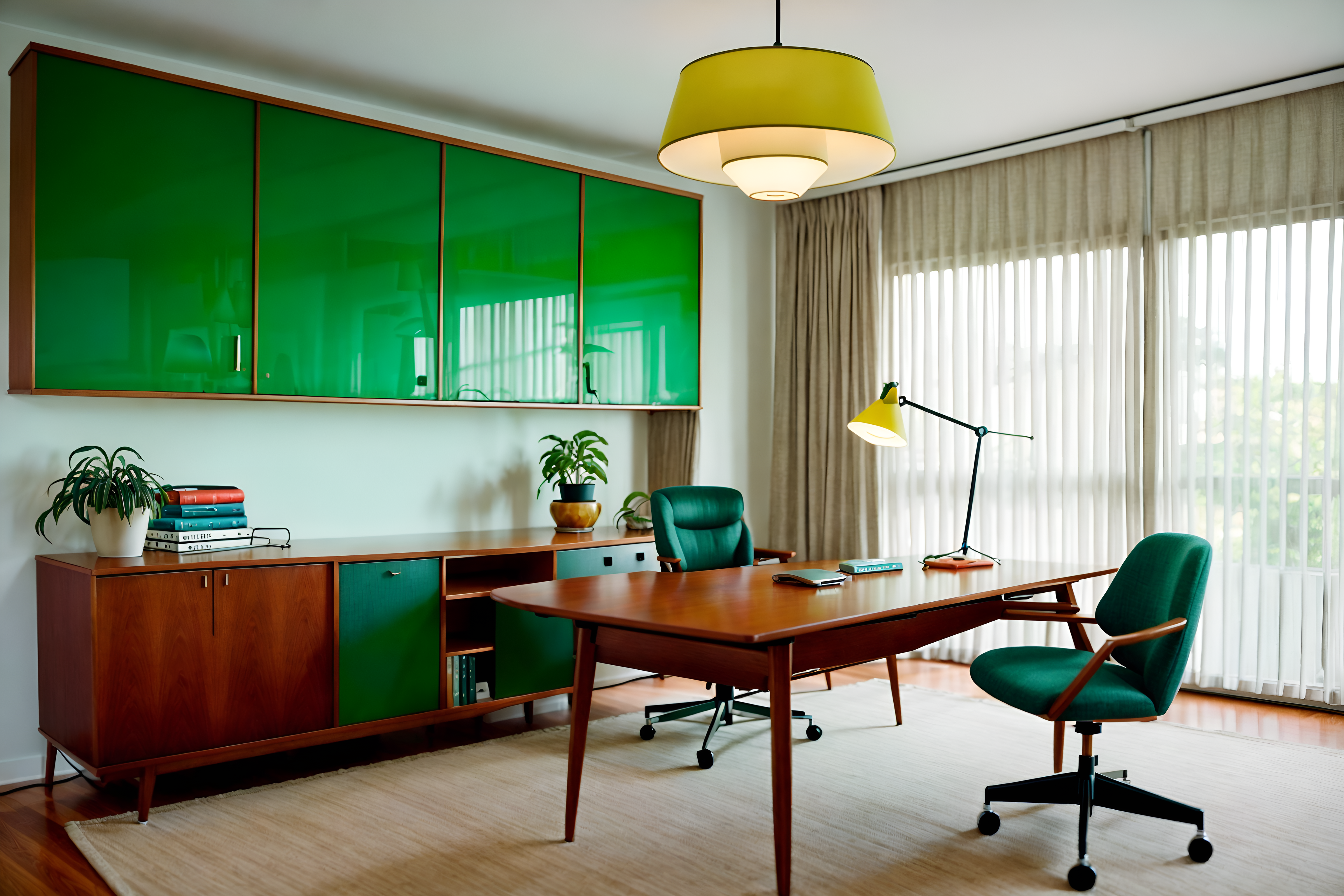 photo from pinterest of midcentury modern-style interior designed (home office interior) with office chair and computer desk and plant and desk lamp and cabinets and office chair. . with graphic shapes and function over form and minimalist and mid century modern mobile chandelier and vibrant colors and nature indoors and muted tones and clean lines. . cinematic photo, highly detailed, cinematic lighting, ultra-detailed, ultrarealistic, photorealism, 8k. trending on pinterest. midcentury modern interior design style. masterpiece, cinematic light, ultrarealistic+, photorealistic+, 8k, raw photo, realistic, sharp focus on eyes, (symmetrical eyes), (intact eyes), hyperrealistic, highest quality, best quality, , highly detailed, masterpiece, best quality, extremely detailed 8k wallpaper, masterpiece, best quality, ultra-detailed, best shadow, detailed background, detailed face, detailed eyes, high contrast, best illumination, detailed face, dulux, caustic, dynamic angle, detailed glow. dramatic lighting. highly detailed, insanely detailed hair, symmetrical, intricate details, professionally retouched, 8k high definition. strong bokeh. award winning photo.