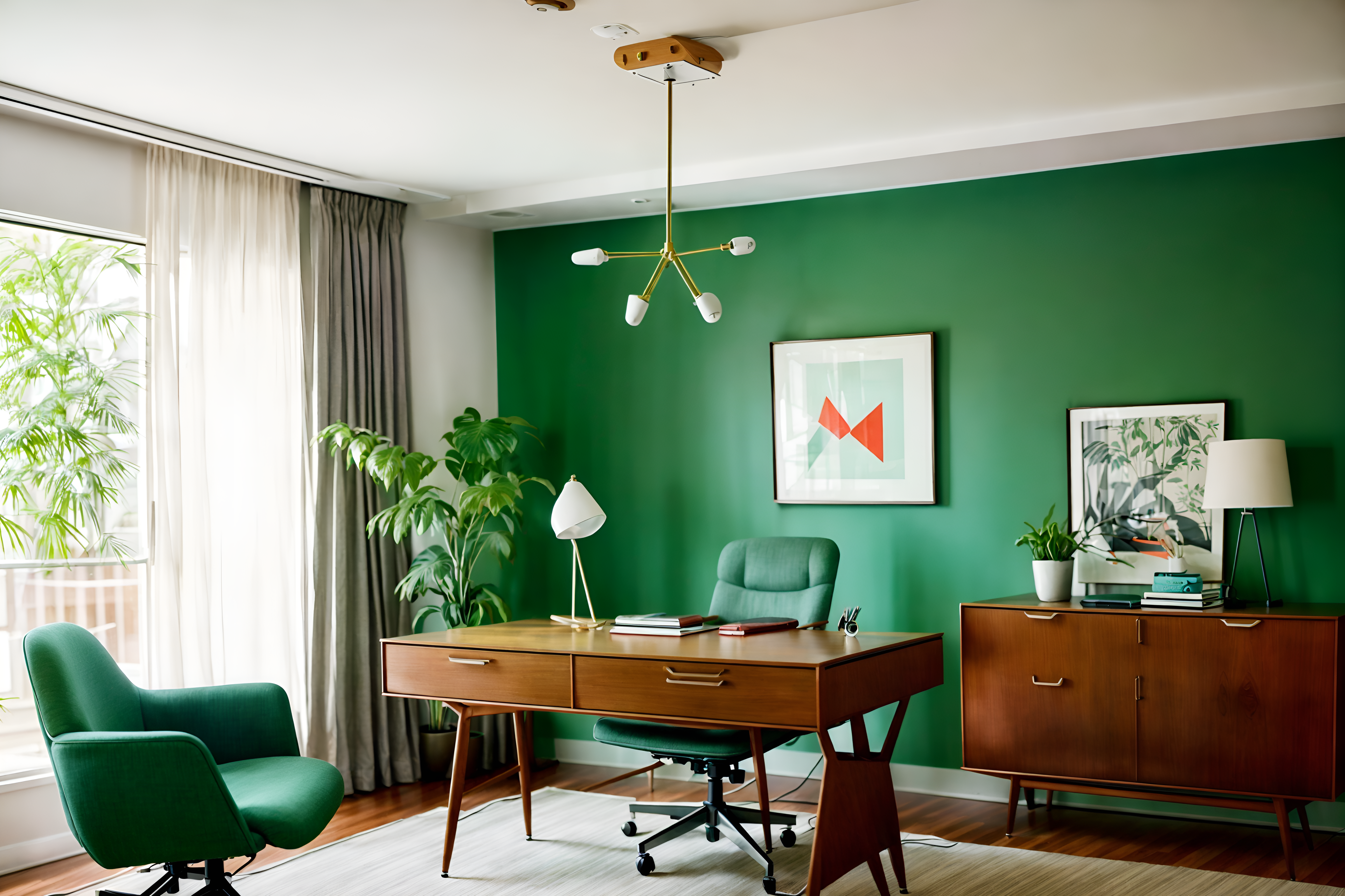 photo from pinterest of midcentury modern-style interior designed (home office interior) with office chair and computer desk and plant and desk lamp and cabinets and office chair. . with graphic shapes and function over form and minimalist and mid century modern mobile chandelier and vibrant colors and nature indoors and muted tones and clean lines. . cinematic photo, highly detailed, cinematic lighting, ultra-detailed, ultrarealistic, photorealism, 8k. trending on pinterest. midcentury modern interior design style. masterpiece, cinematic light, ultrarealistic+, photorealistic+, 8k, raw photo, realistic, sharp focus on eyes, (symmetrical eyes), (intact eyes), hyperrealistic, highest quality, best quality, , highly detailed, masterpiece, best quality, extremely detailed 8k wallpaper, masterpiece, best quality, ultra-detailed, best shadow, detailed background, detailed face, detailed eyes, high contrast, best illumination, detailed face, dulux, caustic, dynamic angle, detailed glow. dramatic lighting. highly detailed, insanely detailed hair, symmetrical, intricate details, professionally retouched, 8k high definition. strong bokeh. award winning photo.