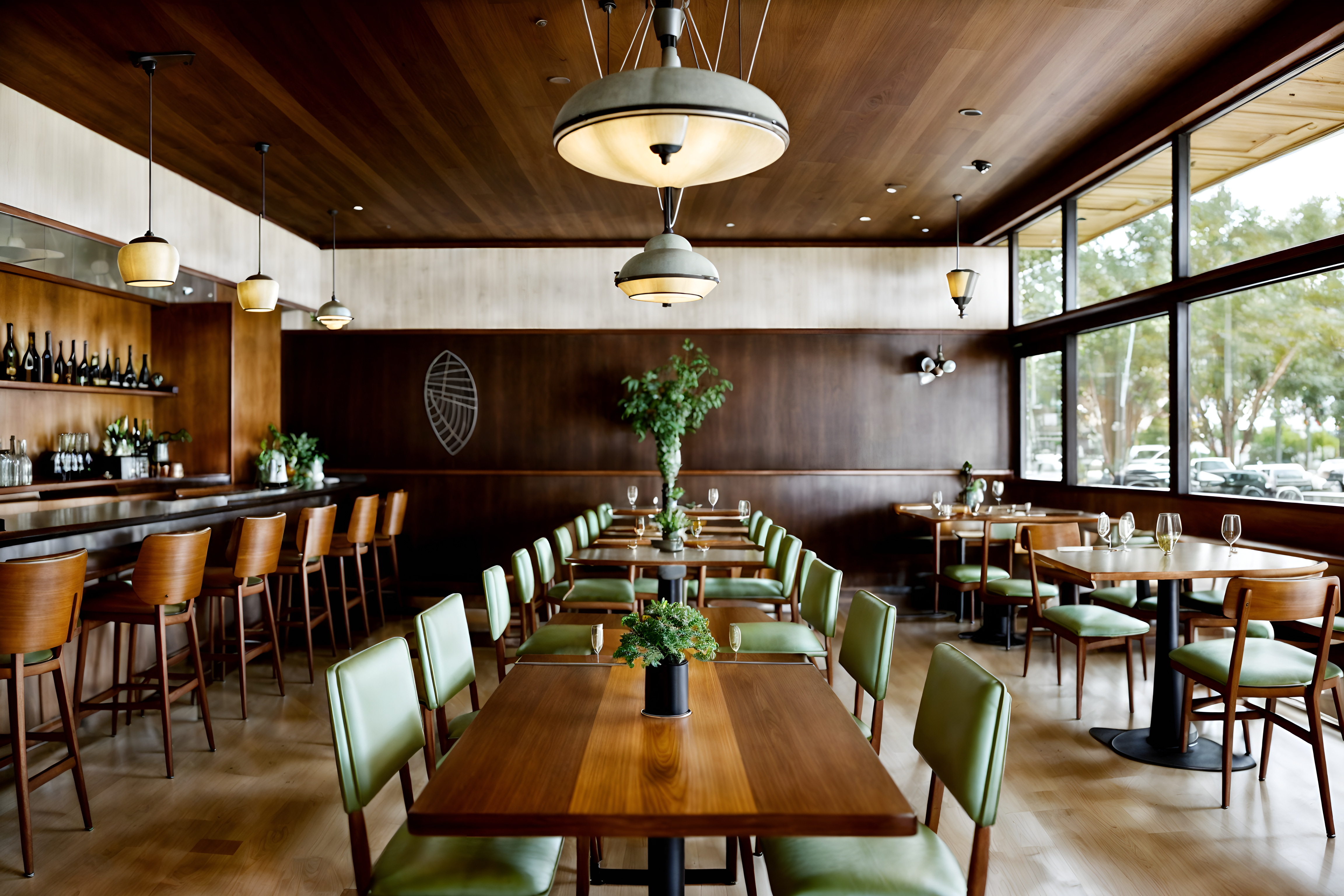 photo from pinterest of midcentury modern-style interior designed (restaurant interior) with restaurant decor and restaurant dining tables and restaurant bar and restaurant chairs and restaurant decor. . with function over form and organic and geometric shapes and mid century modern mobile chandelier and clean lines and graphic shapes and natural and manmade materials and muted tones and integrating indoor and outdoor motifs. . cinematic photo, highly detailed, cinematic lighting, ultra-detailed, ultrarealistic, photorealism, 8k. trending on pinterest. midcentury modern interior design style. masterpiece, cinematic light, ultrarealistic+, photorealistic+, 8k, raw photo, realistic, sharp focus on eyes, (symmetrical eyes), (intact eyes), hyperrealistic, highest quality, best quality, , highly detailed, masterpiece, best quality, extremely detailed 8k wallpaper, masterpiece, best quality, ultra-detailed, best shadow, detailed background, detailed face, detailed eyes, high contrast, best illumination, detailed face, dulux, caustic, dynamic angle, detailed glow. dramatic lighting. highly detailed, insanely detailed hair, symmetrical, intricate details, professionally retouched, 8k high definition. strong bokeh. award winning photo.