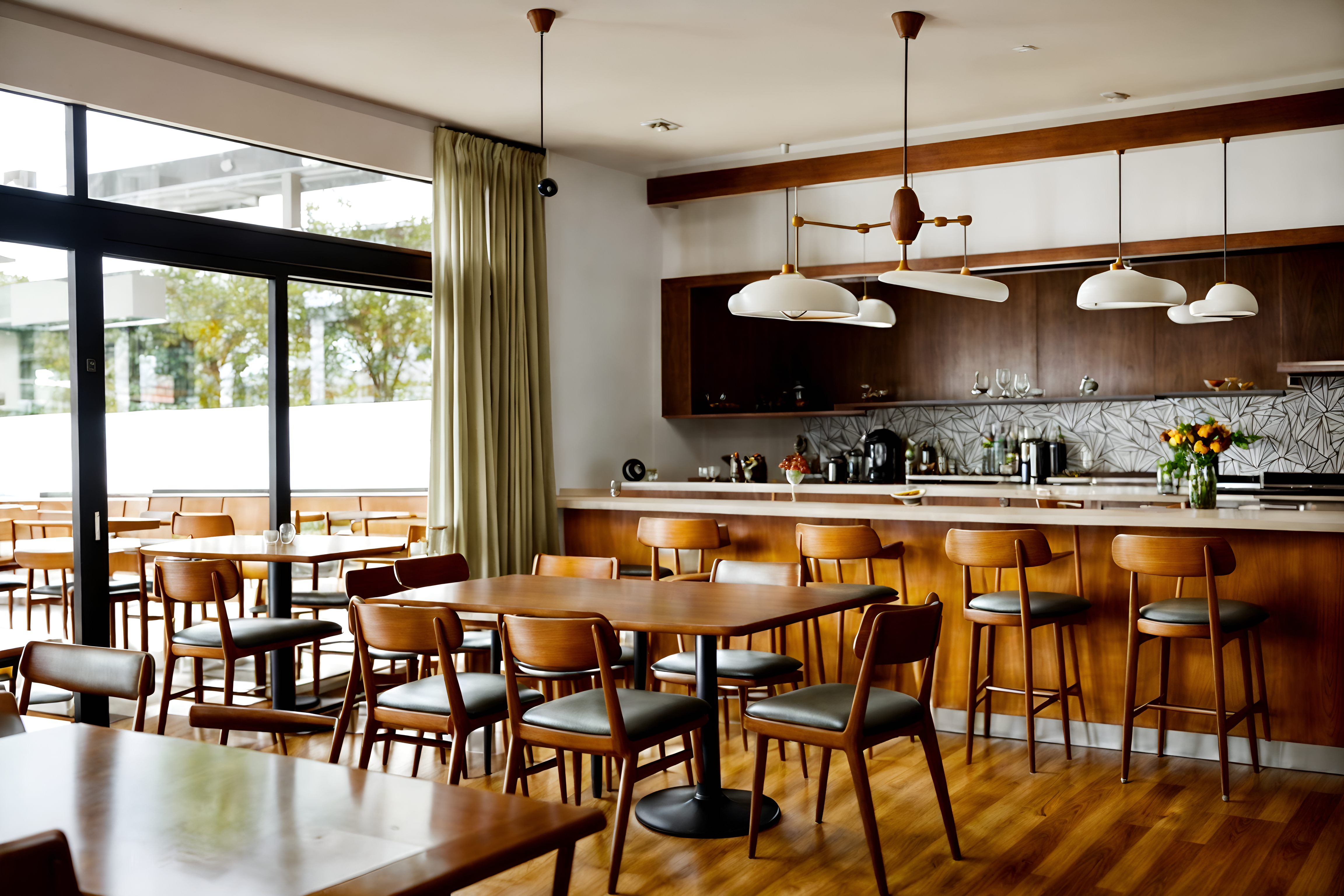 photo from pinterest of midcentury modern-style interior designed (restaurant interior) with restaurant decor and restaurant dining tables and restaurant bar and restaurant chairs and restaurant decor. . with function over form and organic and geometric shapes and mid century modern mobile chandelier and clean lines and graphic shapes and natural and manmade materials and muted tones and integrating indoor and outdoor motifs. . cinematic photo, highly detailed, cinematic lighting, ultra-detailed, ultrarealistic, photorealism, 8k. trending on pinterest. midcentury modern interior design style. masterpiece, cinematic light, ultrarealistic+, photorealistic+, 8k, raw photo, realistic, sharp focus on eyes, (symmetrical eyes), (intact eyes), hyperrealistic, highest quality, best quality, , highly detailed, masterpiece, best quality, extremely detailed 8k wallpaper, masterpiece, best quality, ultra-detailed, best shadow, detailed background, detailed face, detailed eyes, high contrast, best illumination, detailed face, dulux, caustic, dynamic angle, detailed glow. dramatic lighting. highly detailed, insanely detailed hair, symmetrical, intricate details, professionally retouched, 8k high definition. strong bokeh. award winning photo.