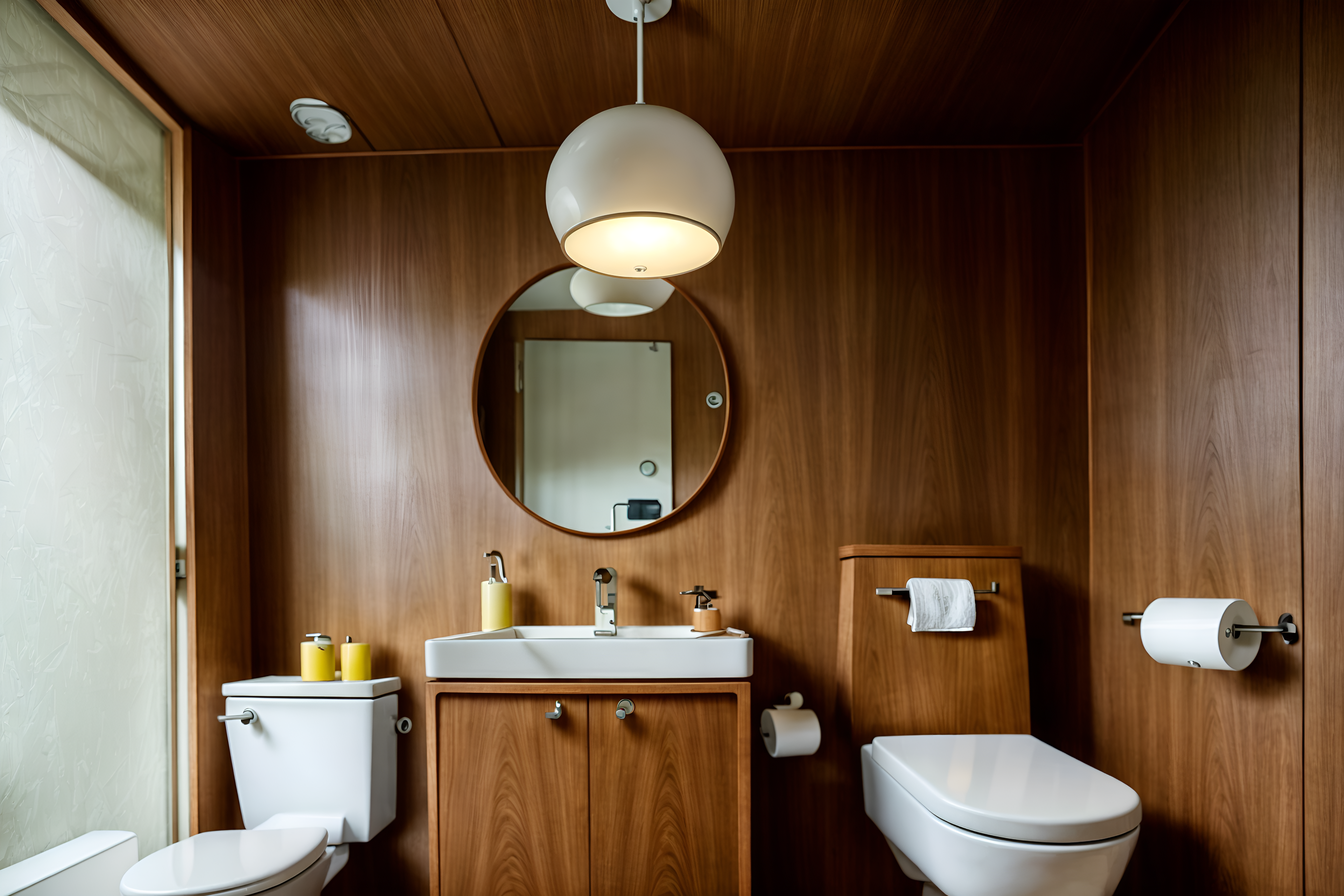 photo from pinterest of midcentury modern-style interior designed (toilet interior) with toilet with toilet seat up and toilet paper hanger and sink with tap and toilet with toilet seat up. . with minimalist and mid century modern mobile chandelier and graphic shapes and wood pendant light mid century modern chandelier and integrating indoor and outdoor motifs and natural and manmade materials and organic and geometric shapes and muted tones. . cinematic photo, highly detailed, cinematic lighting, ultra-detailed, ultrarealistic, photorealism, 8k. trending on pinterest. midcentury modern interior design style. masterpiece, cinematic light, ultrarealistic+, photorealistic+, 8k, raw photo, realistic, sharp focus on eyes, (symmetrical eyes), (intact eyes), hyperrealistic, highest quality, best quality, , highly detailed, masterpiece, best quality, extremely detailed 8k wallpaper, masterpiece, best quality, ultra-detailed, best shadow, detailed background, detailed face, detailed eyes, high contrast, best illumination, detailed face, dulux, caustic, dynamic angle, detailed glow. dramatic lighting. highly detailed, insanely detailed hair, symmetrical, intricate details, professionally retouched, 8k high definition. strong bokeh. award winning photo.