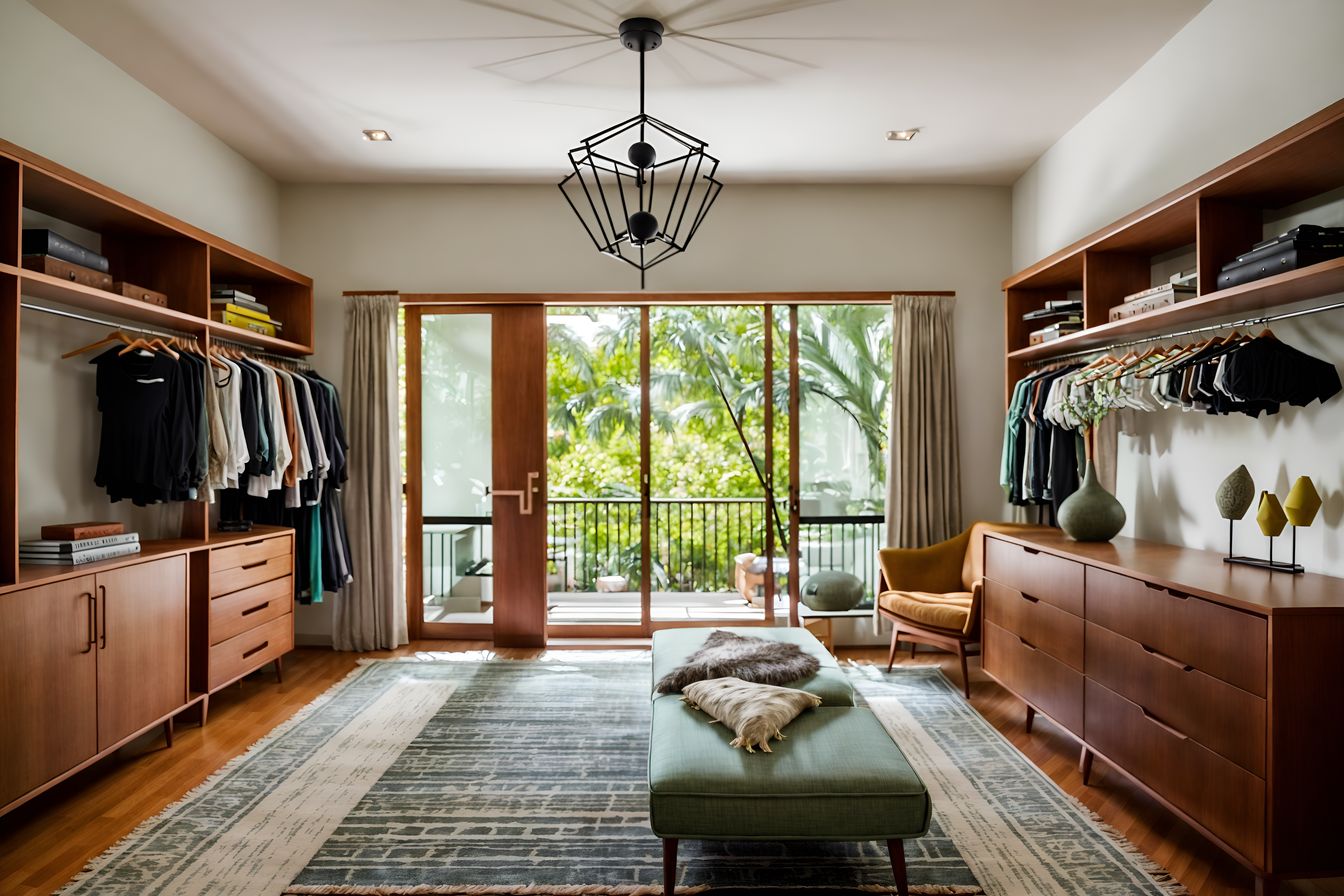 photo from pinterest of midcentury modern-style interior designed (walk in closet interior) . with organic and geometric shapes and muted tones and natural and manmade materials and vibrant colors and integrating indoor and outdoor motifs and function over form and nature indoors and mid century modern mobile chandelier. . cinematic photo, highly detailed, cinematic lighting, ultra-detailed, ultrarealistic, photorealism, 8k. trending on pinterest. midcentury modern interior design style. masterpiece, cinematic light, ultrarealistic+, photorealistic+, 8k, raw photo, realistic, sharp focus on eyes, (symmetrical eyes), (intact eyes), hyperrealistic, highest quality, best quality, , highly detailed, masterpiece, best quality, extremely detailed 8k wallpaper, masterpiece, best quality, ultra-detailed, best shadow, detailed background, detailed face, detailed eyes, high contrast, best illumination, detailed face, dulux, caustic, dynamic angle, detailed glow. dramatic lighting. highly detailed, insanely detailed hair, symmetrical, intricate details, professionally retouched, 8k high definition. strong bokeh. award winning photo.