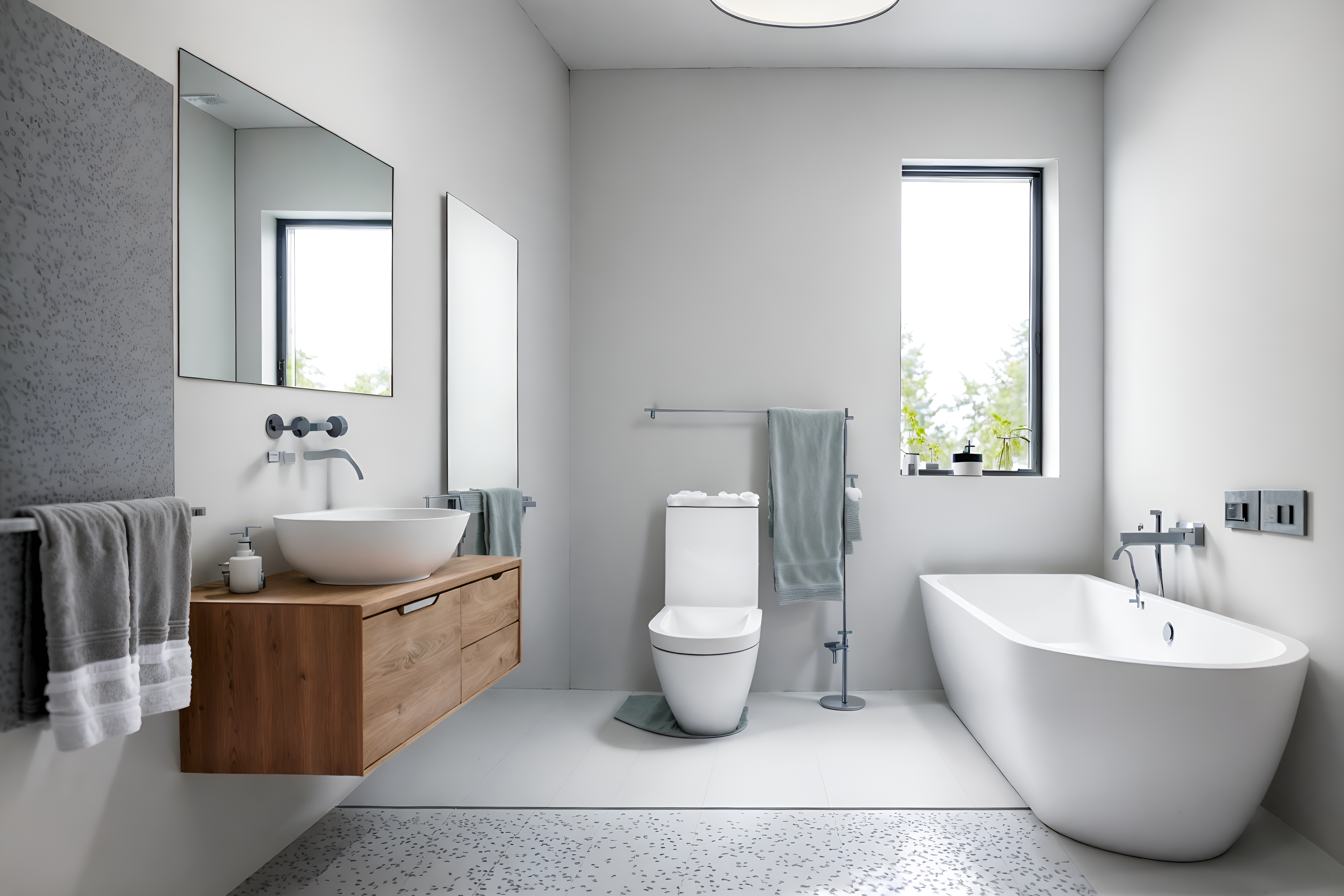 photo from pinterest of minimalist-style interior designed (bathroom interior) with waste basket and bathroom sink with faucet and bath rail and mirror and shower and toilet seat and bathtub and bathroom cabinet. . with an open floor plan and functional furniture and focus on the shape, colour and texture of just a few of essential elements and a monochromatic palette with colour used as an accent and lots of light and clean lines and an open floor plan. . cinematic photo, highly detailed, cinematic lighting, ultra-detailed, ultrarealistic, photorealism, 8k. trending on pinterest. minimalist interior design style. masterpiece, cinematic light, ultrarealistic+, photorealistic+, 8k, raw photo, realistic, sharp focus on eyes, (symmetrical eyes), (intact eyes), hyperrealistic, highest quality, best quality, , highly detailed, masterpiece, best quality, extremely detailed 8k wallpaper, masterpiece, best quality, ultra-detailed, best shadow, detailed background, detailed face, detailed eyes, high contrast, best illumination, detailed face, dulux, caustic, dynamic angle, detailed glow. dramatic lighting. highly detailed, insanely detailed hair, symmetrical, intricate details, professionally retouched, 8k high definition. strong bokeh. award winning photo.
