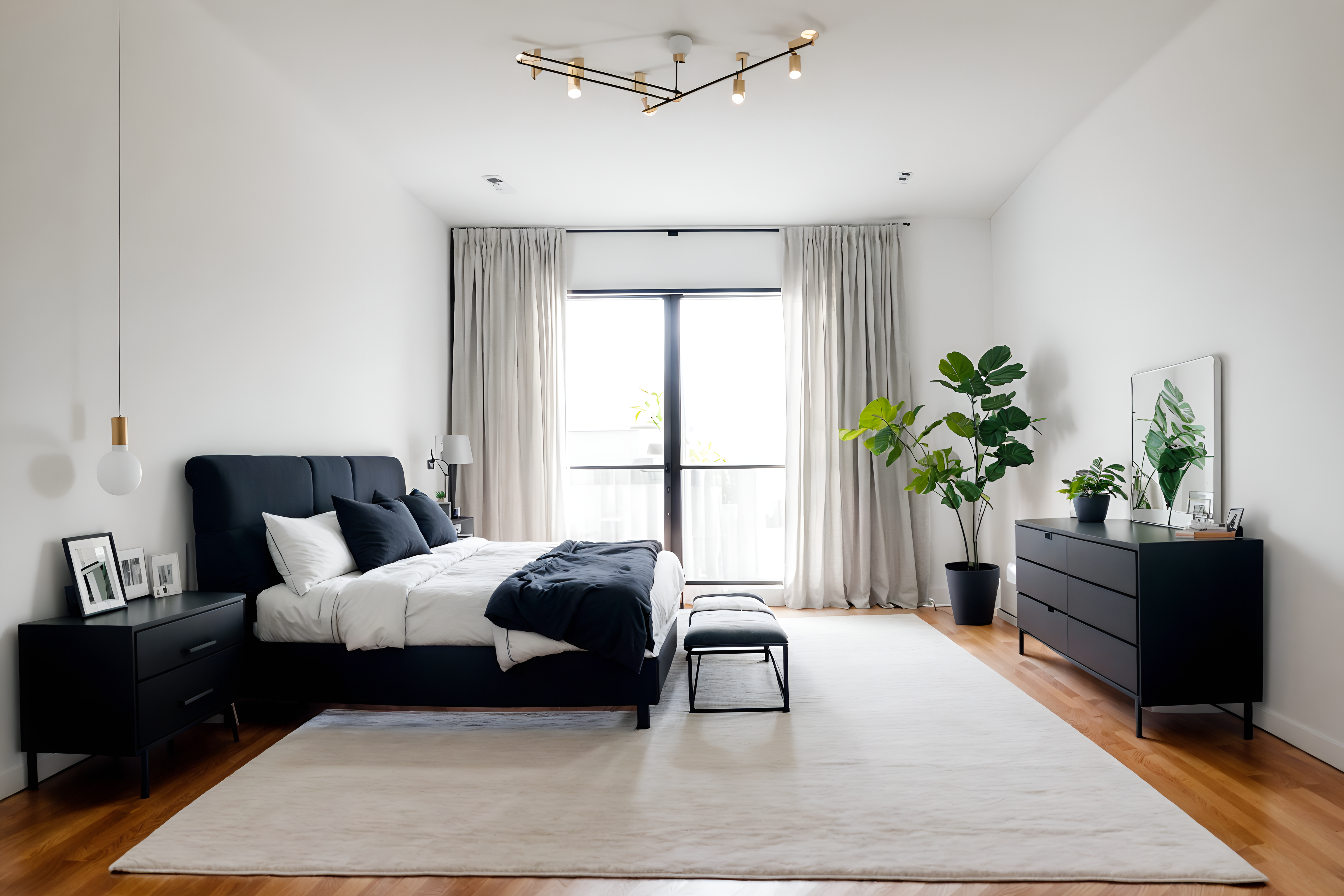 photo from pinterest of minimalist-style interior designed (bedroom interior) with headboard and accent chair and mirror and night light and plant and bed and bedside table or night stand and dresser closet. . with functional furniture and an open floor plan and a monochromatic palette with colour used as an accent and lots of light and clean lines and focus on the shape, colour and texture of just a few of essential elements and functional furniture. . cinematic photo, highly detailed, cinematic lighting, ultra-detailed, ultrarealistic, photorealism, 8k. trending on pinterest. minimalist interior design style. masterpiece, cinematic light, ultrarealistic+, photorealistic+, 8k, raw photo, realistic, sharp focus on eyes, (symmetrical eyes), (intact eyes), hyperrealistic, highest quality, best quality, , highly detailed, masterpiece, best quality, extremely detailed 8k wallpaper, masterpiece, best quality, ultra-detailed, best shadow, detailed background, detailed face, detailed eyes, high contrast, best illumination, detailed face, dulux, caustic, dynamic angle, detailed glow. dramatic lighting. highly detailed, insanely detailed hair, symmetrical, intricate details, professionally retouched, 8k high definition. strong bokeh. award winning photo.