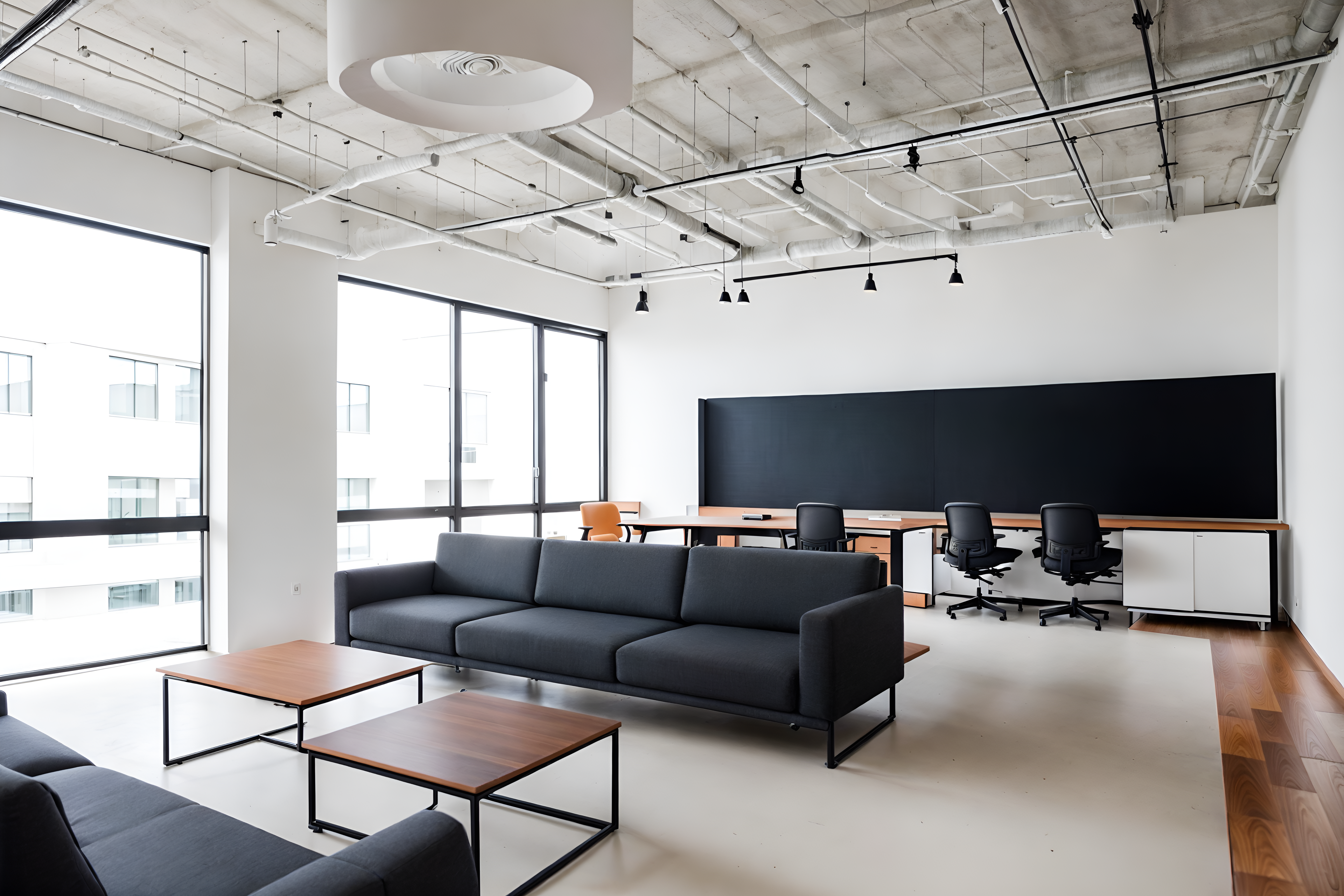 minimalist coworking spacesinterior decorate this coworking space with minimalist style. . . with lounge chairs and office desks and seating area with sofa and office chairs and lounge chairs. . with lots of light and functional furniture and clean lines and an open floor plan and a monochromatic palette with colour used as an accent and focus on the shape, colour and texture of just a few of essential elements and lots of light. . .