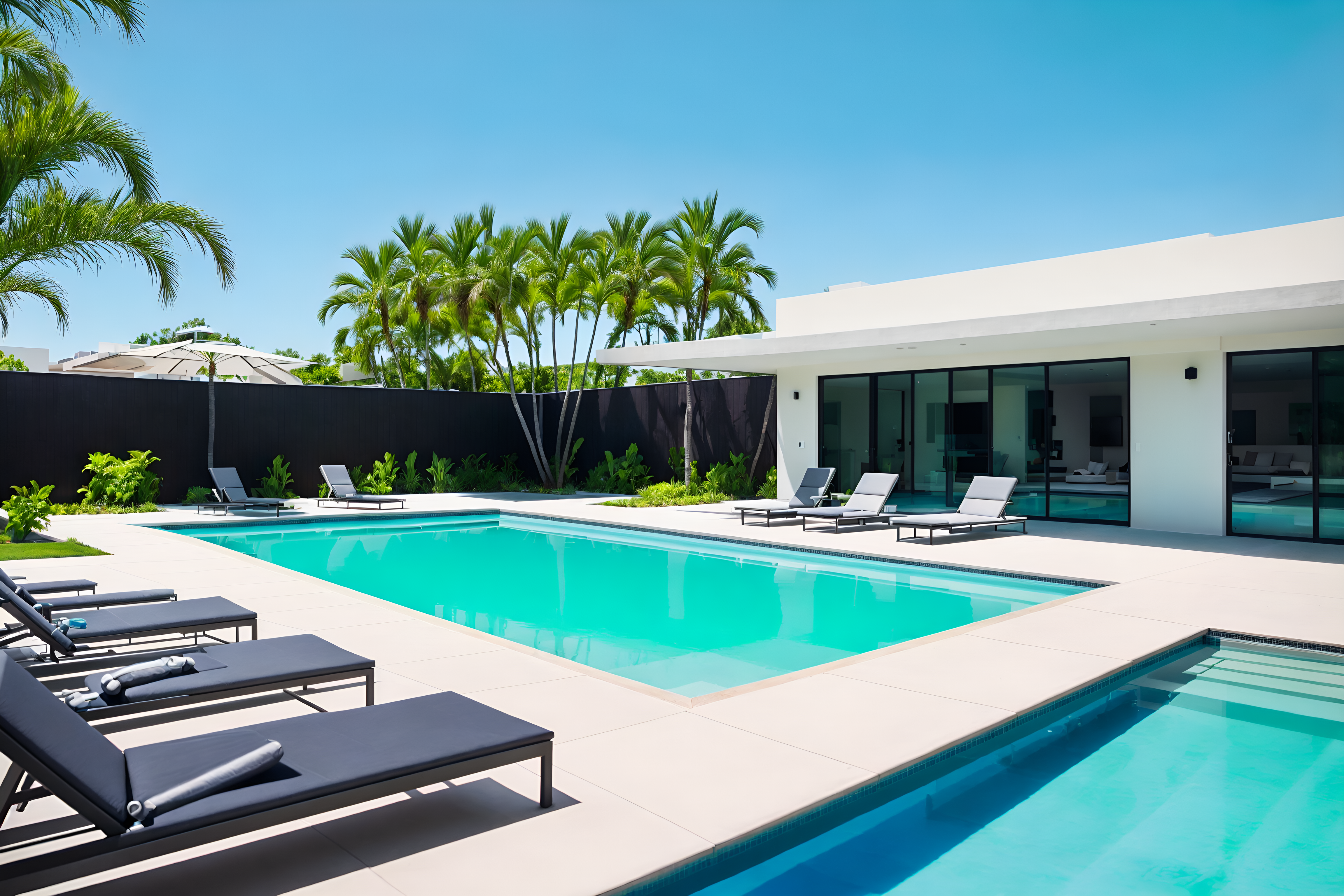 photo from pinterest of minimalist-style designed (outdoor pool area ) with pool and pool lights and pool lounge chairs and pool. . with lots of light and focus on the shape, colour and texture of just a few of essential elements and clean lines and a monochromatic palette with colour used as an accent and an open floor plan and functional furniture and lots of light. . cinematic photo, highly detailed, cinematic lighting, ultra-detailed, ultrarealistic, photorealism, 8k. trending on pinterest. minimalist design style. masterpiece, cinematic light, ultrarealistic+, photorealistic+, 8k, raw photo, realistic, sharp focus on eyes, (symmetrical eyes), (intact eyes), hyperrealistic, highest quality, best quality, , highly detailed, masterpiece, best quality, extremely detailed 8k wallpaper, masterpiece, best quality, ultra-detailed, best shadow, detailed background, detailed face, detailed eyes, high contrast, best illumination, detailed face, dulux, caustic, dynamic angle, detailed glow. dramatic lighting. highly detailed, insanely detailed hair, symmetrical, intricate details, professionally retouched, 8k high definition. strong bokeh. award winning photo.