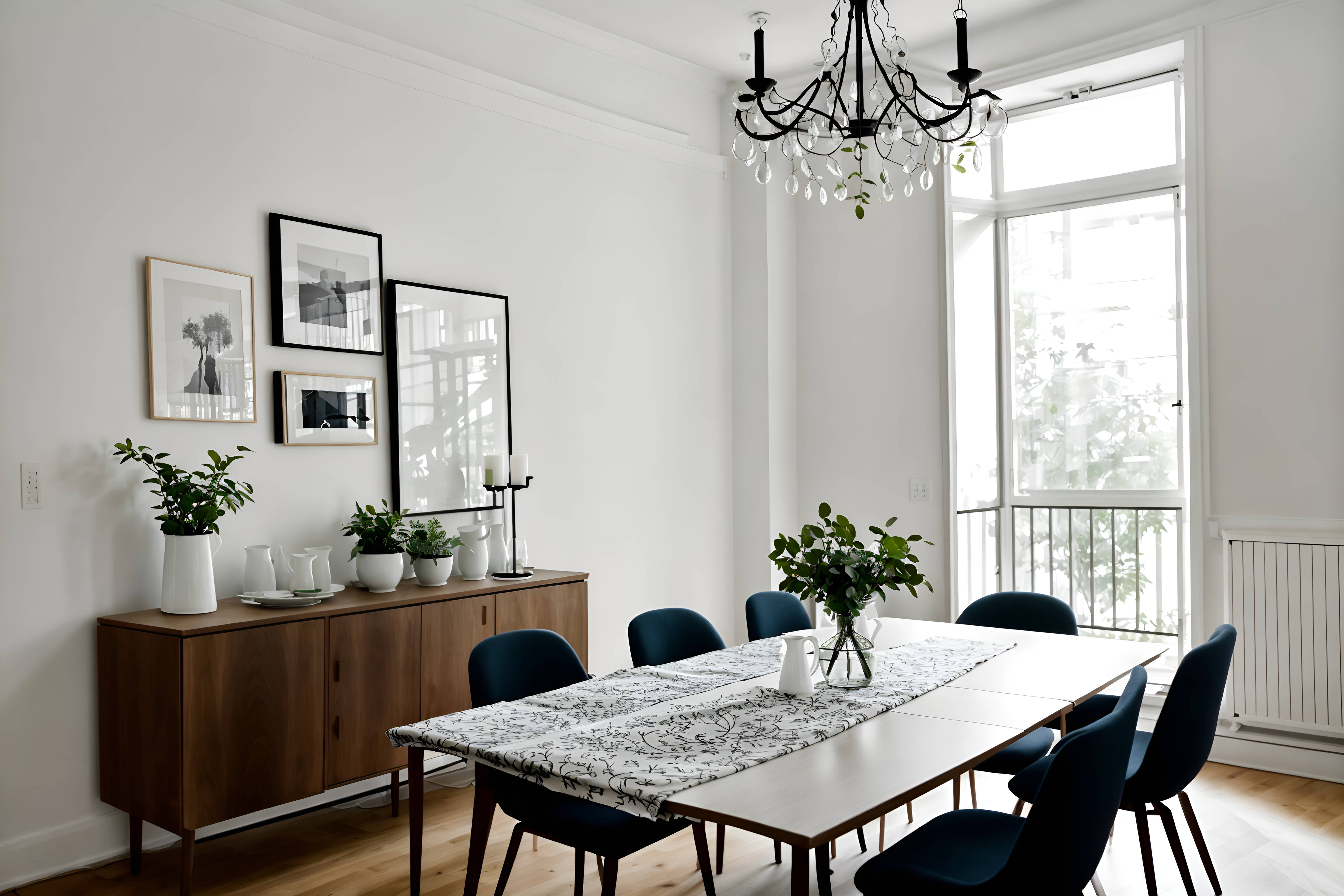 photo from pinterest of minimalist-style interior designed (dining room interior) with painting or photo on wall and table cloth and plates, cutlery and glasses on dining table and plant and bookshelves and dining table and light or chandelier and vase. . with an open floor plan and a monochromatic palette with colour used as an accent and lots of light and focus on the shape, colour and texture of just a few of essential elements and functional furniture and clean lines and an open floor plan. . cinematic photo, highly detailed, cinematic lighting, ultra-detailed, ultrarealistic, photorealism, 8k. trending on pinterest. minimalist interior design style. masterpiece, cinematic light, ultrarealistic+, photorealistic+, 8k, raw photo, realistic, sharp focus on eyes, (symmetrical eyes), (intact eyes), hyperrealistic, highest quality, best quality, , highly detailed, masterpiece, best quality, extremely detailed 8k wallpaper, masterpiece, best quality, ultra-detailed, best shadow, detailed background, detailed face, detailed eyes, high contrast, best illumination, detailed face, dulux, caustic, dynamic angle, detailed glow. dramatic lighting. highly detailed, insanely detailed hair, symmetrical, intricate details, professionally retouched, 8k high definition. strong bokeh. award winning photo.