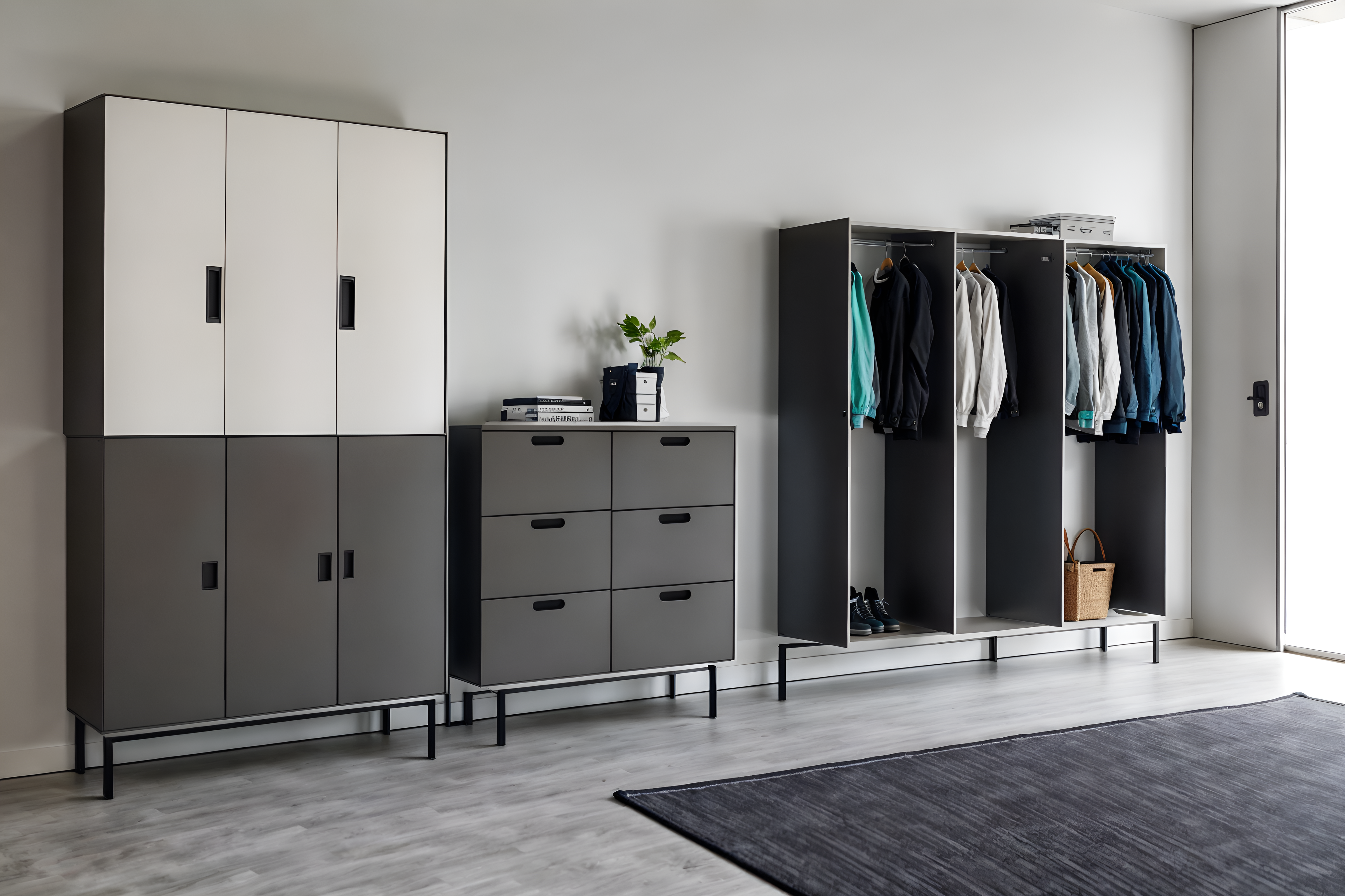 photo from pinterest of minimalist-style interior designed (drop zone interior) with cabinets and storage drawers and storage baskets and high up storage and lockers and cubbies and wall hooks for coats and shelves for shoes. . with functional furniture and a monochromatic palette with colour used as an accent and lots of light and clean lines and focus on the shape, colour and texture of just a few of essential elements and an open floor plan and functional furniture. . cinematic photo, highly detailed, cinematic lighting, ultra-detailed, ultrarealistic, photorealism, 8k. trending on pinterest. minimalist interior design style. masterpiece, cinematic light, ultrarealistic+, photorealistic+, 8k, raw photo, realistic, sharp focus on eyes, (symmetrical eyes), (intact eyes), hyperrealistic, highest quality, best quality, , highly detailed, masterpiece, best quality, extremely detailed 8k wallpaper, masterpiece, best quality, ultra-detailed, best shadow, detailed background, detailed face, detailed eyes, high contrast, best illumination, detailed face, dulux, caustic, dynamic angle, detailed glow. dramatic lighting. highly detailed, insanely detailed hair, symmetrical, intricate details, professionally retouched, 8k high definition. strong bokeh. award winning photo.