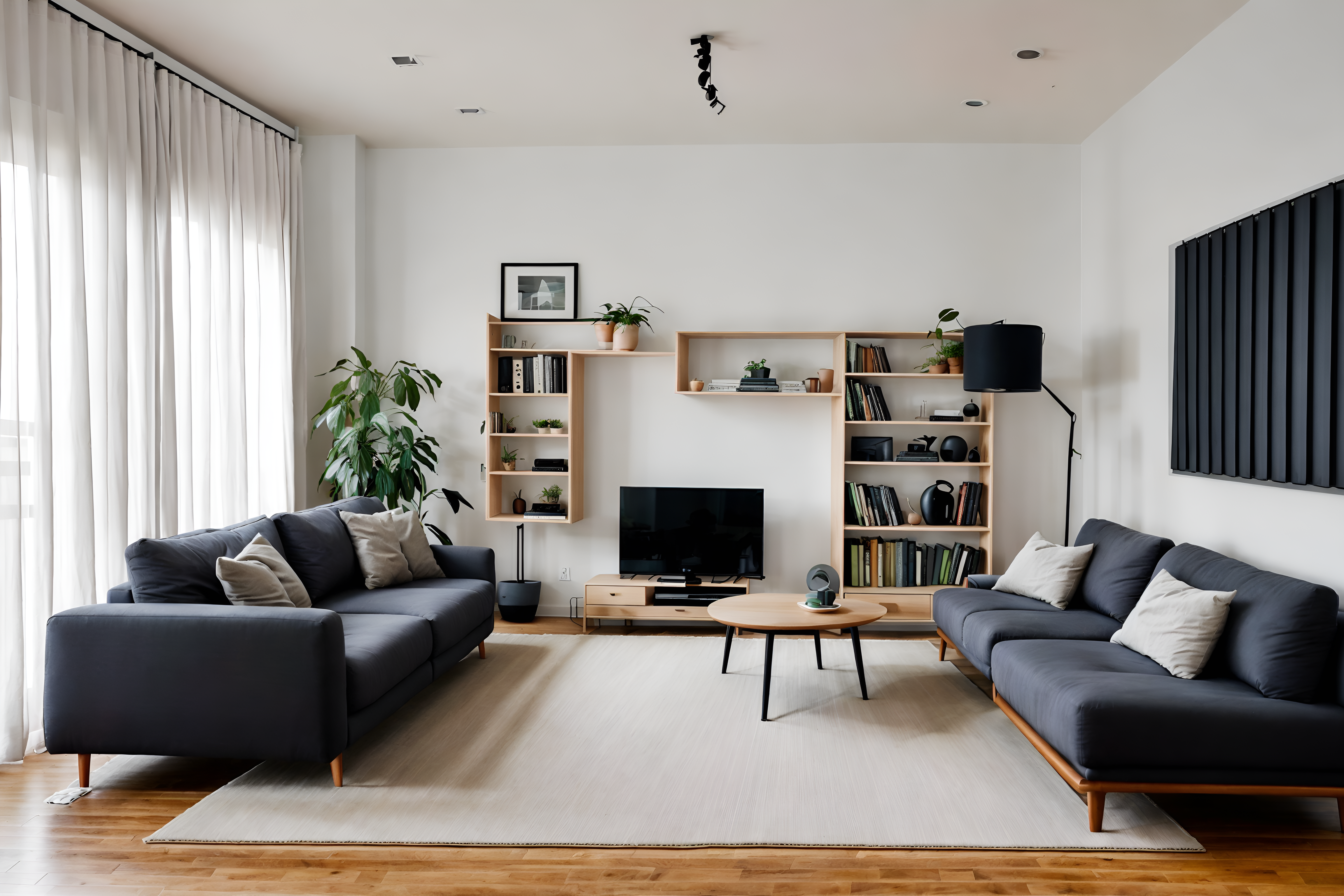 photo from pinterest of minimalist-style interior designed (living room interior) with chairs and furniture and occasional tables and sofa and televisions and plant and rug and bookshelves. . with lots of light and focus on the shape, colour and texture of just a few of essential elements and an open floor plan and clean lines and functional furniture and a monochromatic palette with colour used as an accent and lots of light. . cinematic photo, highly detailed, cinematic lighting, ultra-detailed, ultrarealistic, photorealism, 8k. trending on pinterest. minimalist interior design style. masterpiece, cinematic light, ultrarealistic+, photorealistic+, 8k, raw photo, realistic, sharp focus on eyes, (symmetrical eyes), (intact eyes), hyperrealistic, highest quality, best quality, , highly detailed, masterpiece, best quality, extremely detailed 8k wallpaper, masterpiece, best quality, ultra-detailed, best shadow, detailed background, detailed face, detailed eyes, high contrast, best illumination, detailed face, dulux, caustic, dynamic angle, detailed glow. dramatic lighting. highly detailed, insanely detailed hair, symmetrical, intricate details, professionally retouched, 8k high definition. strong bokeh. award winning photo.