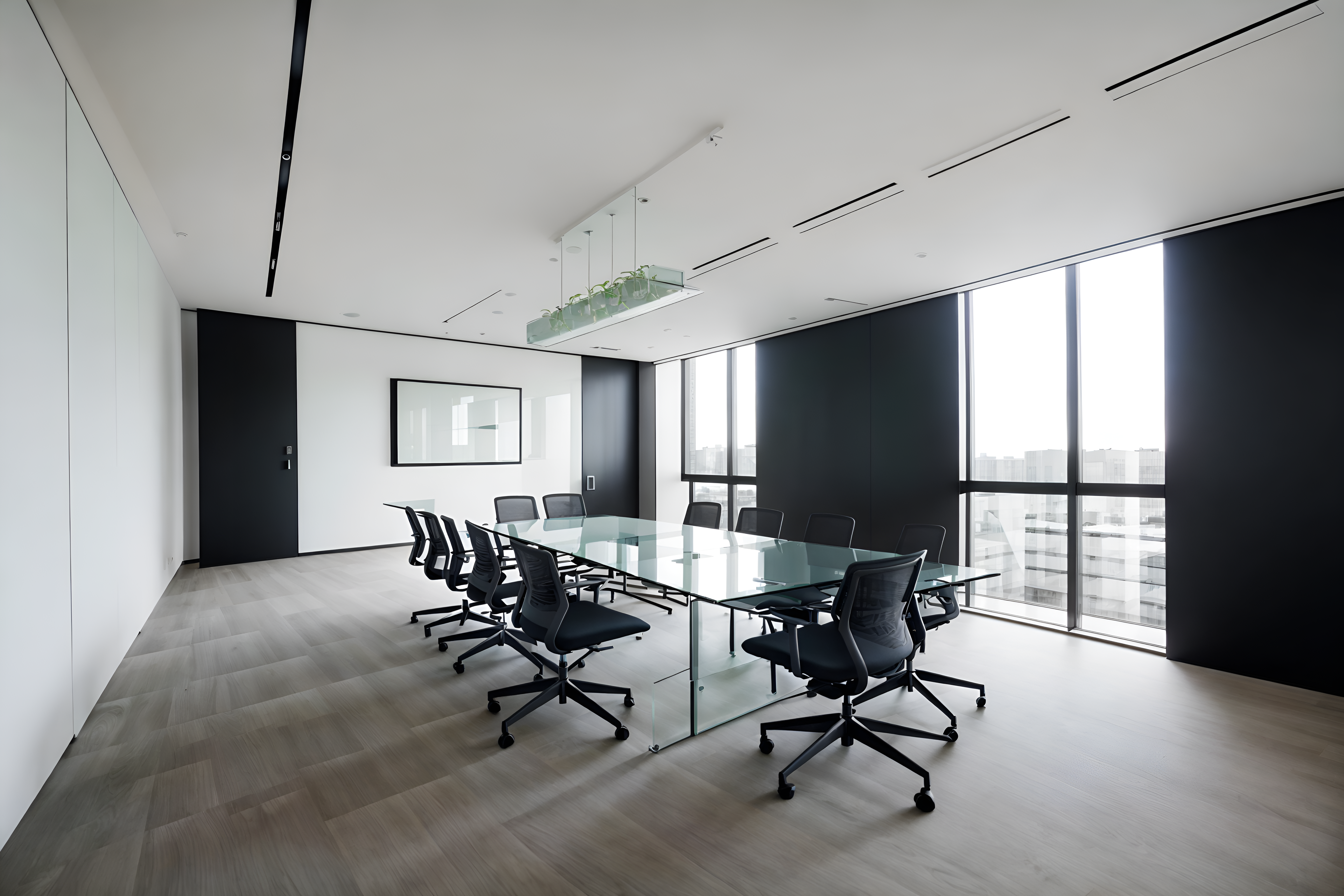 photo from pinterest of minimalist-style interior designed (meeting room interior) with vase and glass walls and plant and glass doors and cabinets and office chairs and painting or photo on wall and boardroom table. . with a monochromatic palette with colour used as an accent and an open floor plan and lots of light and functional furniture and clean lines and focus on the shape, colour and texture of just a few of essential elements and a monochromatic palette with colour used as an accent. . cinematic photo, highly detailed, cinematic lighting, ultra-detailed, ultrarealistic, photorealism, 8k. trending on pinterest. minimalist interior design style. masterpiece, cinematic light, ultrarealistic+, photorealistic+, 8k, raw photo, realistic, sharp focus on eyes, (symmetrical eyes), (intact eyes), hyperrealistic, highest quality, best quality, , highly detailed, masterpiece, best quality, extremely detailed 8k wallpaper, masterpiece, best quality, ultra-detailed, best shadow, detailed background, detailed face, detailed eyes, high contrast, best illumination, detailed face, dulux, caustic, dynamic angle, detailed glow. dramatic lighting. highly detailed, insanely detailed hair, symmetrical, intricate details, professionally retouched, 8k high definition. strong bokeh. award winning photo.