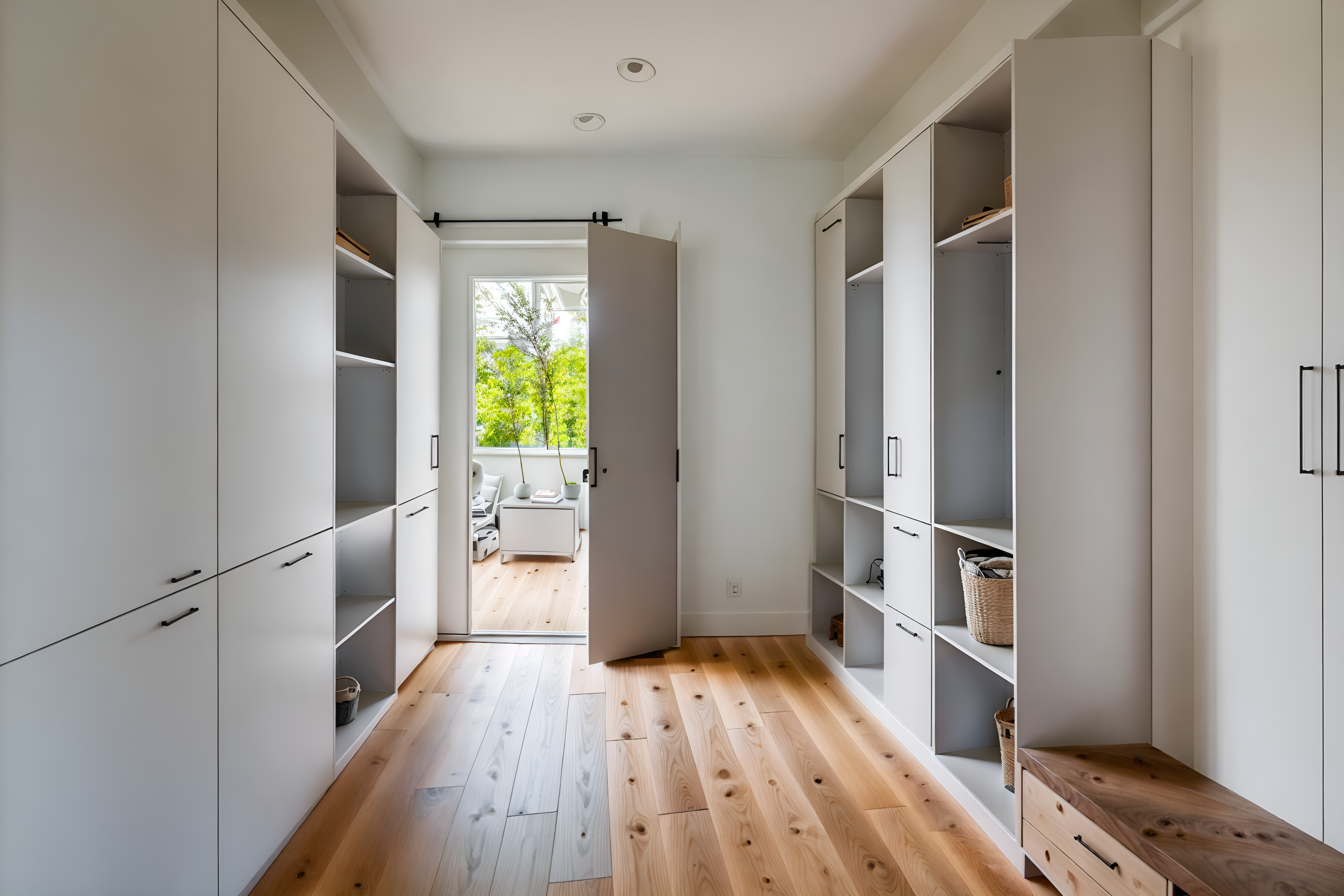 photo from pinterest of minimalist-style interior designed (mudroom interior) with storage drawers and high up storage and cubbies and storage baskets and cabinets and wall hooks for coats and shelves for shoes and a bench. . with focus on the shape, colour and texture of just a few of essential elements and functional furniture and an open floor plan and clean lines and a monochromatic palette with colour used as an accent and lots of light and focus on the shape, colour and texture of just a few of essential elements. . cinematic photo, highly detailed, cinematic lighting, ultra-detailed, ultrarealistic, photorealism, 8k. trending on pinterest. minimalist interior design style. masterpiece, cinematic light, ultrarealistic+, photorealistic+, 8k, raw photo, realistic, sharp focus on eyes, (symmetrical eyes), (intact eyes), hyperrealistic, highest quality, best quality, , highly detailed, masterpiece, best quality, extremely detailed 8k wallpaper, masterpiece, best quality, ultra-detailed, best shadow, detailed background, detailed face, detailed eyes, high contrast, best illumination, detailed face, dulux, caustic, dynamic angle, detailed glow. dramatic lighting. highly detailed, insanely detailed hair, symmetrical, intricate details, professionally retouched, 8k high definition. strong bokeh. award winning photo.