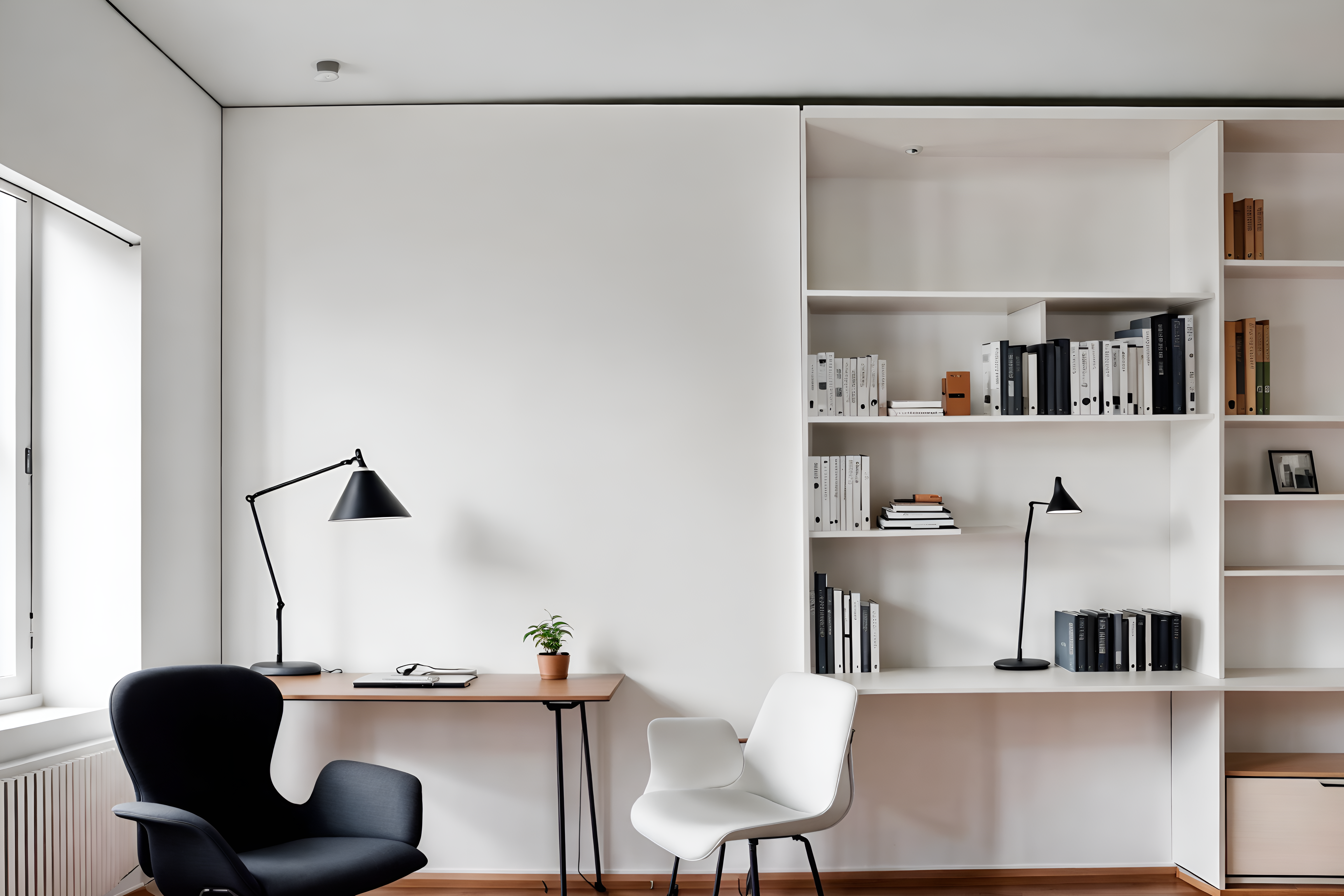 photo from pinterest of minimalist-style interior designed (study room interior) with bookshelves and plant and writing desk and office chair and lounge chair and cabinets and desk lamp and bookshelves. . with a monochromatic palette with colour used as an accent and lots of light and focus on the shape, colour and texture of just a few of essential elements and functional furniture and clean lines and an open floor plan and a monochromatic palette with colour used as an accent. . cinematic photo, highly detailed, cinematic lighting, ultra-detailed, ultrarealistic, photorealism, 8k. trending on pinterest. minimalist interior design style. masterpiece, cinematic light, ultrarealistic+, photorealistic+, 8k, raw photo, realistic, sharp focus on eyes, (symmetrical eyes), (intact eyes), hyperrealistic, highest quality, best quality, , highly detailed, masterpiece, best quality, extremely detailed 8k wallpaper, masterpiece, best quality, ultra-detailed, best shadow, detailed background, detailed face, detailed eyes, high contrast, best illumination, detailed face, dulux, caustic, dynamic angle, detailed glow. dramatic lighting. highly detailed, insanely detailed hair, symmetrical, intricate details, professionally retouched, 8k high definition. strong bokeh. award winning photo.