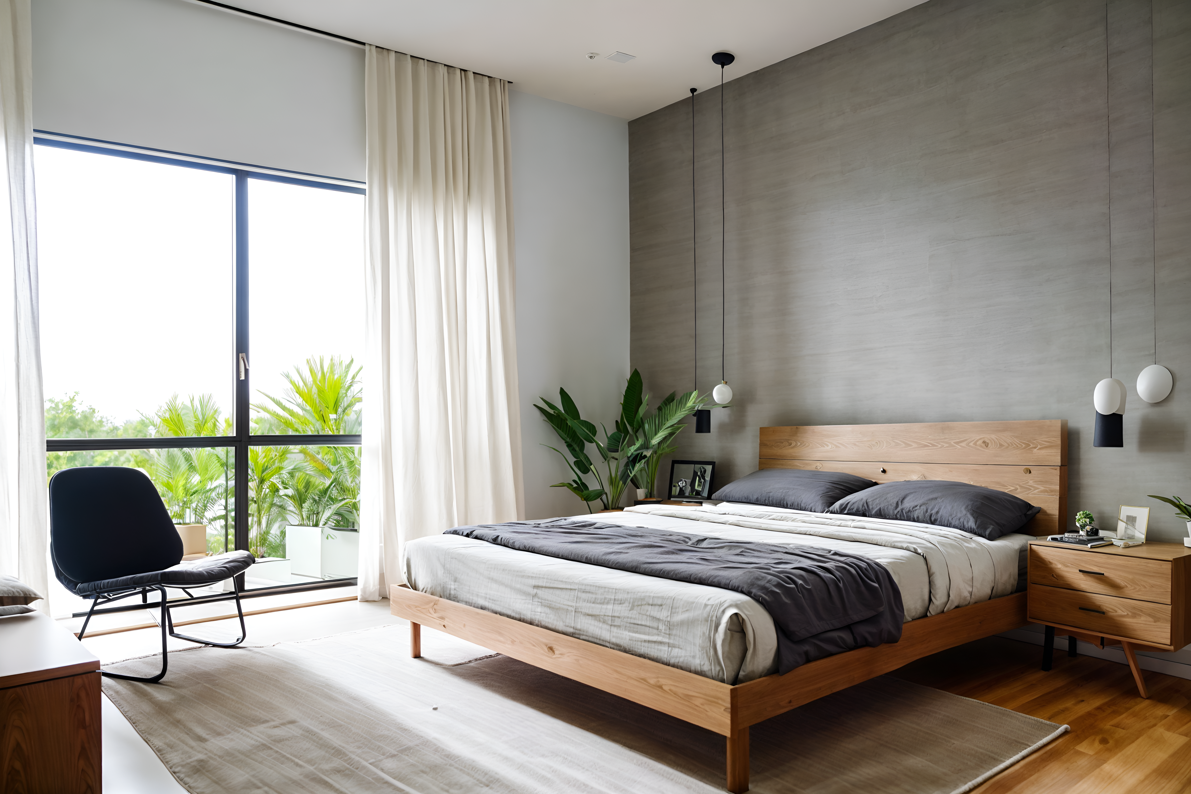 photo from pinterest of modern-style interior designed (bedroom interior) with mirror and bedside table or night stand and bed and plant and night light and headboard and accent chair and storage bench or ottoman. . with practicality and functionality and neutral walls and textures and open and natural lighting and simple, clean lines and simplistic furniture and natural materials and elements and practicality and functionality. . cinematic photo, highly detailed, cinematic lighting, ultra-detailed, ultrarealistic, photorealism, 8k. trending on pinterest. modern interior design style. masterpiece, cinematic light, ultrarealistic+, photorealistic+, 8k, raw photo, realistic, sharp focus on eyes, (symmetrical eyes), (intact eyes), hyperrealistic, highest quality, best quality, , highly detailed, masterpiece, best quality, extremely detailed 8k wallpaper, masterpiece, best quality, ultra-detailed, best shadow, detailed background, detailed face, detailed eyes, high contrast, best illumination, detailed face, dulux, caustic, dynamic angle, detailed glow. dramatic lighting. highly detailed, insanely detailed hair, symmetrical, intricate details, professionally retouched, 8k high definition. strong bokeh. award winning photo.