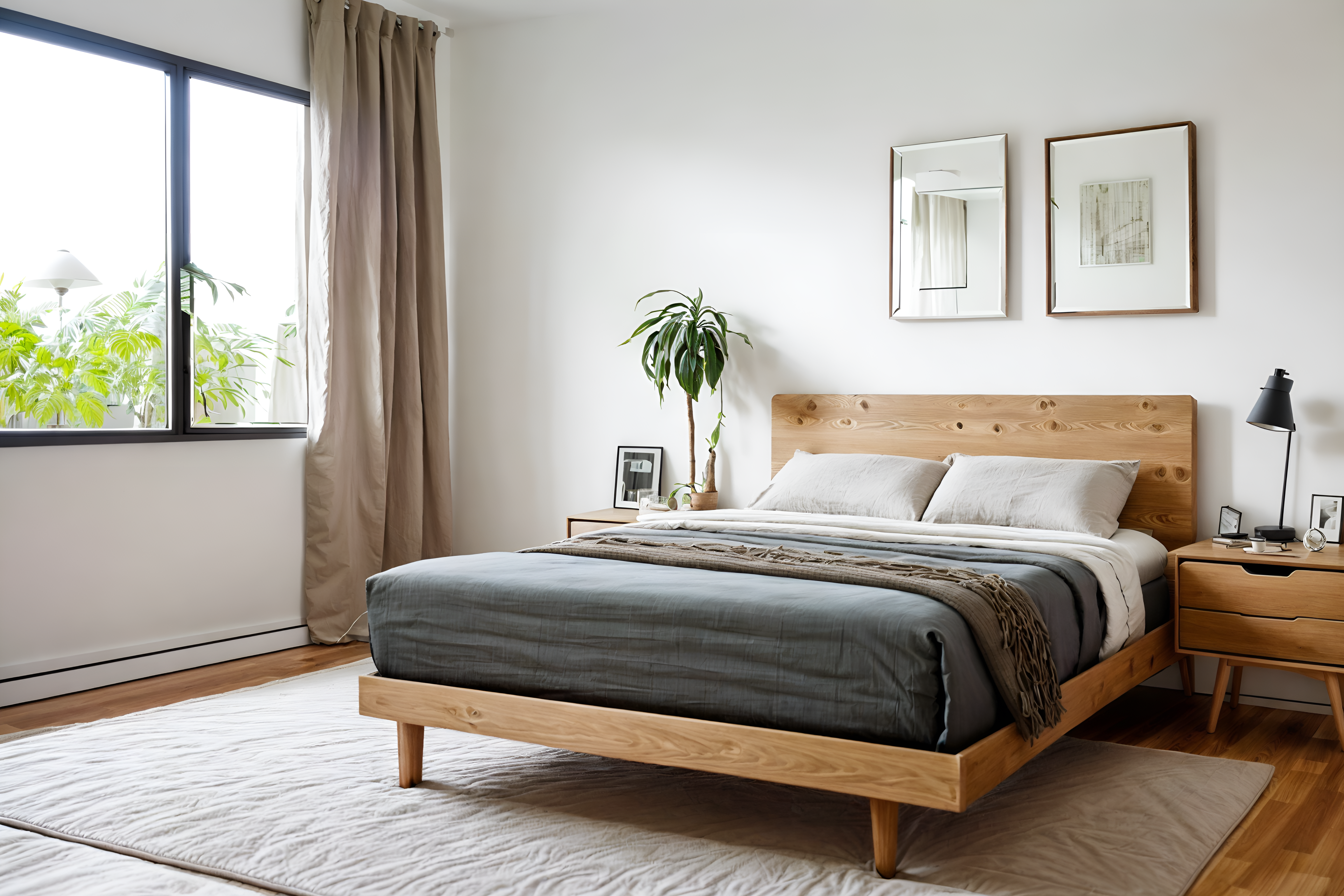 photo from pinterest of modern-style interior designed (bedroom interior) with mirror and bedside table or night stand and bed and plant and night light and headboard and accent chair and storage bench or ottoman. . with practicality and functionality and neutral walls and textures and open and natural lighting and simple, clean lines and simplistic furniture and natural materials and elements and practicality and functionality. . cinematic photo, highly detailed, cinematic lighting, ultra-detailed, ultrarealistic, photorealism, 8k. trending on pinterest. modern interior design style. masterpiece, cinematic light, ultrarealistic+, photorealistic+, 8k, raw photo, realistic, sharp focus on eyes, (symmetrical eyes), (intact eyes), hyperrealistic, highest quality, best quality, , highly detailed, masterpiece, best quality, extremely detailed 8k wallpaper, masterpiece, best quality, ultra-detailed, best shadow, detailed background, detailed face, detailed eyes, high contrast, best illumination, detailed face, dulux, caustic, dynamic angle, detailed glow. dramatic lighting. highly detailed, insanely detailed hair, symmetrical, intricate details, professionally retouched, 8k high definition. strong bokeh. award winning photo.