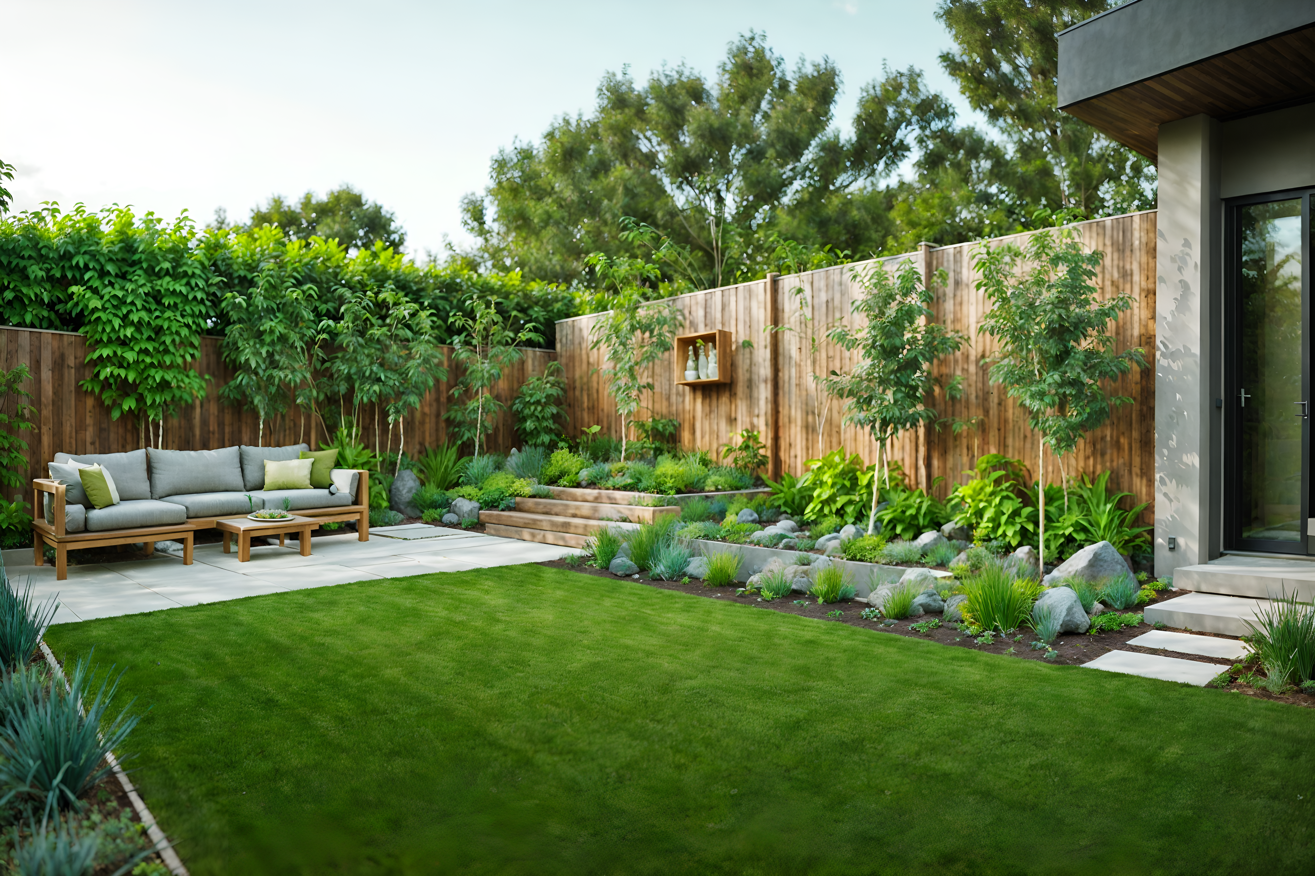 photo from pinterest of modern-style designed (outdoor garden ) with garden plants and grass and garden tree and garden plants. . with natural materials and elements and simple, clean lines and simplistic furniture and practicality and functionality and open and natural lighting and neutral walls and textures and natural materials and elements. . cinematic photo, highly detailed, cinematic lighting, ultra-detailed, ultrarealistic, photorealism, 8k. trending on pinterest. modern design style. masterpiece, cinematic light, ultrarealistic+, photorealistic+, 8k, raw photo, realistic, sharp focus on eyes, (symmetrical eyes), (intact eyes), hyperrealistic, highest quality, best quality, , highly detailed, masterpiece, best quality, extremely detailed 8k wallpaper, masterpiece, best quality, ultra-detailed, best shadow, detailed background, detailed face, detailed eyes, high contrast, best illumination, detailed face, dulux, caustic, dynamic angle, detailed glow. dramatic lighting. highly detailed, insanely detailed hair, symmetrical, intricate details, professionally retouched, 8k high definition. strong bokeh. award winning photo.