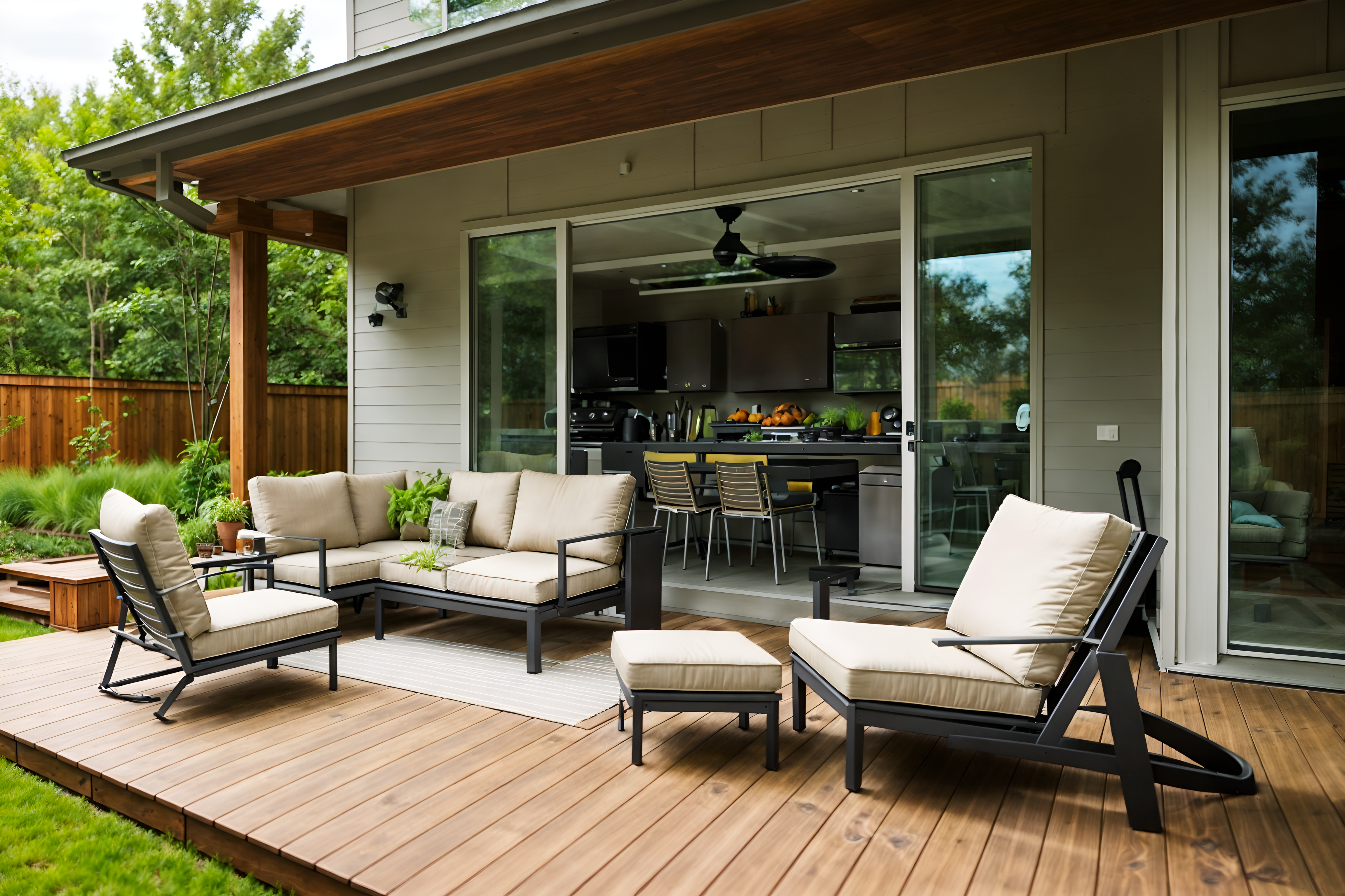 photo from pinterest of modern-style designed (outdoor patio ) with deck with deck chairs and barbeque or grill and patio couch with pillows and grass and plant and deck with deck chairs. . with practicality and functionality and neutral walls and textures and open and natural lighting and natural materials and elements and simple, clean lines and simplistic furniture and practicality and functionality. . cinematic photo, highly detailed, cinematic lighting, ultra-detailed, ultrarealistic, photorealism, 8k. trending on pinterest. modern design style. masterpiece, cinematic light, ultrarealistic+, photorealistic+, 8k, raw photo, realistic, sharp focus on eyes, (symmetrical eyes), (intact eyes), hyperrealistic, highest quality, best quality, , highly detailed, masterpiece, best quality, extremely detailed 8k wallpaper, masterpiece, best quality, ultra-detailed, best shadow, detailed background, detailed face, detailed eyes, high contrast, best illumination, detailed face, dulux, caustic, dynamic angle, detailed glow. dramatic lighting. highly detailed, insanely detailed hair, symmetrical, intricate details, professionally retouched, 8k high definition. strong bokeh. award winning photo.