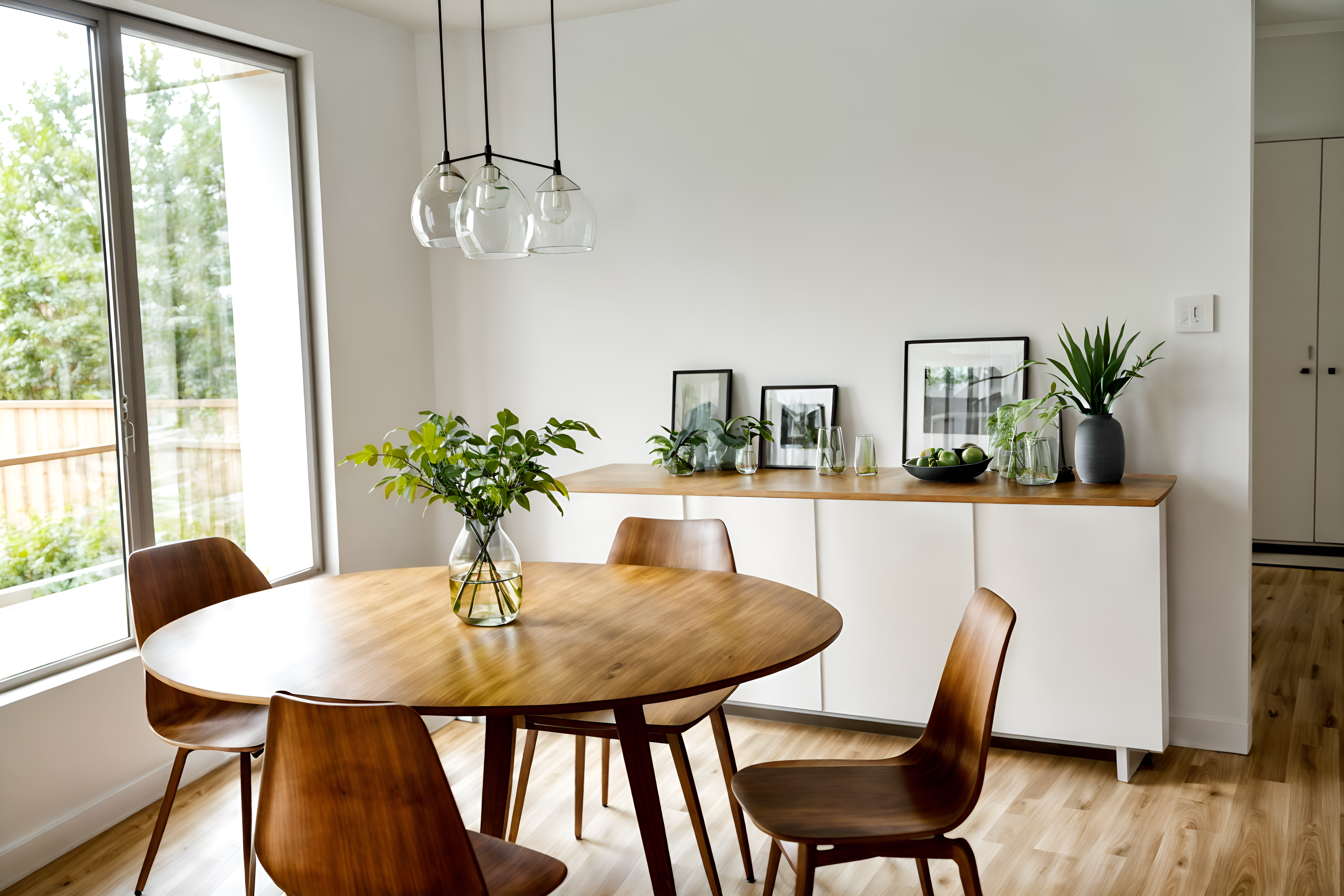 photo from pinterest of modern-style interior designed (dining room interior) with plant and dining table and bookshelves and vase and dining table chairs and table cloth and plates, cutlery and glasses on dining table and painting or photo on wall. . with open and natural lighting and neutral walls and textures and practicality and functionality and simple, clean lines and simplistic furniture and natural materials and elements and open and natural lighting. . cinematic photo, highly detailed, cinematic lighting, ultra-detailed, ultrarealistic, photorealism, 8k. trending on pinterest. modern interior design style. masterpiece, cinematic light, ultrarealistic+, photorealistic+, 8k, raw photo, realistic, sharp focus on eyes, (symmetrical eyes), (intact eyes), hyperrealistic, highest quality, best quality, , highly detailed, masterpiece, best quality, extremely detailed 8k wallpaper, masterpiece, best quality, ultra-detailed, best shadow, detailed background, detailed face, detailed eyes, high contrast, best illumination, detailed face, dulux, caustic, dynamic angle, detailed glow. dramatic lighting. highly detailed, insanely detailed hair, symmetrical, intricate details, professionally retouched, 8k high definition. strong bokeh. award winning photo.