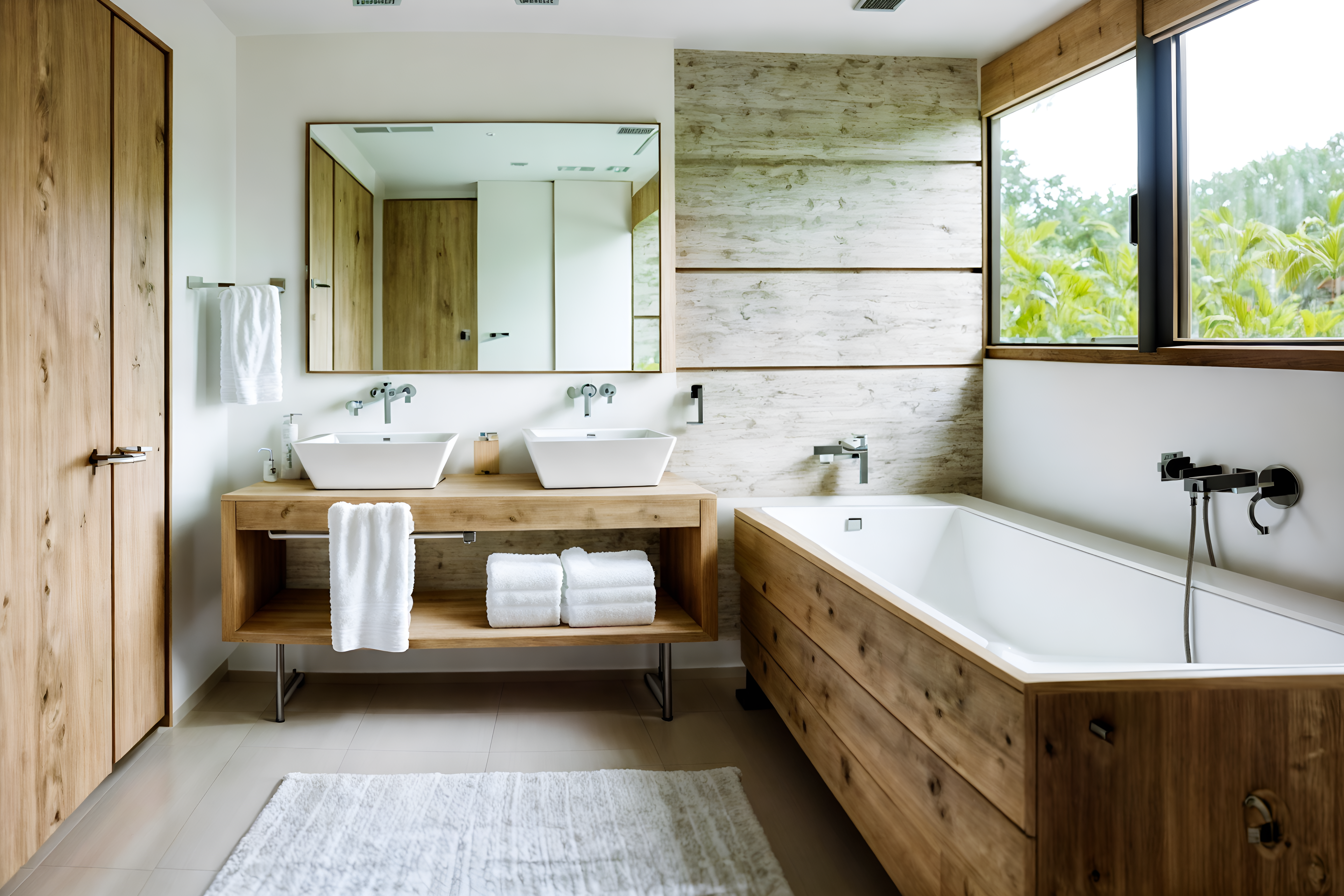 photo from pinterest of modern-style interior designed (hotel bathroom interior) with toilet seat and mirror and bath rail and plant and shower and bathtub and bath towel and bathroom sink with faucet. . with natural materials and elements and practicality and functionality and open and natural lighting and neutral walls and textures and simple, clean lines and simplistic furniture and natural materials and elements. . cinematic photo, highly detailed, cinematic lighting, ultra-detailed, ultrarealistic, photorealism, 8k. trending on pinterest. modern interior design style. masterpiece, cinematic light, ultrarealistic+, photorealistic+, 8k, raw photo, realistic, sharp focus on eyes, (symmetrical eyes), (intact eyes), hyperrealistic, highest quality, best quality, , highly detailed, masterpiece, best quality, extremely detailed 8k wallpaper, masterpiece, best quality, ultra-detailed, best shadow, detailed background, detailed face, detailed eyes, high contrast, best illumination, detailed face, dulux, caustic, dynamic angle, detailed glow. dramatic lighting. highly detailed, insanely detailed hair, symmetrical, intricate details, professionally retouched, 8k high definition. strong bokeh. award winning photo.