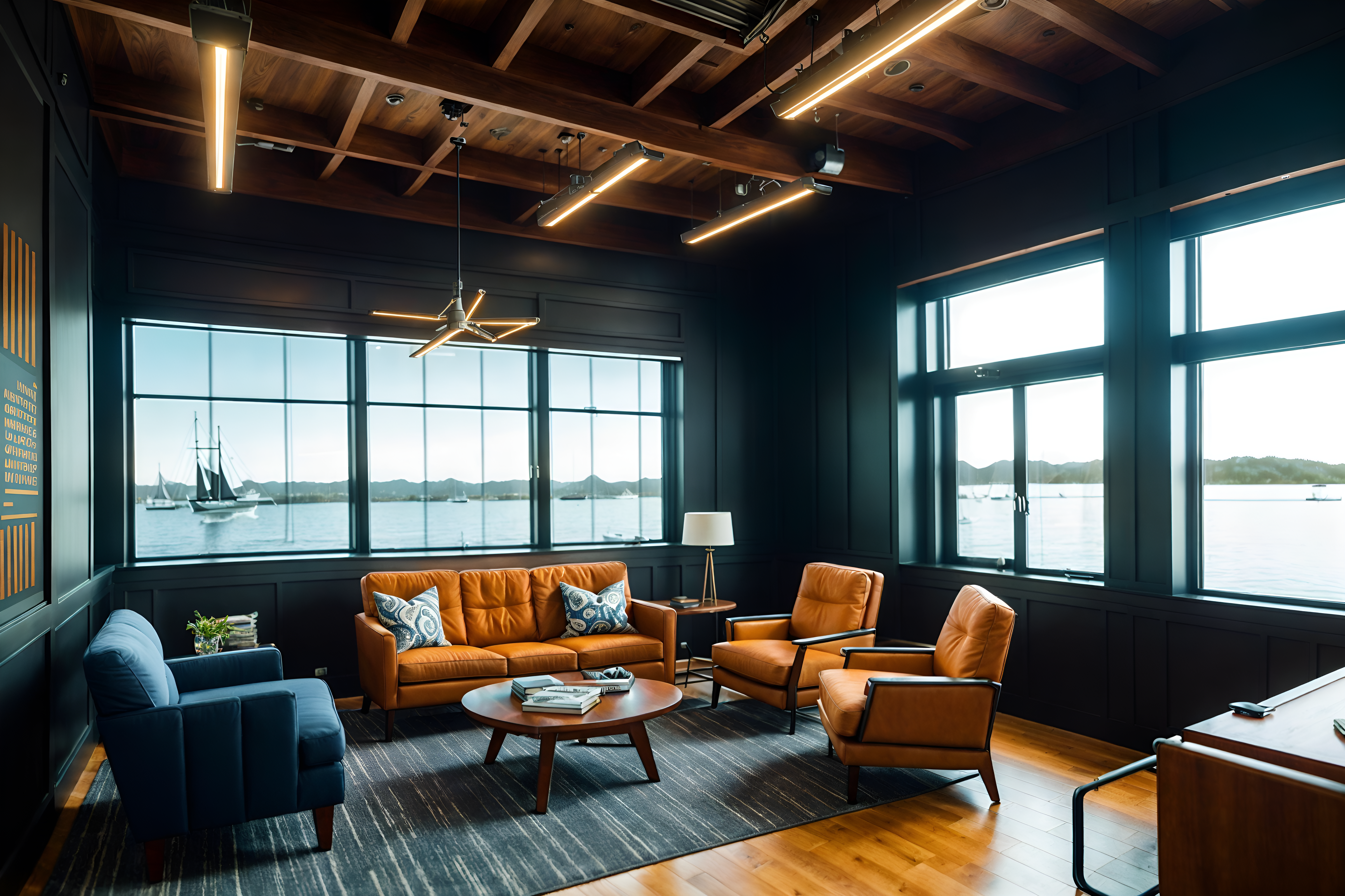 photo from pinterest of nautical-style interior designed (coworking space interior) with office desks and office chairs and lounge chairs and seating area with sofa and office desks cinematic photo, highly detailed, cinematic lighting, ultra-detailed, ultrarealistic, photorealism, 8k. trending on pinterest. nautical interior design style. masterpiece, cinematic light, ultrarealistic+, photorealistic+, 8k, raw photo, realistic, sharp focus on eyes, (symmetrical eyes), (intact eyes), hyperrealistic, highest quality, best quality, , highly detailed, masterpiece, best quality, extremely detailed 8k wallpaper, masterpiece, best quality, ultra-detailed, best shadow, detailed background, detailed face, detailed eyes, high contrast, best illumination, detailed face, dulux, caustic, dynamic angle, detailed glow. dramatic lighting. highly detailed, insanely detailed hair, symmetrical, intricate details, professionally retouched, 8k high definition. strong bokeh. award winning photo.