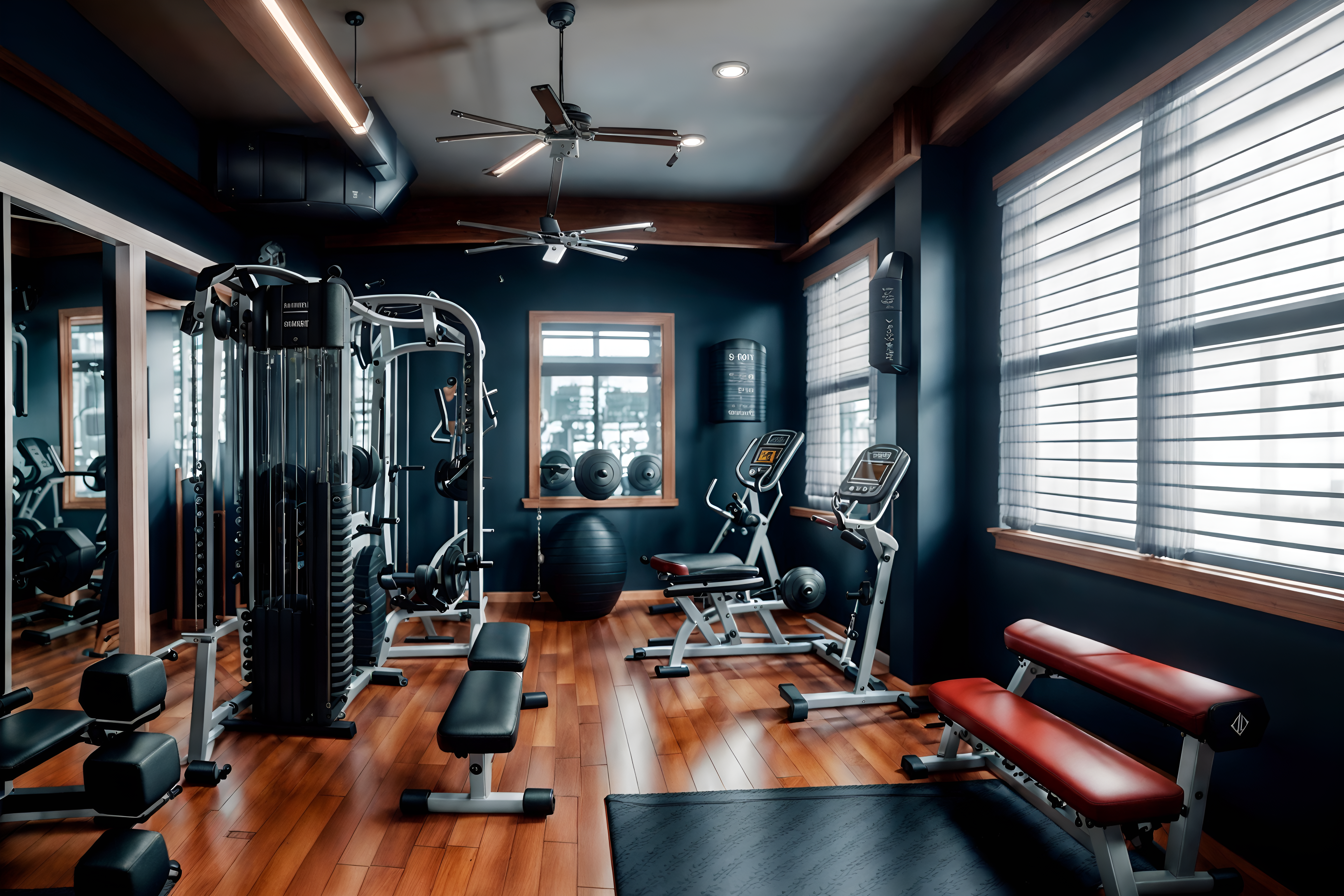 photo from pinterest of nautical-style interior designed (fitness gym interior) with dumbbell stand and exercise bicycle and crosstrainer and squat rack and bench press and dumbbell stand cinematic photo, highly detailed, cinematic lighting, ultra-detailed, ultrarealistic, photorealism, 8k. trending on pinterest. nautical interior design style. masterpiece, cinematic light, ultrarealistic+, photorealistic+, 8k, raw photo, realistic, sharp focus on eyes, (symmetrical eyes), (intact eyes), hyperrealistic, highest quality, best quality, , highly detailed, masterpiece, best quality, extremely detailed 8k wallpaper, masterpiece, best quality, ultra-detailed, best shadow, detailed background, detailed face, detailed eyes, high contrast, best illumination, detailed face, dulux, caustic, dynamic angle, detailed glow. dramatic lighting. highly detailed, insanely detailed hair, symmetrical, intricate details, professionally retouched, 8k high definition. strong bokeh. award winning photo.