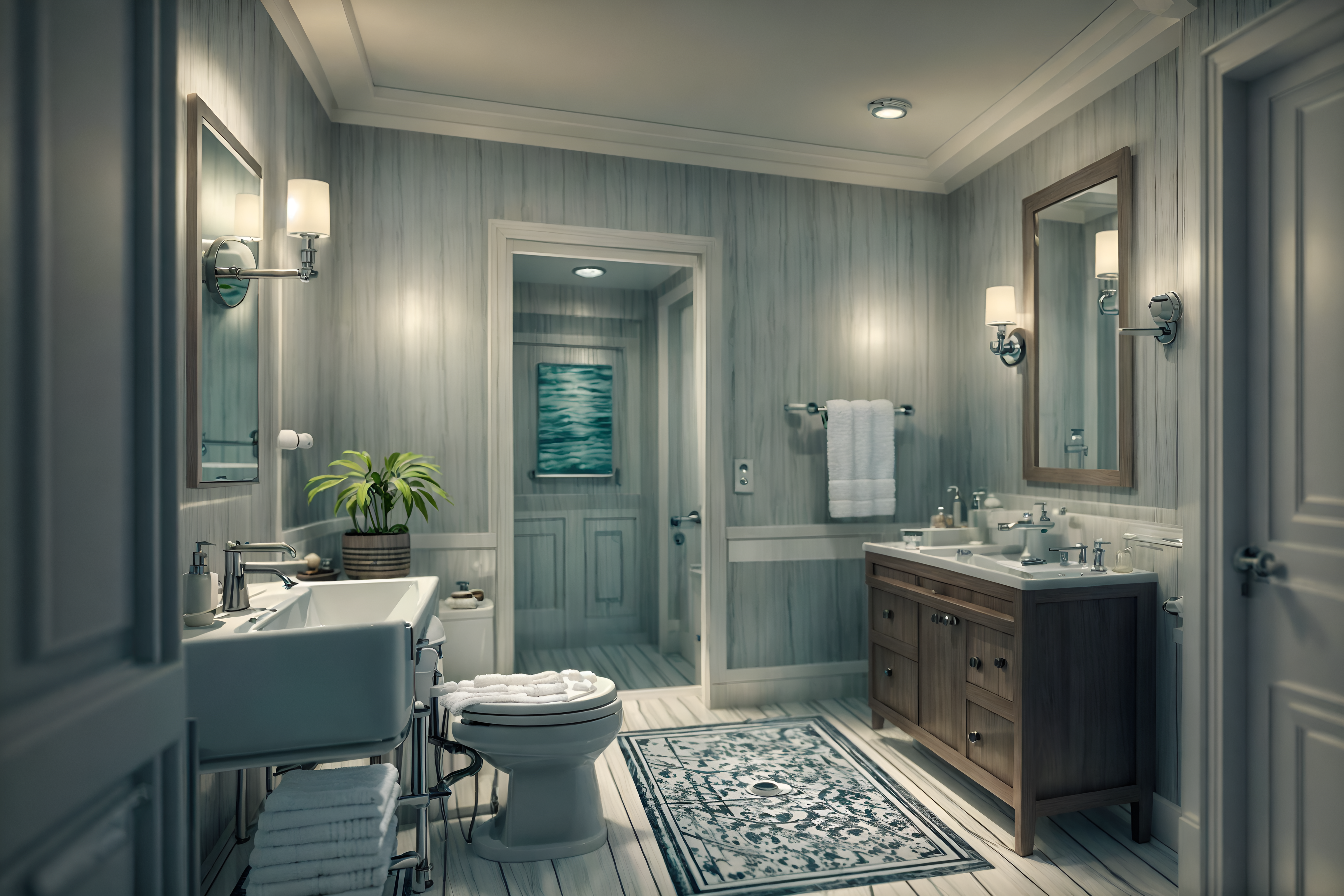 photo from pinterest of nautical-style interior designed (hotel bathroom interior) with bath towel and toilet seat and bathroom sink with faucet and bathroom cabinet and plant and shower and bath rail and bathtub cinematic photo, highly detailed, cinematic lighting, ultra-detailed, ultrarealistic, photorealism, 8k. trending on pinterest. nautical interior design style. masterpiece, cinematic light, ultrarealistic+, photorealistic+, 8k, raw photo, realistic, sharp focus on eyes, (symmetrical eyes), (intact eyes), hyperrealistic, highest quality, best quality, , highly detailed, masterpiece, best quality, extremely detailed 8k wallpaper, masterpiece, best quality, ultra-detailed, best shadow, detailed background, detailed face, detailed eyes, high contrast, best illumination, detailed face, dulux, caustic, dynamic angle, detailed glow. dramatic lighting. highly detailed, insanely detailed hair, symmetrical, intricate details, professionally retouched, 8k high definition. strong bokeh. award winning photo.