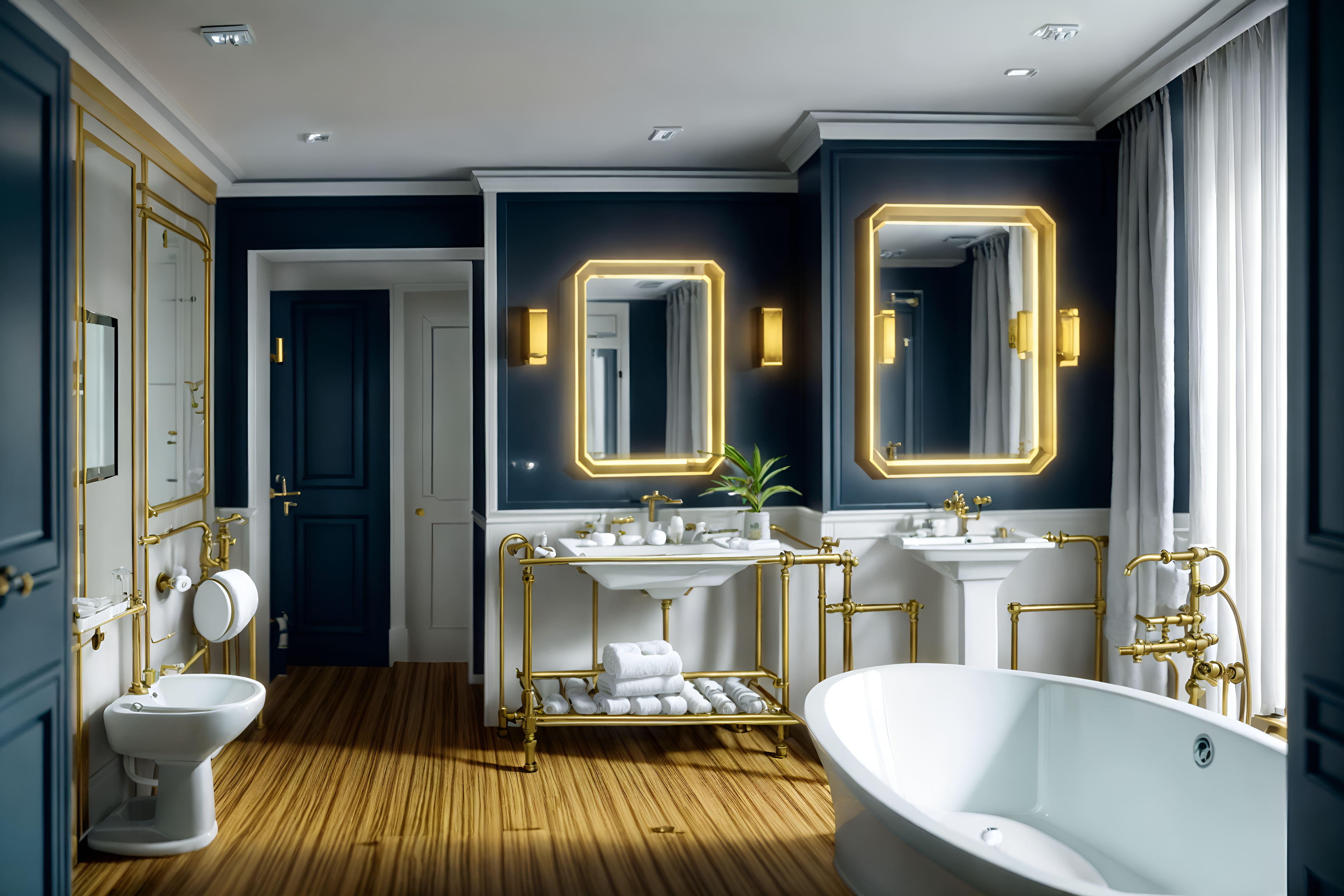 photo from pinterest of nautical-style interior designed (hotel bathroom interior) with toilet seat and bathtub and shower and bathroom cabinet and bath rail and mirror and plant and bathroom sink with faucet cinematic photo, highly detailed, cinematic lighting, ultra-detailed, ultrarealistic, photorealism, 8k. trending on pinterest. nautical interior design style. masterpiece, cinematic light, ultrarealistic+, photorealistic+, 8k, raw photo, realistic, sharp focus on eyes, (symmetrical eyes), (intact eyes), hyperrealistic, highest quality, best quality, , highly detailed, masterpiece, best quality, extremely detailed 8k wallpaper, masterpiece, best quality, ultra-detailed, best shadow, detailed background, detailed face, detailed eyes, high contrast, best illumination, detailed face, dulux, caustic, dynamic angle, detailed glow. dramatic lighting. highly detailed, insanely detailed hair, symmetrical, intricate details, professionally retouched, 8k high definition. strong bokeh. award winning photo.