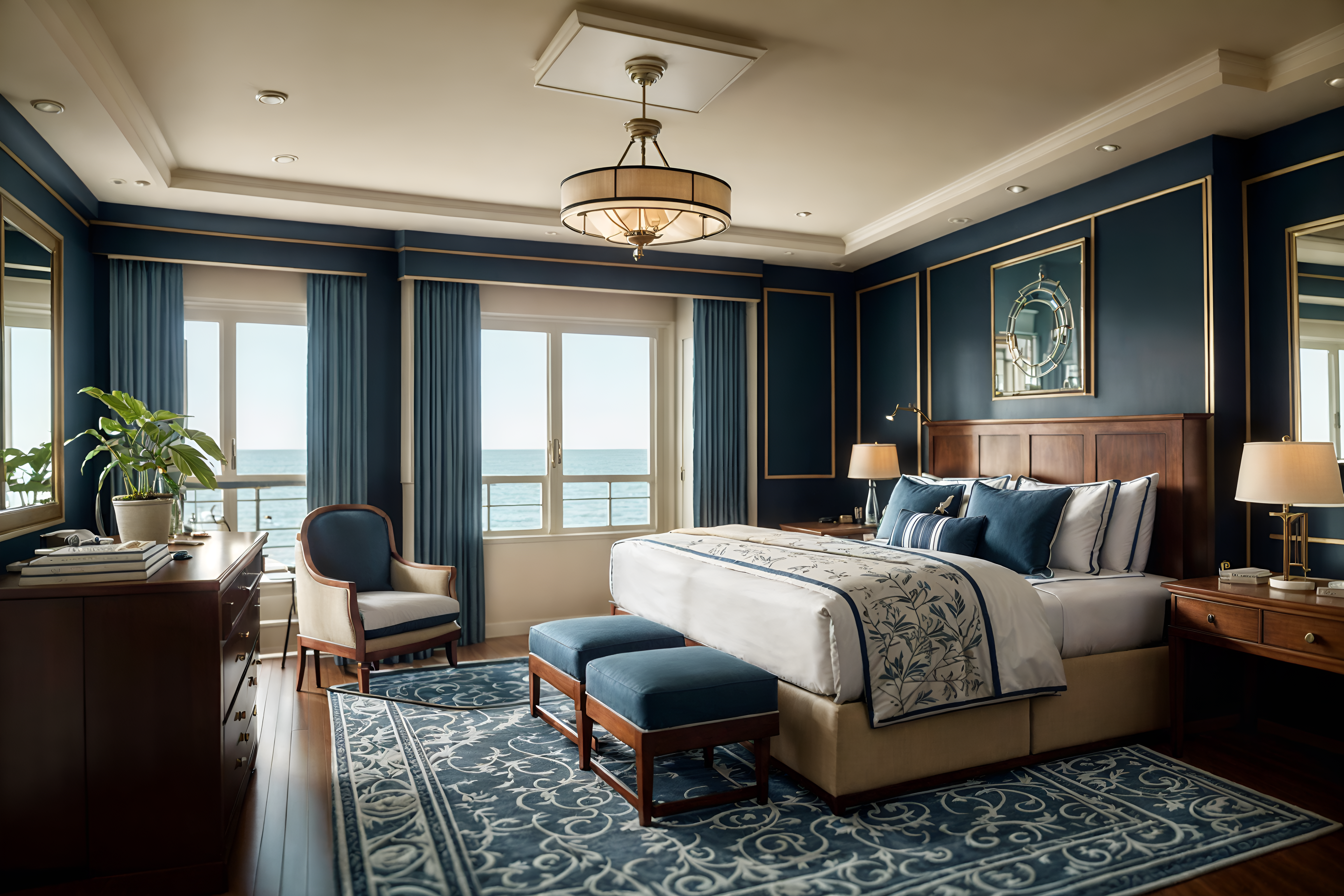 photo from pinterest of nautical-style interior designed (hotel room interior) with hotel bathroom and bed and dresser closet and accent chair and mirror and storage bench or ottoman and working desk with desk chair and plant cinematic photo, highly detailed, cinematic lighting, ultra-detailed, ultrarealistic, photorealism, 8k. trending on pinterest. nautical interior design style. masterpiece, cinematic light, ultrarealistic+, photorealistic+, 8k, raw photo, realistic, sharp focus on eyes, (symmetrical eyes), (intact eyes), hyperrealistic, highest quality, best quality, , highly detailed, masterpiece, best quality, extremely detailed 8k wallpaper, masterpiece, best quality, ultra-detailed, best shadow, detailed background, detailed face, detailed eyes, high contrast, best illumination, detailed face, dulux, caustic, dynamic angle, detailed glow. dramatic lighting. highly detailed, insanely detailed hair, symmetrical, intricate details, professionally retouched, 8k high definition. strong bokeh. award winning photo.