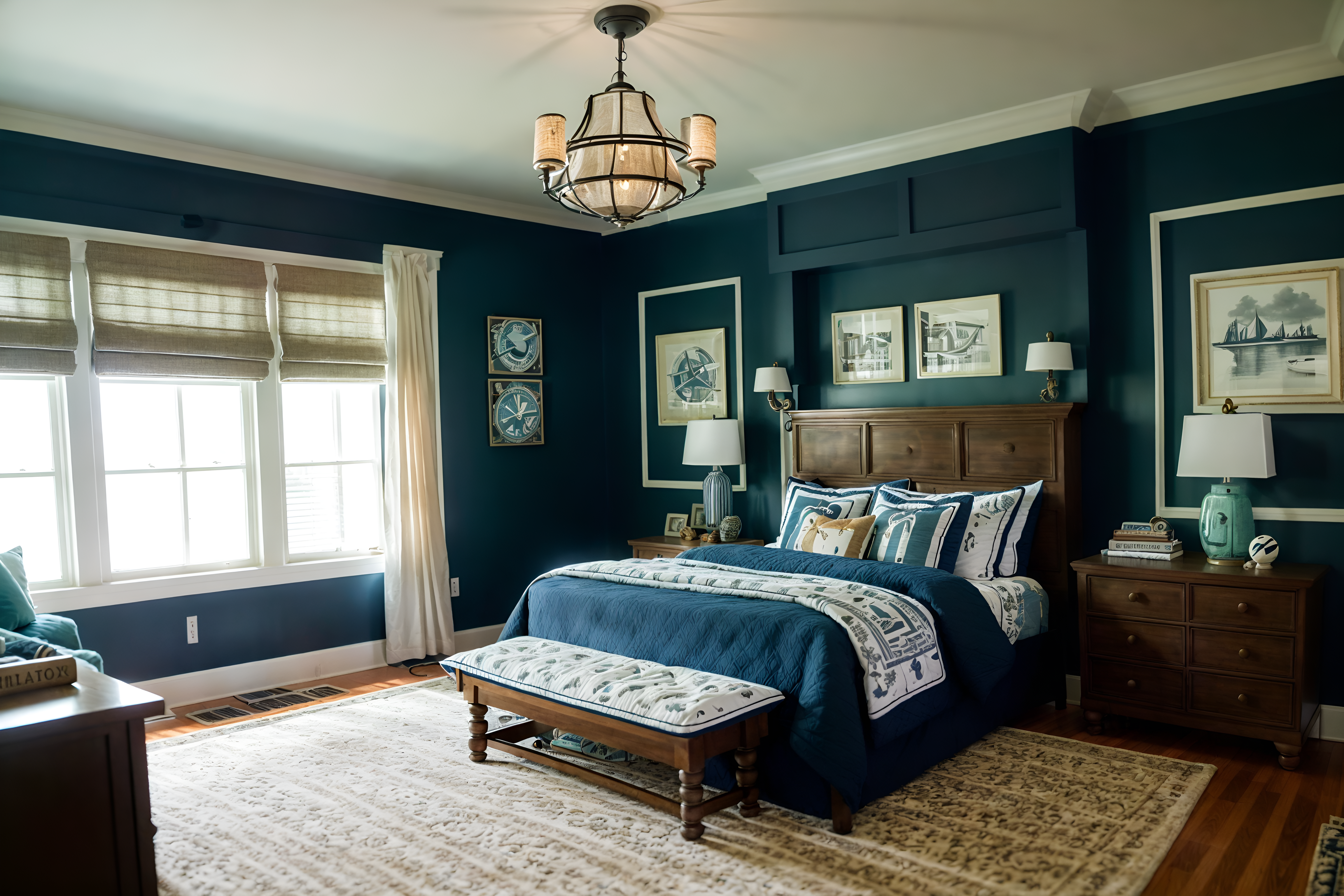 photo from pinterest of nautical-style interior designed (kids room interior) with bed and bedside table or night stand and accent chair and storage bench or ottoman and mirror and headboard and dresser closet and night light cinematic photo, highly detailed, cinematic lighting, ultra-detailed, ultrarealistic, photorealism, 8k. trending on pinterest. nautical interior design style. masterpiece, cinematic light, ultrarealistic+, photorealistic+, 8k, raw photo, realistic, sharp focus on eyes, (symmetrical eyes), (intact eyes), hyperrealistic, highest quality, best quality, , highly detailed, masterpiece, best quality, extremely detailed 8k wallpaper, masterpiece, best quality, ultra-detailed, best shadow, detailed background, detailed face, detailed eyes, high contrast, best illumination, detailed face, dulux, caustic, dynamic angle, detailed glow. dramatic lighting. highly detailed, insanely detailed hair, symmetrical, intricate details, professionally retouched, 8k high definition. strong bokeh. award winning photo.