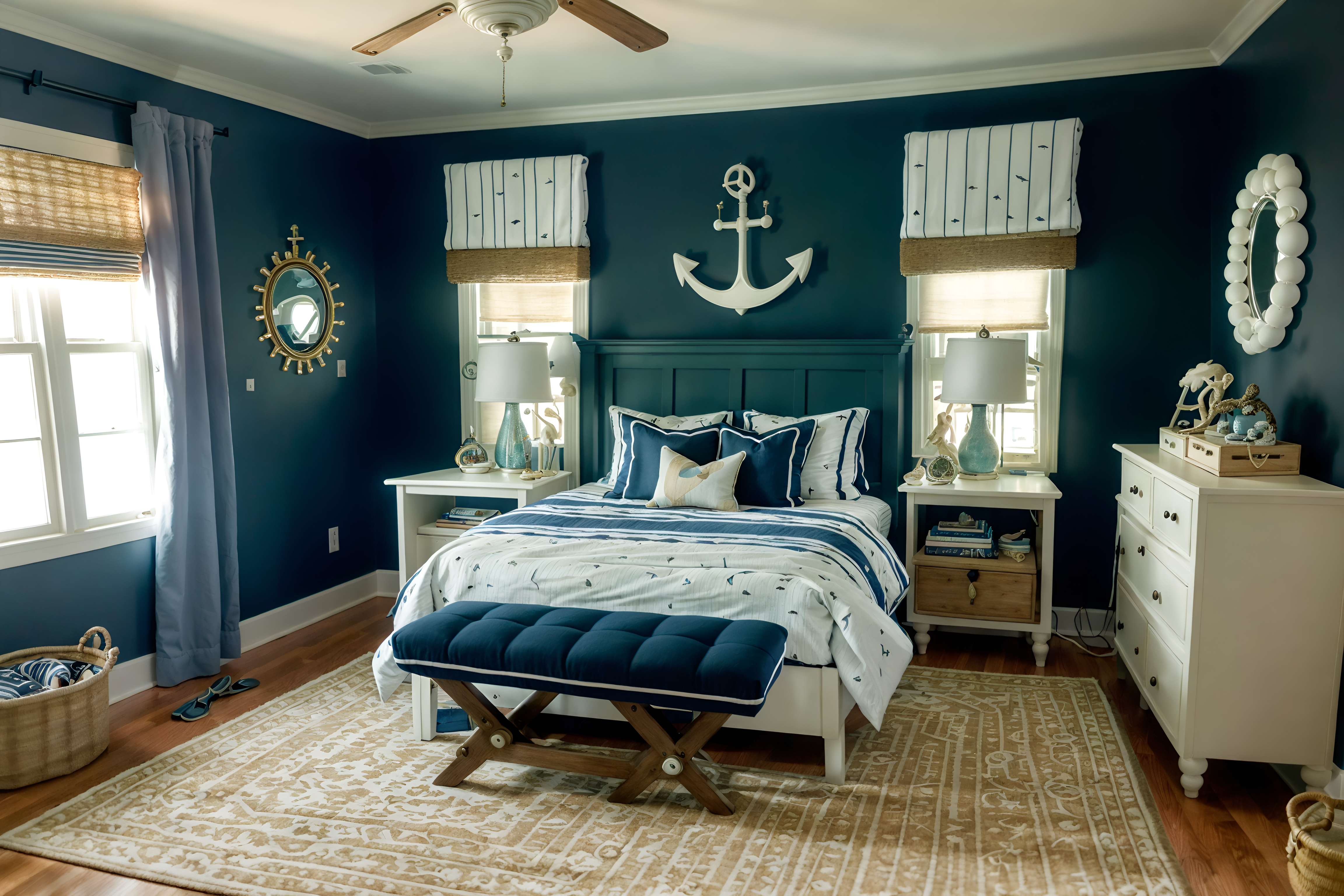 photo from pinterest of nautical-style interior designed (kids room interior) with bed and bedside table or night stand and accent chair and storage bench or ottoman and mirror and headboard and dresser closet and night light cinematic photo, highly detailed, cinematic lighting, ultra-detailed, ultrarealistic, photorealism, 8k. trending on pinterest. nautical interior design style. masterpiece, cinematic light, ultrarealistic+, photorealistic+, 8k, raw photo, realistic, sharp focus on eyes, (symmetrical eyes), (intact eyes), hyperrealistic, highest quality, best quality, , highly detailed, masterpiece, best quality, extremely detailed 8k wallpaper, masterpiece, best quality, ultra-detailed, best shadow, detailed background, detailed face, detailed eyes, high contrast, best illumination, detailed face, dulux, caustic, dynamic angle, detailed glow. dramatic lighting. highly detailed, insanely detailed hair, symmetrical, intricate details, professionally retouched, 8k high definition. strong bokeh. award winning photo.