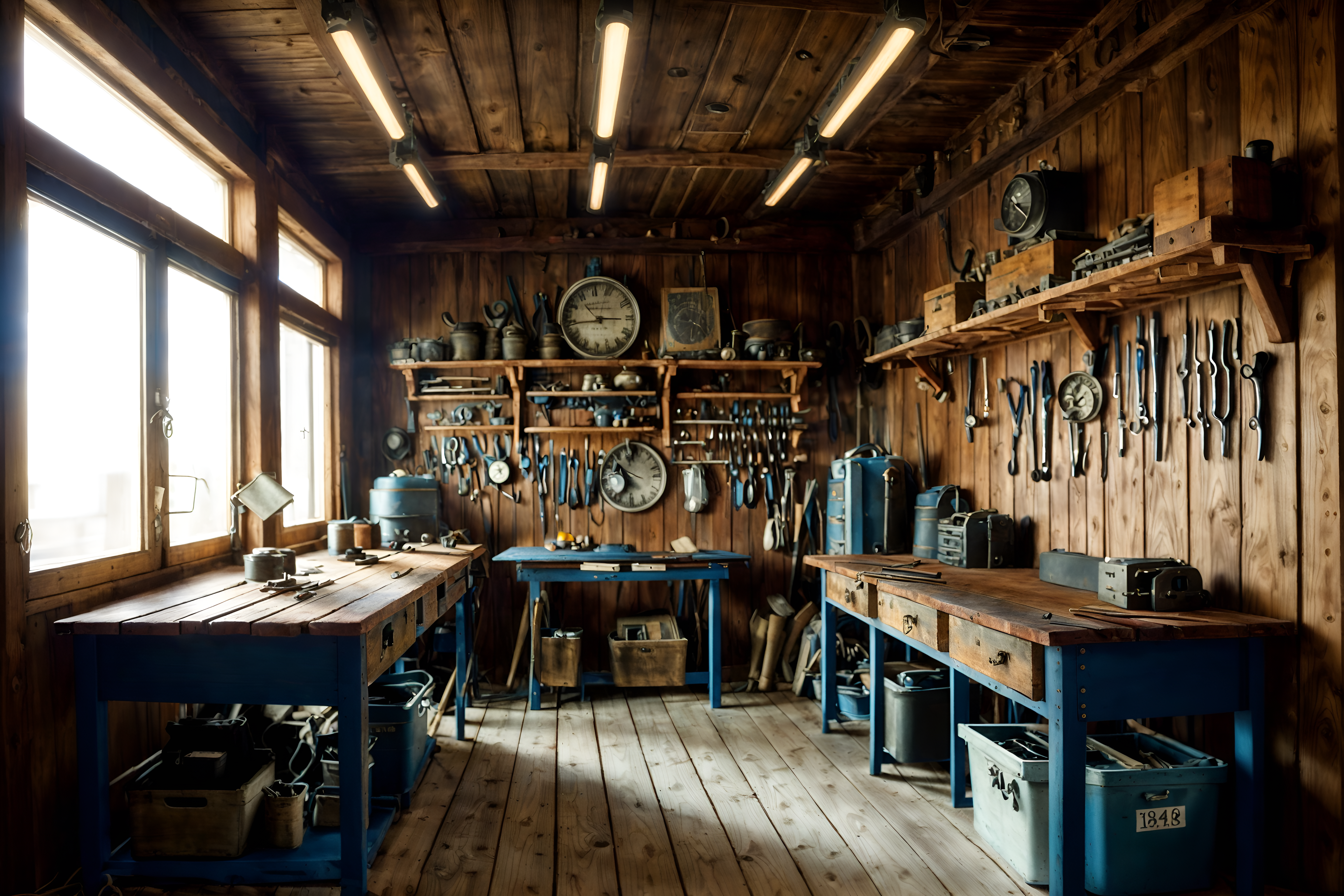photo from pinterest of nautical-style interior designed (workshop interior) with wooden workbench and tool wall and messy and wooden workbench cinematic photo, highly detailed, cinematic lighting, ultra-detailed, ultrarealistic, photorealism, 8k. trending on pinterest. nautical interior design style. masterpiece, cinematic light, ultrarealistic+, photorealistic+, 8k, raw photo, realistic, sharp focus on eyes, (symmetrical eyes), (intact eyes), hyperrealistic, highest quality, best quality, , highly detailed, masterpiece, best quality, extremely detailed 8k wallpaper, masterpiece, best quality, ultra-detailed, best shadow, detailed background, detailed face, detailed eyes, high contrast, best illumination, detailed face, dulux, caustic, dynamic angle, detailed glow. dramatic lighting. highly detailed, insanely detailed hair, symmetrical, intricate details, professionally retouched, 8k high definition. strong bokeh. award winning photo.