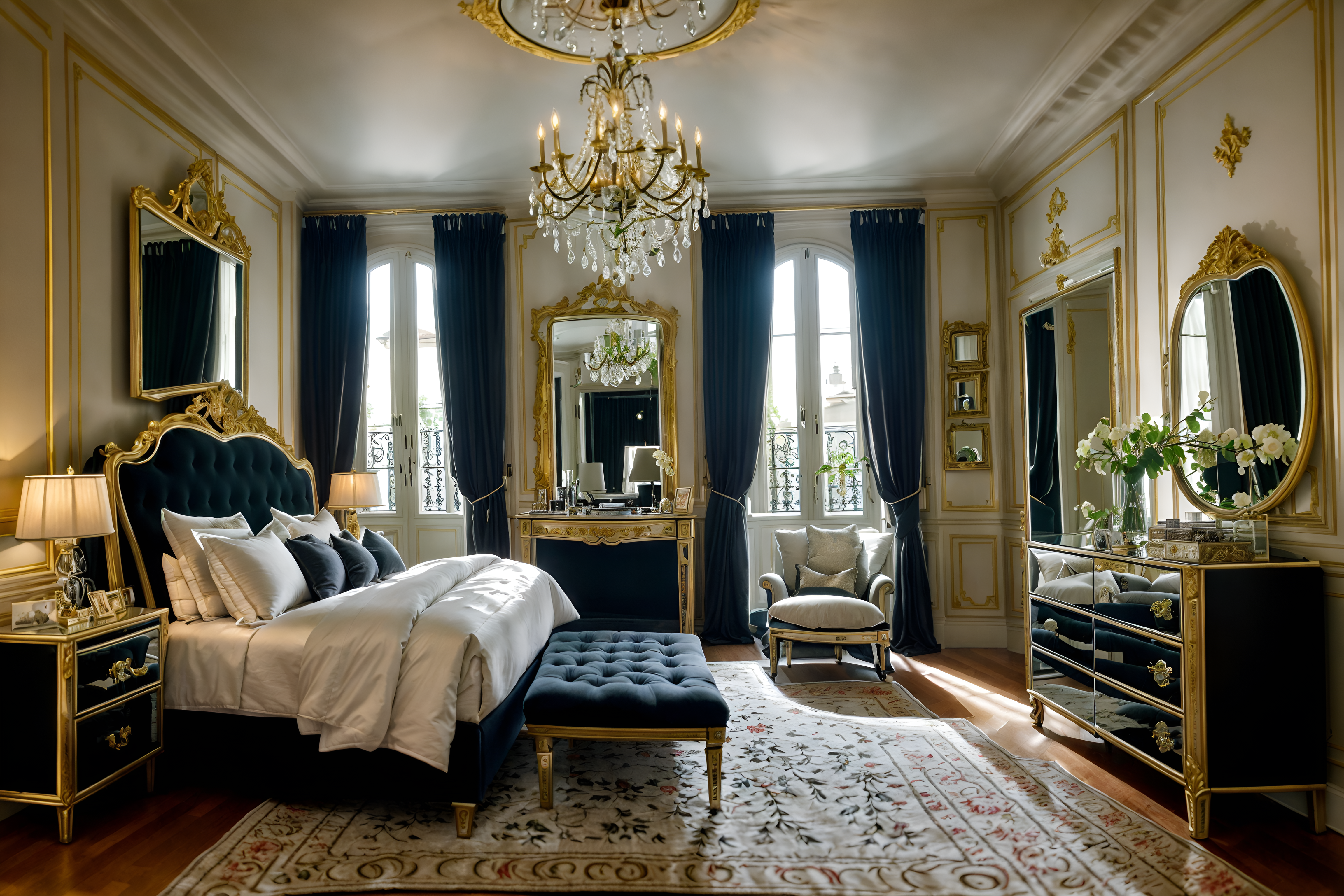 photo from pinterest of parisian-style interior designed (bedroom interior) with storage bench or ottoman and headboard and dresser closet and mirror and accent chair and bedside table or night stand and plant and night light cinematic photo, highly detailed, cinematic lighting, ultra-detailed, ultrarealistic, photorealism, 8k. trending on pinterest. parisian interior design style. masterpiece, cinematic light, ultrarealistic+, photorealistic+, 8k, raw photo, realistic, sharp focus on eyes, (symmetrical eyes), (intact eyes), hyperrealistic, highest quality, best quality, , highly detailed, masterpiece, best quality, extremely detailed 8k wallpaper, masterpiece, best quality, ultra-detailed, best shadow, detailed background, detailed face, detailed eyes, high contrast, best illumination, detailed face, dulux, caustic, dynamic angle, detailed glow. dramatic lighting. highly detailed, insanely detailed hair, symmetrical, intricate details, professionally retouched, 8k high definition. strong bokeh. award winning photo.