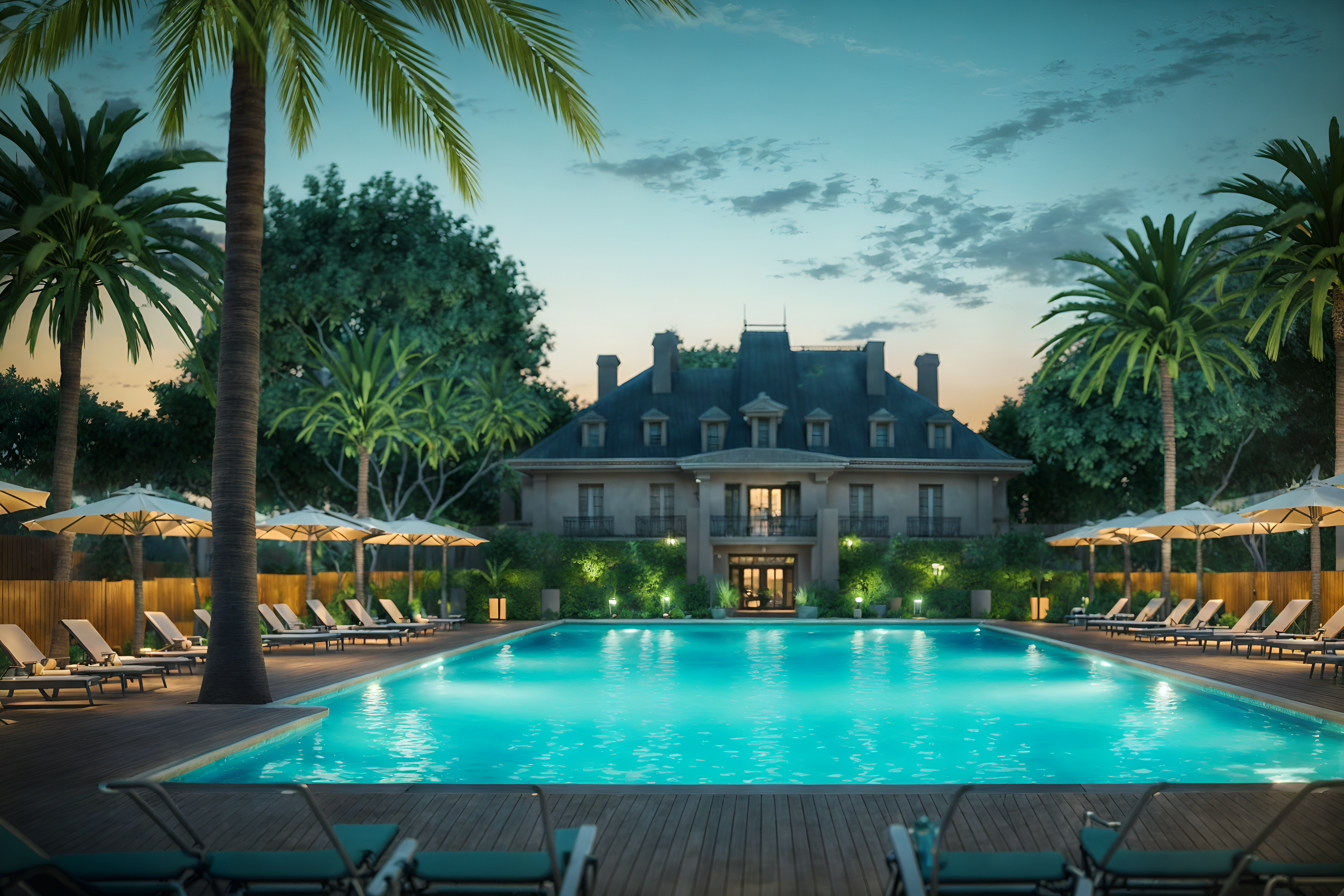photo from pinterest of parisian-style designed (outdoor pool area ) with pool lounge chairs and pool and pool lights and pool lounge chairs cinematic photo, highly detailed, cinematic lighting, ultra-detailed, ultrarealistic, photorealism, 8k. trending on pinterest. parisian design style. masterpiece, cinematic light, ultrarealistic+, photorealistic+, 8k, raw photo, realistic, sharp focus on eyes, (symmetrical eyes), (intact eyes), hyperrealistic, highest quality, best quality, , highly detailed, masterpiece, best quality, extremely detailed 8k wallpaper, masterpiece, best quality, ultra-detailed, best shadow, detailed background, detailed face, detailed eyes, high contrast, best illumination, detailed face, dulux, caustic, dynamic angle, detailed glow. dramatic lighting. highly detailed, insanely detailed hair, symmetrical, intricate details, professionally retouched, 8k high definition. strong bokeh. award winning photo.