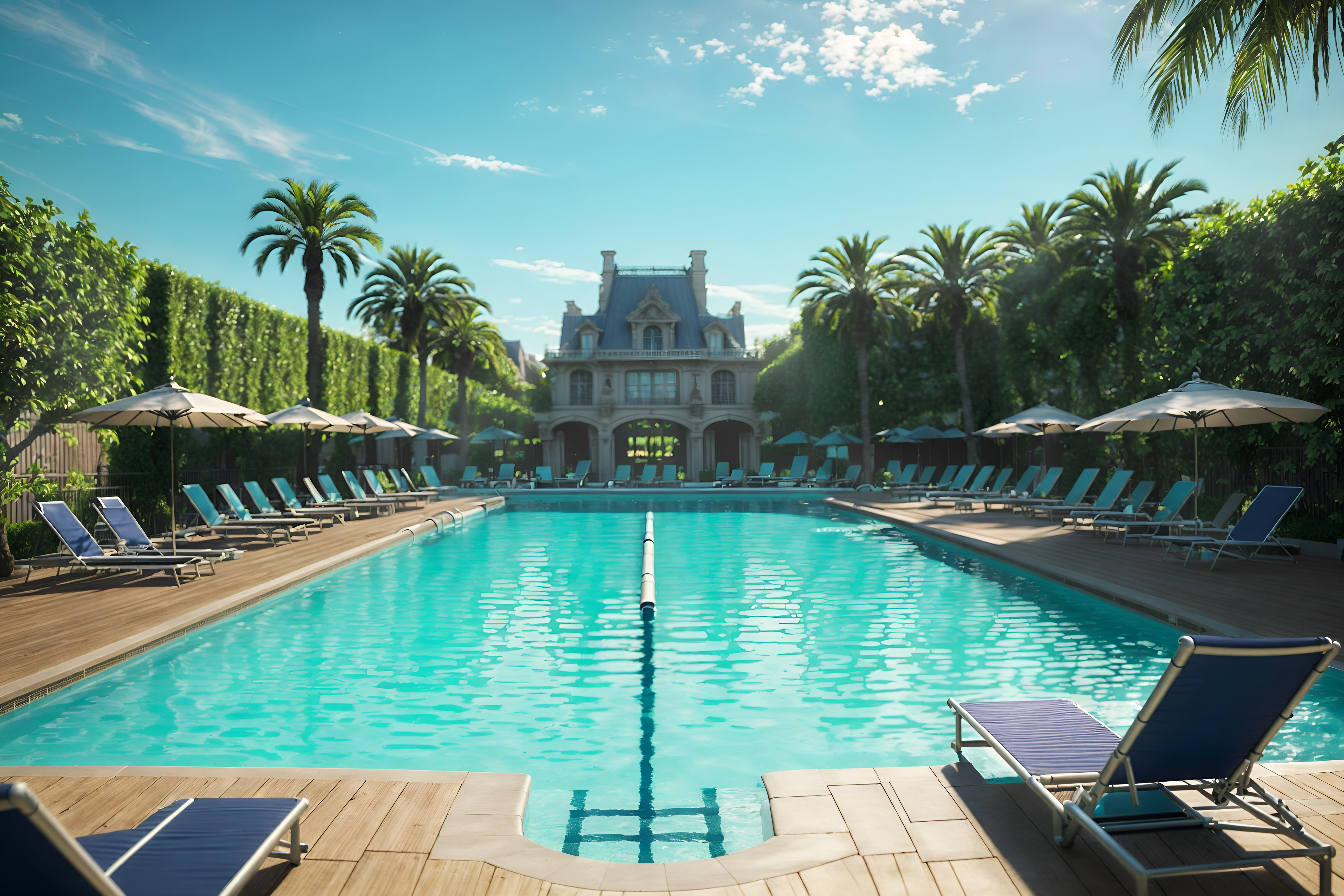 photo from pinterest of parisian-style designed (outdoor pool area ) with pool lounge chairs and pool and pool lights and pool lounge chairs cinematic photo, highly detailed, cinematic lighting, ultra-detailed, ultrarealistic, photorealism, 8k. trending on pinterest. parisian design style. masterpiece, cinematic light, ultrarealistic+, photorealistic+, 8k, raw photo, realistic, sharp focus on eyes, (symmetrical eyes), (intact eyes), hyperrealistic, highest quality, best quality, , highly detailed, masterpiece, best quality, extremely detailed 8k wallpaper, masterpiece, best quality, ultra-detailed, best shadow, detailed background, detailed face, detailed eyes, high contrast, best illumination, detailed face, dulux, caustic, dynamic angle, detailed glow. dramatic lighting. highly detailed, insanely detailed hair, symmetrical, intricate details, professionally retouched, 8k high definition. strong bokeh. award winning photo.