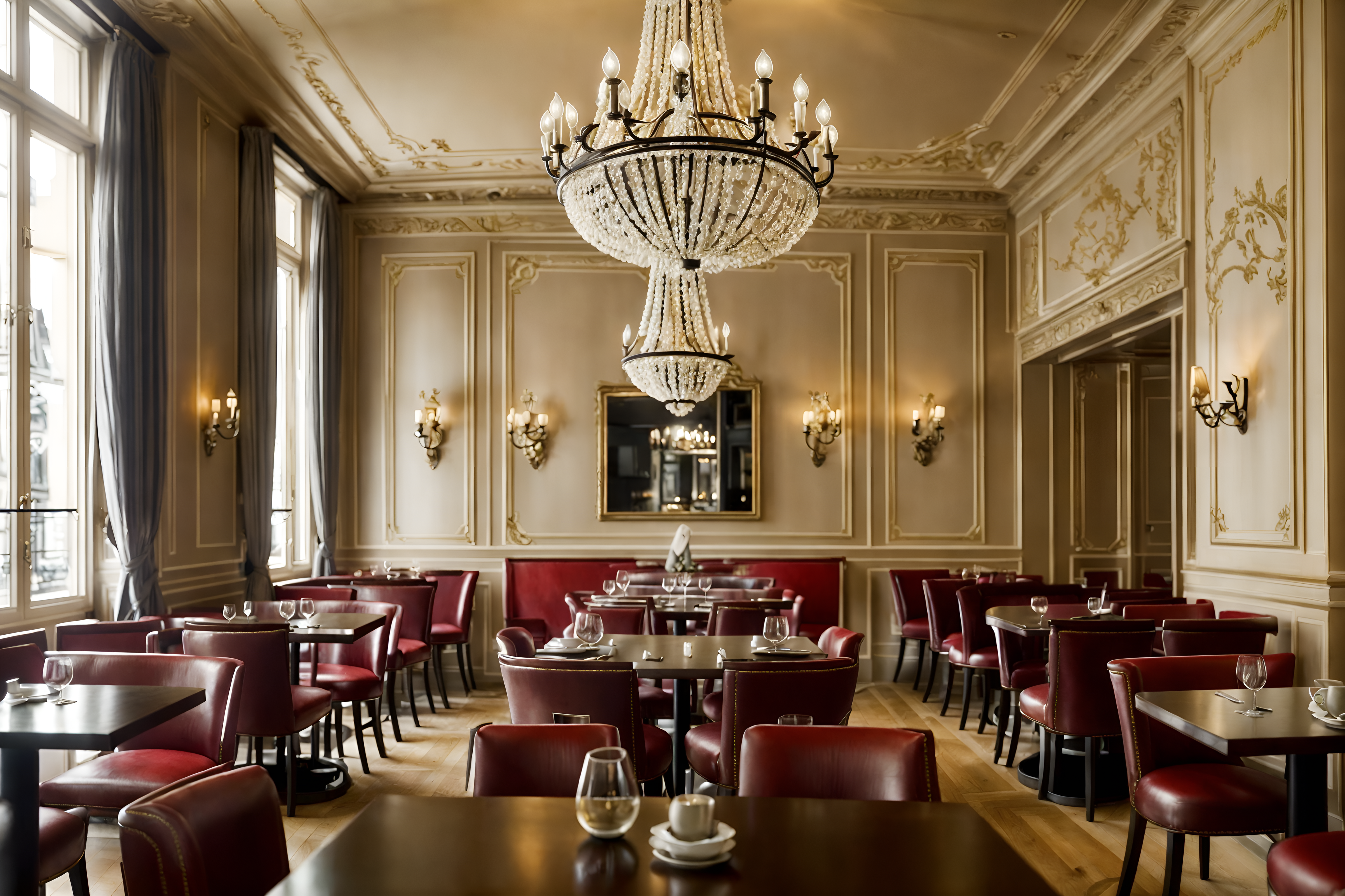 photo from pinterest of parisian-style interior designed (restaurant interior) with restaurant chairs and restaurant decor and restaurant bar and restaurant dining tables and restaurant chairs cinematic photo, highly detailed, cinematic lighting, ultra-detailed, ultrarealistic, photorealism, 8k. trending on pinterest. parisian interior design style. masterpiece, cinematic light, ultrarealistic+, photorealistic+, 8k, raw photo, realistic, sharp focus on eyes, (symmetrical eyes), (intact eyes), hyperrealistic, highest quality, best quality, , highly detailed, masterpiece, best quality, extremely detailed 8k wallpaper, masterpiece, best quality, ultra-detailed, best shadow, detailed background, detailed face, detailed eyes, high contrast, best illumination, detailed face, dulux, caustic, dynamic angle, detailed glow. dramatic lighting. highly detailed, insanely detailed hair, symmetrical, intricate details, professionally retouched, 8k high definition. strong bokeh. award winning photo.