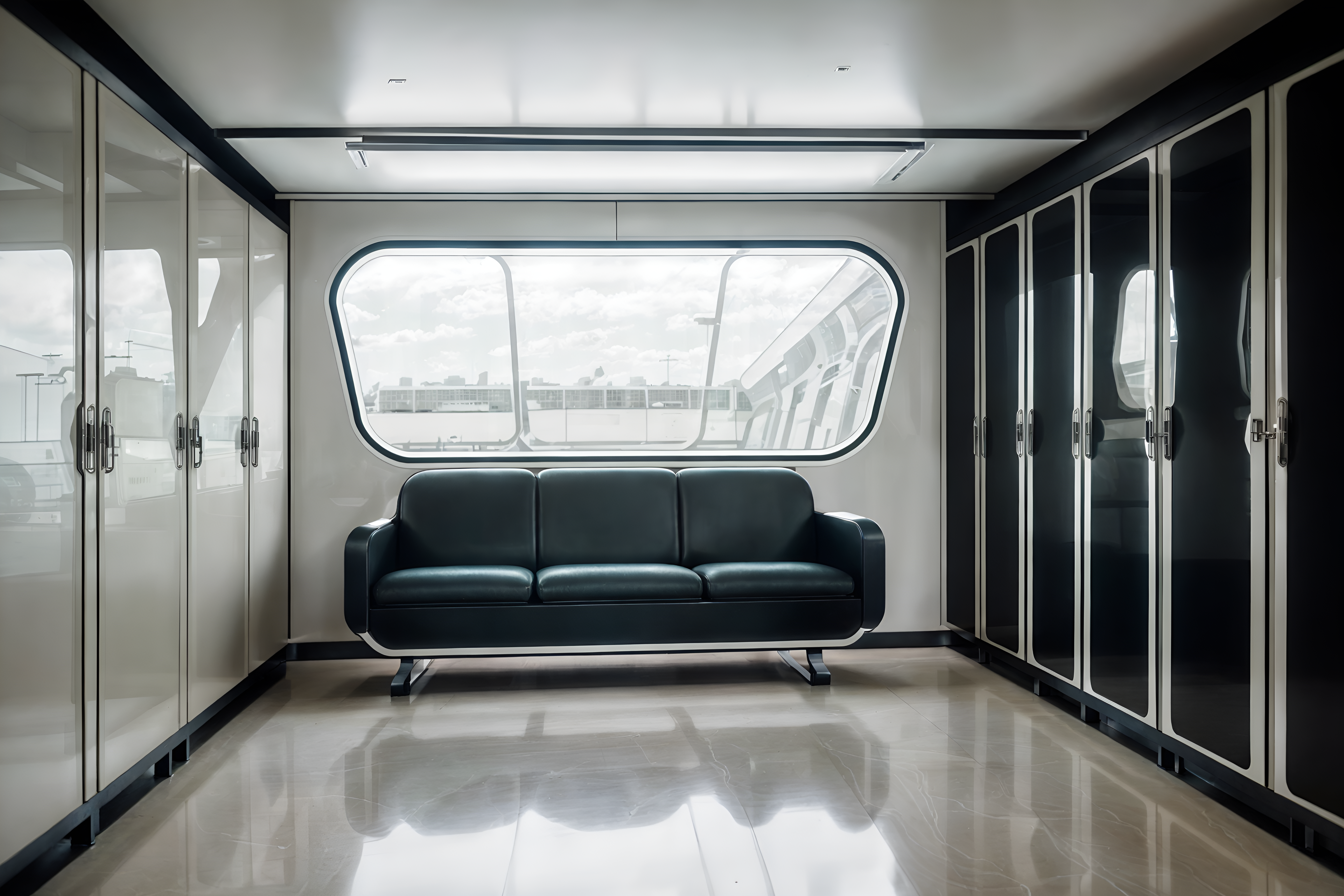 photo from pinterest of retro futuristic-style interior designed (drop zone interior) with wall hooks for coats and cubbies and high up storage and lockers and storage baskets and storage drawers and cabinets and a bench. . with futuristic interior and futurism minimalist interior and floating surfaces and monochromatic palette and glass panes and vintage futurism and smooth polished marble and smooth marble. . cinematic photo, highly detailed, cinematic lighting, ultra-detailed, ultrarealistic, photorealism, 8k. trending on pinterest. retro futuristic interior design style. masterpiece, cinematic light, ultrarealistic+, photorealistic+, 8k, raw photo, realistic, sharp focus on eyes, (symmetrical eyes), (intact eyes), hyperrealistic, highest quality, best quality, , highly detailed, masterpiece, best quality, extremely detailed 8k wallpaper, masterpiece, best quality, ultra-detailed, best shadow, detailed background, detailed face, detailed eyes, high contrast, best illumination, detailed face, dulux, caustic, dynamic angle, detailed glow. dramatic lighting. highly detailed, insanely detailed hair, symmetrical, intricate details, professionally retouched, 8k high definition. strong bokeh. award winning photo.