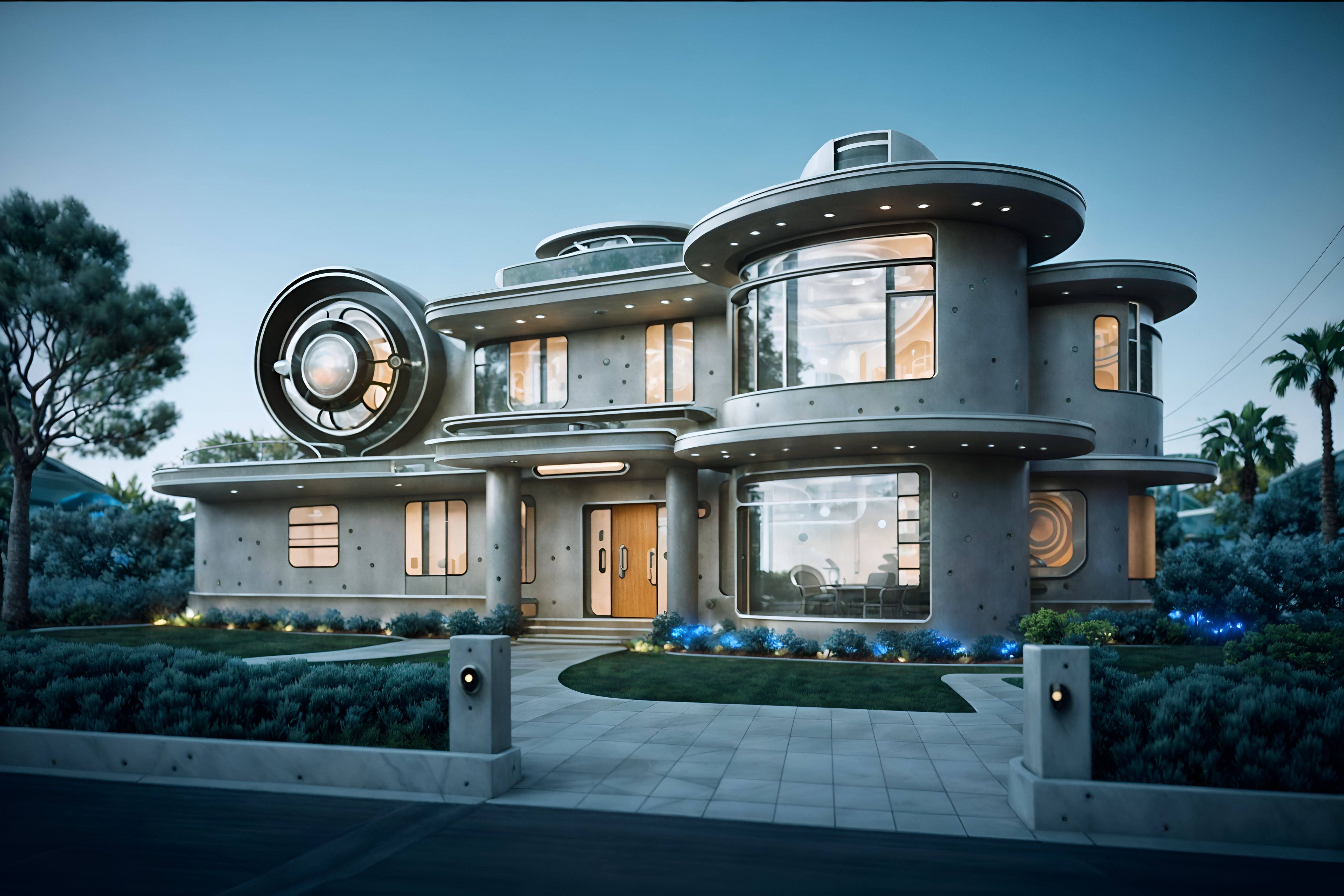 photo from pinterest of retro futuristic-style exterior designed (house exterior exterior) . with circular shapes and floating surfaces and glass panes and smooth polished marble and neutral background and bright accents and vintage futurism and futuristic exterior and strong geometric walls. . cinematic photo, highly detailed, cinematic lighting, ultra-detailed, ultrarealistic, photorealism, 8k. trending on pinterest. retro futuristic exterior design style. masterpiece, cinematic light, ultrarealistic+, photorealistic+, 8k, raw photo, realistic, sharp focus on eyes, (symmetrical eyes), (intact eyes), hyperrealistic, highest quality, best quality, , highly detailed, masterpiece, best quality, extremely detailed 8k wallpaper, masterpiece, best quality, ultra-detailed, best shadow, detailed background, detailed face, detailed eyes, high contrast, best illumination, detailed face, dulux, caustic, dynamic angle, detailed glow. dramatic lighting. highly detailed, insanely detailed hair, symmetrical, intricate details, professionally retouched, 8k high definition. strong bokeh. award winning photo.