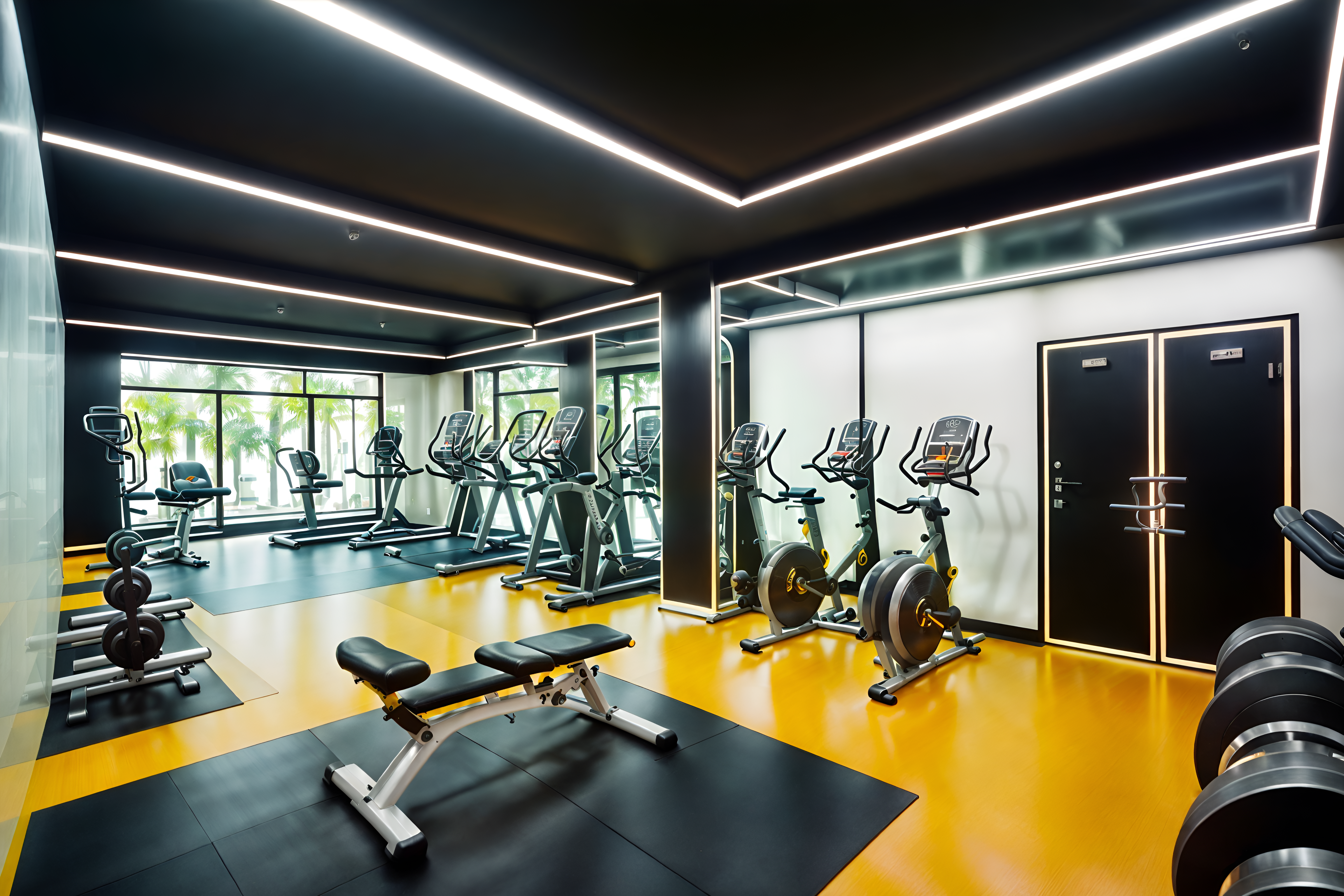 photo from pinterest of retro futuristic-style interior designed (fitness gym interior) with exercise bicycle and crosstrainer and squat rack and dumbbell stand and bench press and exercise bicycle. . with light colors and vintage futurism and glass panes and futuristic interior and futurism minimalist interior and neutral background and bright accents and circular shapes and smooth polished marble. . cinematic photo, highly detailed, cinematic lighting, ultra-detailed, ultrarealistic, photorealism, 8k. trending on pinterest. retro futuristic interior design style. masterpiece, cinematic light, ultrarealistic+, photorealistic+, 8k, raw photo, realistic, sharp focus on eyes, (symmetrical eyes), (intact eyes), hyperrealistic, highest quality, best quality, , highly detailed, masterpiece, best quality, extremely detailed 8k wallpaper, masterpiece, best quality, ultra-detailed, best shadow, detailed background, detailed face, detailed eyes, high contrast, best illumination, detailed face, dulux, caustic, dynamic angle, detailed glow. dramatic lighting. highly detailed, insanely detailed hair, symmetrical, intricate details, professionally retouched, 8k high definition. strong bokeh. award winning photo.
