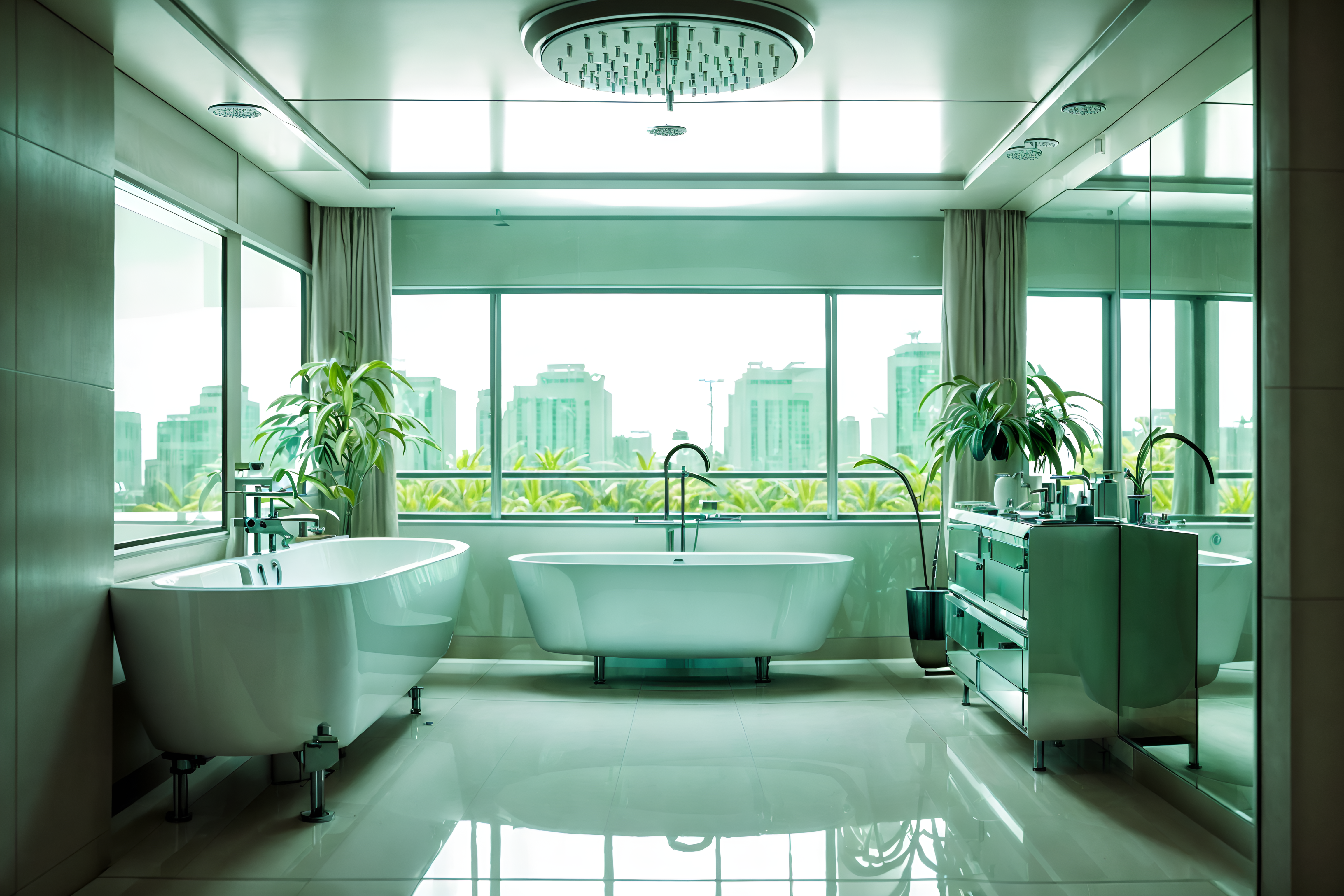 photo from pinterest of retro futuristic-style interior designed (hotel bathroom interior) with mirror and plant and bath towel and shower and bathtub and bathroom cabinet and toilet seat and bathroom sink with faucet. . with neutral background and bright accents and steel finishing and light colors and futuristic interior and floating surfaces and glass panes and circular shapes and minimalist clean lines. . cinematic photo, highly detailed, cinematic lighting, ultra-detailed, ultrarealistic, photorealism, 8k. trending on pinterest. retro futuristic interior design style. masterpiece, cinematic light, ultrarealistic+, photorealistic+, 8k, raw photo, realistic, sharp focus on eyes, (symmetrical eyes), (intact eyes), hyperrealistic, highest quality, best quality, , highly detailed, masterpiece, best quality, extremely detailed 8k wallpaper, masterpiece, best quality, ultra-detailed, best shadow, detailed background, detailed face, detailed eyes, high contrast, best illumination, detailed face, dulux, caustic, dynamic angle, detailed glow. dramatic lighting. highly detailed, insanely detailed hair, symmetrical, intricate details, professionally retouched, 8k high definition. strong bokeh. award winning photo.