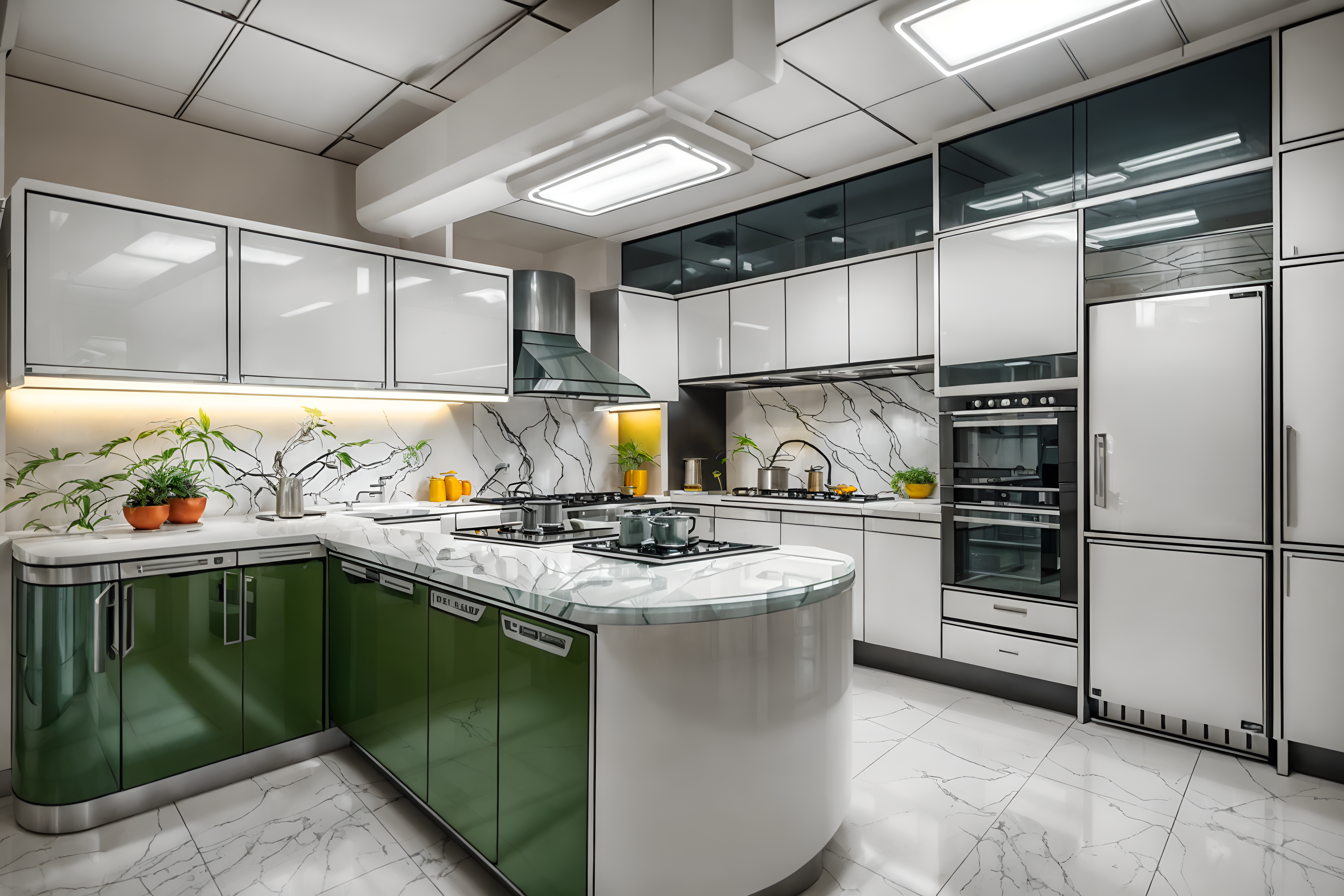 photo from pinterest of retro futuristic-style interior designed (kitchen interior) with plant and kitchen cabinets and worktops and refrigerator and stove and sink and plant. . with futuristic interior and neutral background and bright accents and light colors and smooth polished marble and circular shapes and futurism minimalist interior and glass panes and minimalist clean lines. . cinematic photo, highly detailed, cinematic lighting, ultra-detailed, ultrarealistic, photorealism, 8k. trending on pinterest. retro futuristic interior design style. masterpiece, cinematic light, ultrarealistic+, photorealistic+, 8k, raw photo, realistic, sharp focus on eyes, (symmetrical eyes), (intact eyes), hyperrealistic, highest quality, best quality, , highly detailed, masterpiece, best quality, extremely detailed 8k wallpaper, masterpiece, best quality, ultra-detailed, best shadow, detailed background, detailed face, detailed eyes, high contrast, best illumination, detailed face, dulux, caustic, dynamic angle, detailed glow. dramatic lighting. highly detailed, insanely detailed hair, symmetrical, intricate details, professionally retouched, 8k high definition. strong bokeh. award winning photo.