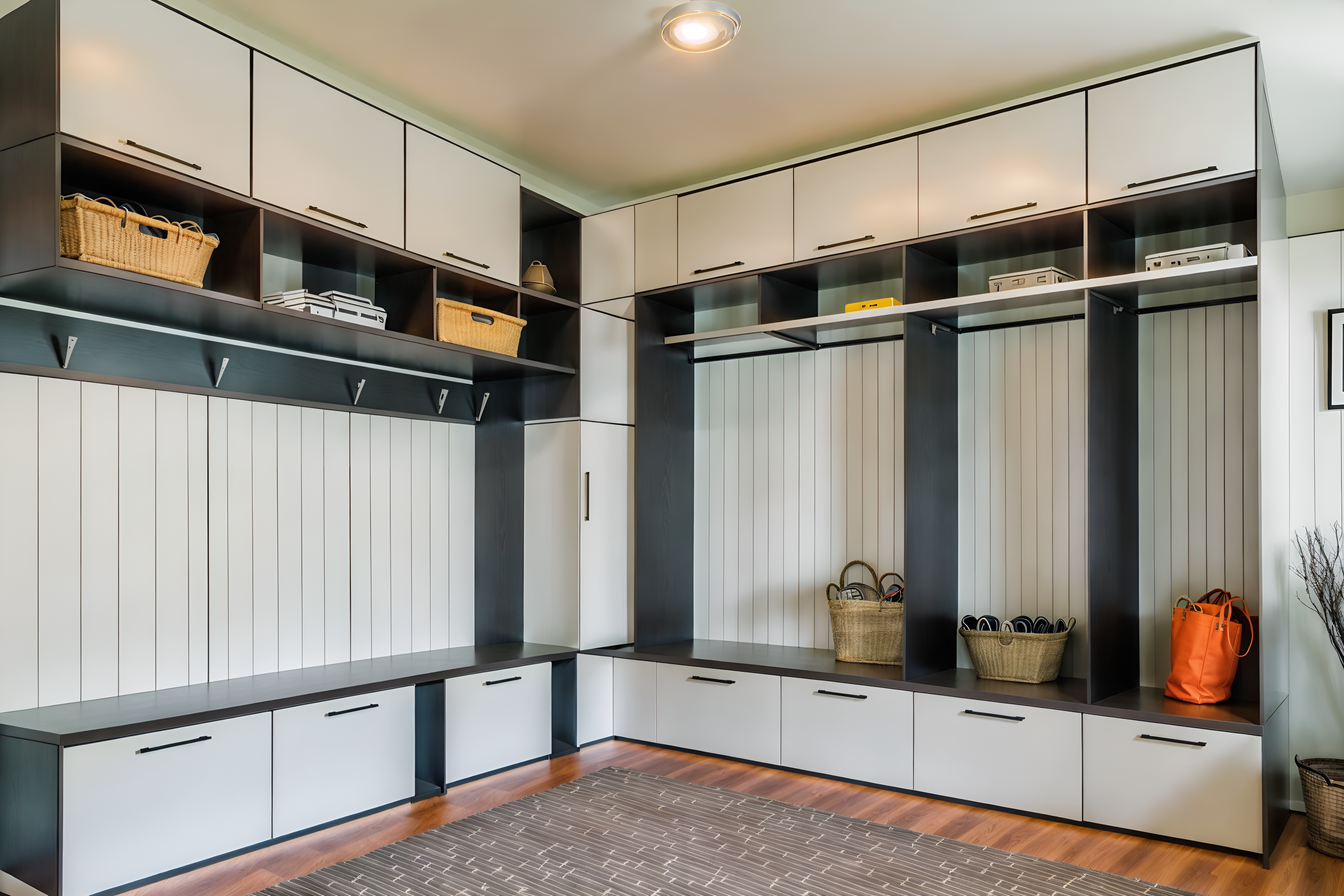 photo from pinterest of retro futuristic-style interior designed (mudroom interior) with a bench and wall hooks for coats and storage baskets and high up storage and storage drawers and cubbies and shelves for shoes and cabinets. . with glass panes and monochromatic palette and futurism minimalist interior and minimalist clean lines and steel finishing and circular shapes and neutral background and bright accents and light colors. . cinematic photo, highly detailed, cinematic lighting, ultra-detailed, ultrarealistic, photorealism, 8k. trending on pinterest. retro futuristic interior design style. masterpiece, cinematic light, ultrarealistic+, photorealistic+, 8k, raw photo, realistic, sharp focus on eyes, (symmetrical eyes), (intact eyes), hyperrealistic, highest quality, best quality, , highly detailed, masterpiece, best quality, extremely detailed 8k wallpaper, masterpiece, best quality, ultra-detailed, best shadow, detailed background, detailed face, detailed eyes, high contrast, best illumination, detailed face, dulux, caustic, dynamic angle, detailed glow. dramatic lighting. highly detailed, insanely detailed hair, symmetrical, intricate details, professionally retouched, 8k high definition. strong bokeh. award winning photo.