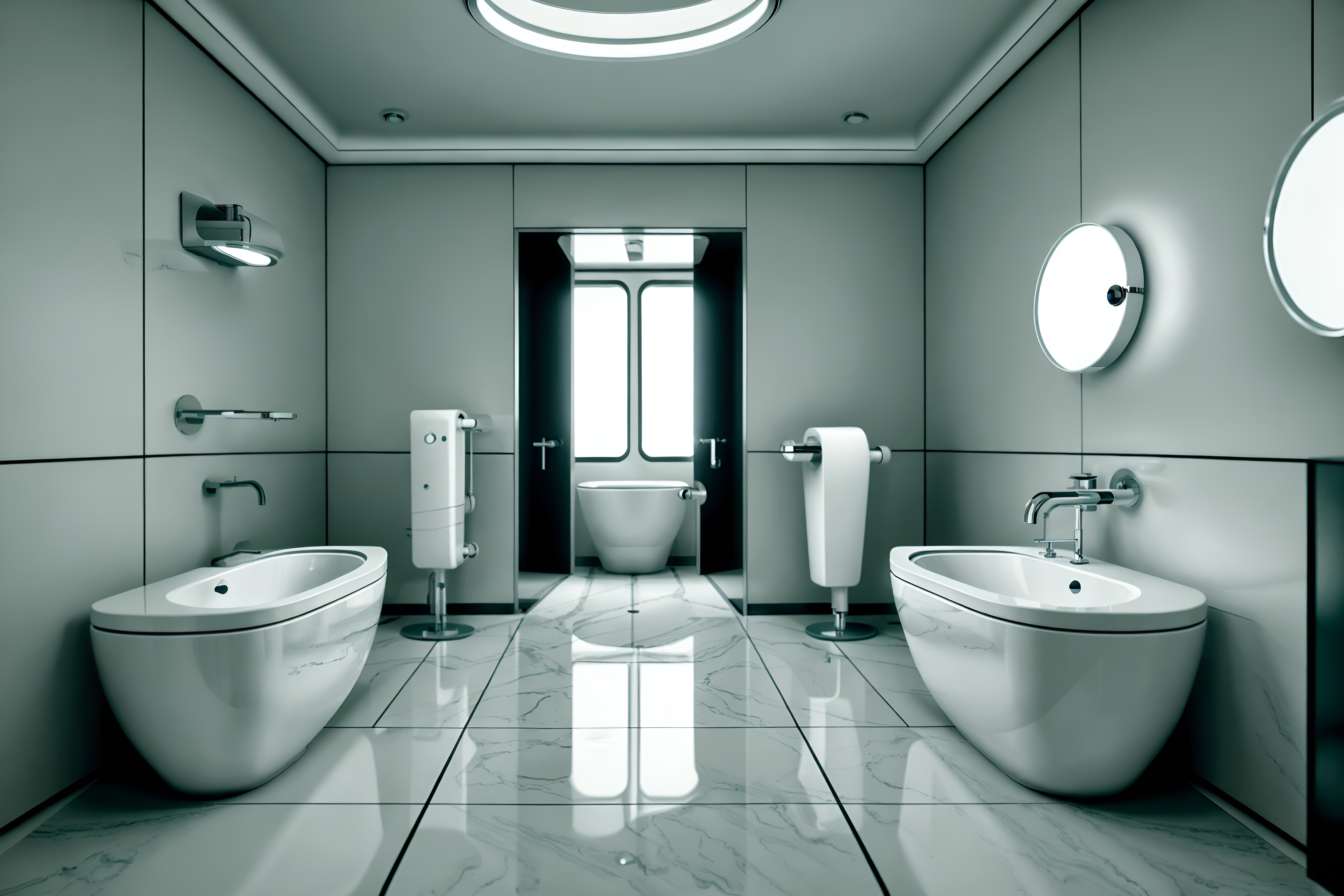 photo from pinterest of retro futuristic-style interior designed (toilet interior) with toilet paper hanger and sink with tap and toilet with toilet seat up and toilet paper hanger. . with glass panes and futurism minimalist interior and circular shapes and minimalist clean lines and floating surfaces and steel finishing and monochromatic palette and smooth polished marble. . cinematic photo, highly detailed, cinematic lighting, ultra-detailed, ultrarealistic, photorealism, 8k. trending on pinterest. retro futuristic interior design style. masterpiece, cinematic light, ultrarealistic+, photorealistic+, 8k, raw photo, realistic, sharp focus on eyes, (symmetrical eyes), (intact eyes), hyperrealistic, highest quality, best quality, , highly detailed, masterpiece, best quality, extremely detailed 8k wallpaper, masterpiece, best quality, ultra-detailed, best shadow, detailed background, detailed face, detailed eyes, high contrast, best illumination, detailed face, dulux, caustic, dynamic angle, detailed glow. dramatic lighting. highly detailed, insanely detailed hair, symmetrical, intricate details, professionally retouched, 8k high definition. strong bokeh. award winning photo.