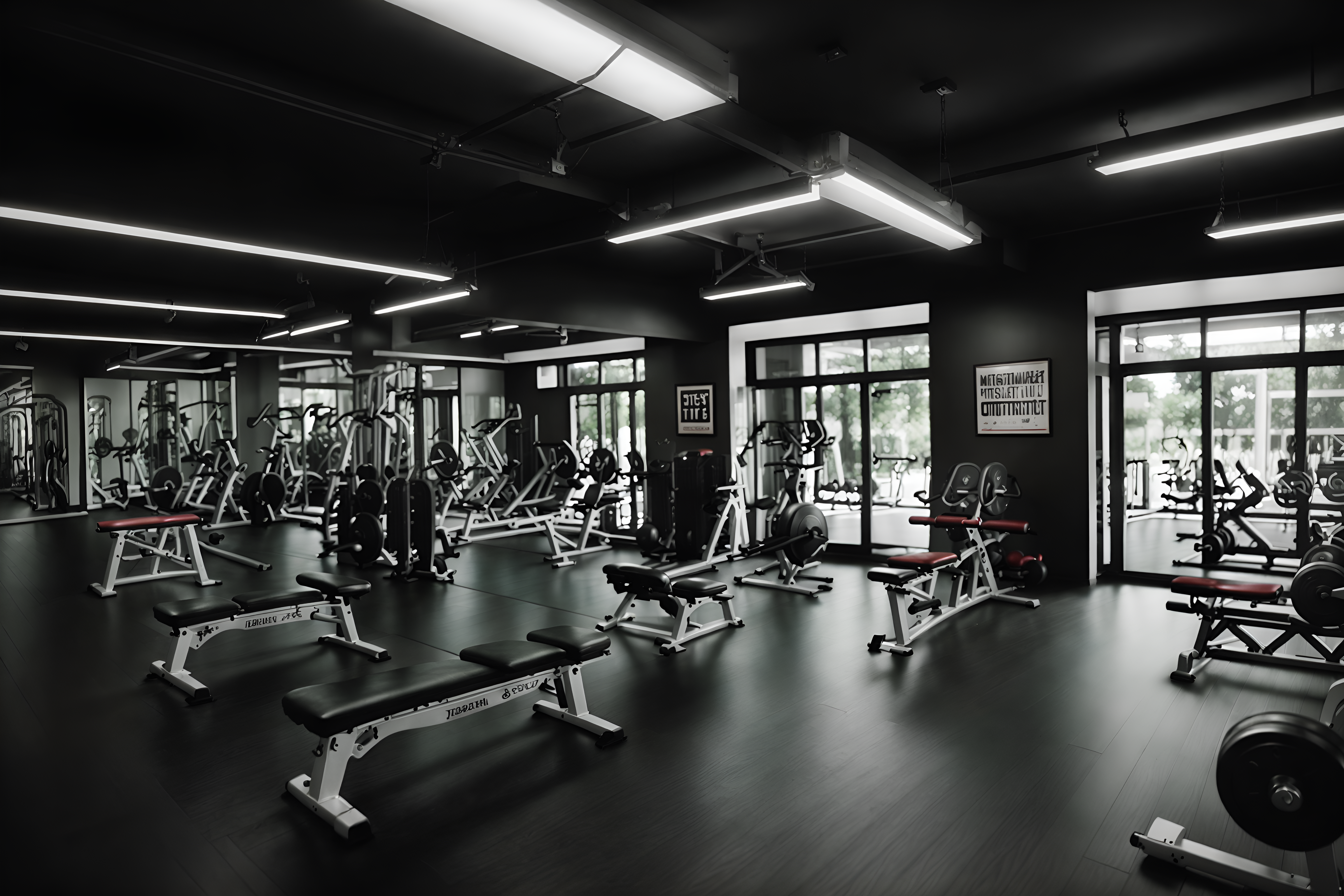 photo from pinterest of retro-style interior designed (fitness gym interior) with exercise bicycle and dumbbell stand and squat rack and bench press and crosstrainer and exercise bicycle cinematic photo, highly detailed, cinematic lighting, ultra-detailed, ultrarealistic, photorealism, 8k. trending on pinterest. retro interior design style. masterpiece, cinematic light, ultrarealistic+, photorealistic+, 8k, raw photo, realistic, sharp focus on eyes, (symmetrical eyes), (intact eyes), hyperrealistic, highest quality, best quality, , highly detailed, masterpiece, best quality, extremely detailed 8k wallpaper, masterpiece, best quality, ultra-detailed, best shadow, detailed background, detailed face, detailed eyes, high contrast, best illumination, detailed face, dulux, caustic, dynamic angle, detailed glow. dramatic lighting. highly detailed, insanely detailed hair, symmetrical, intricate details, professionally retouched, 8k high definition. strong bokeh. award winning photo.