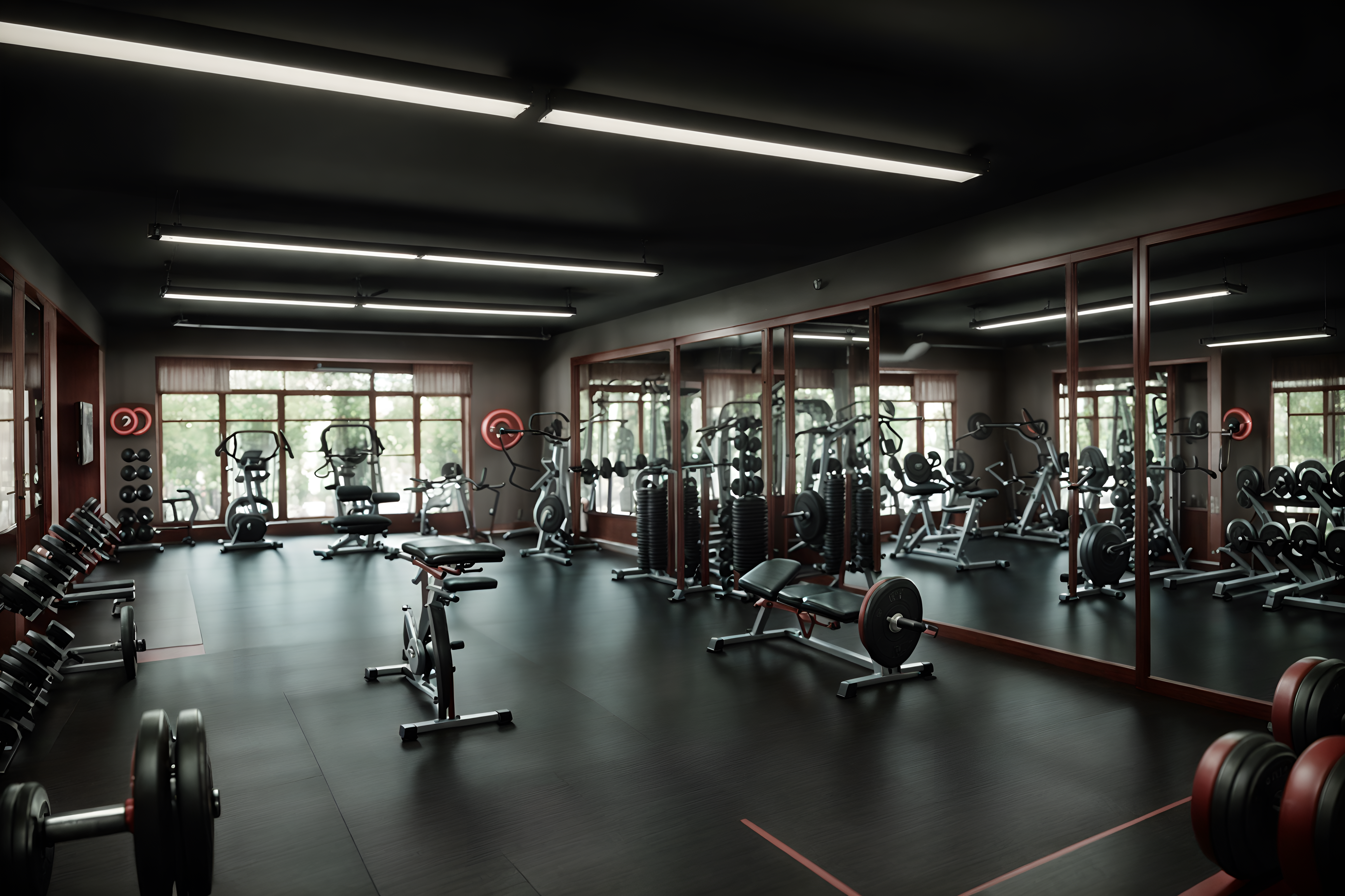 photo from pinterest of retro-style interior designed (fitness gym interior) with exercise bicycle and dumbbell stand and squat rack and bench press and crosstrainer and exercise bicycle cinematic photo, highly detailed, cinematic lighting, ultra-detailed, ultrarealistic, photorealism, 8k. trending on pinterest. retro interior design style. masterpiece, cinematic light, ultrarealistic+, photorealistic+, 8k, raw photo, realistic, sharp focus on eyes, (symmetrical eyes), (intact eyes), hyperrealistic, highest quality, best quality, , highly detailed, masterpiece, best quality, extremely detailed 8k wallpaper, masterpiece, best quality, ultra-detailed, best shadow, detailed background, detailed face, detailed eyes, high contrast, best illumination, detailed face, dulux, caustic, dynamic angle, detailed glow. dramatic lighting. highly detailed, insanely detailed hair, symmetrical, intricate details, professionally retouched, 8k high definition. strong bokeh. award winning photo.