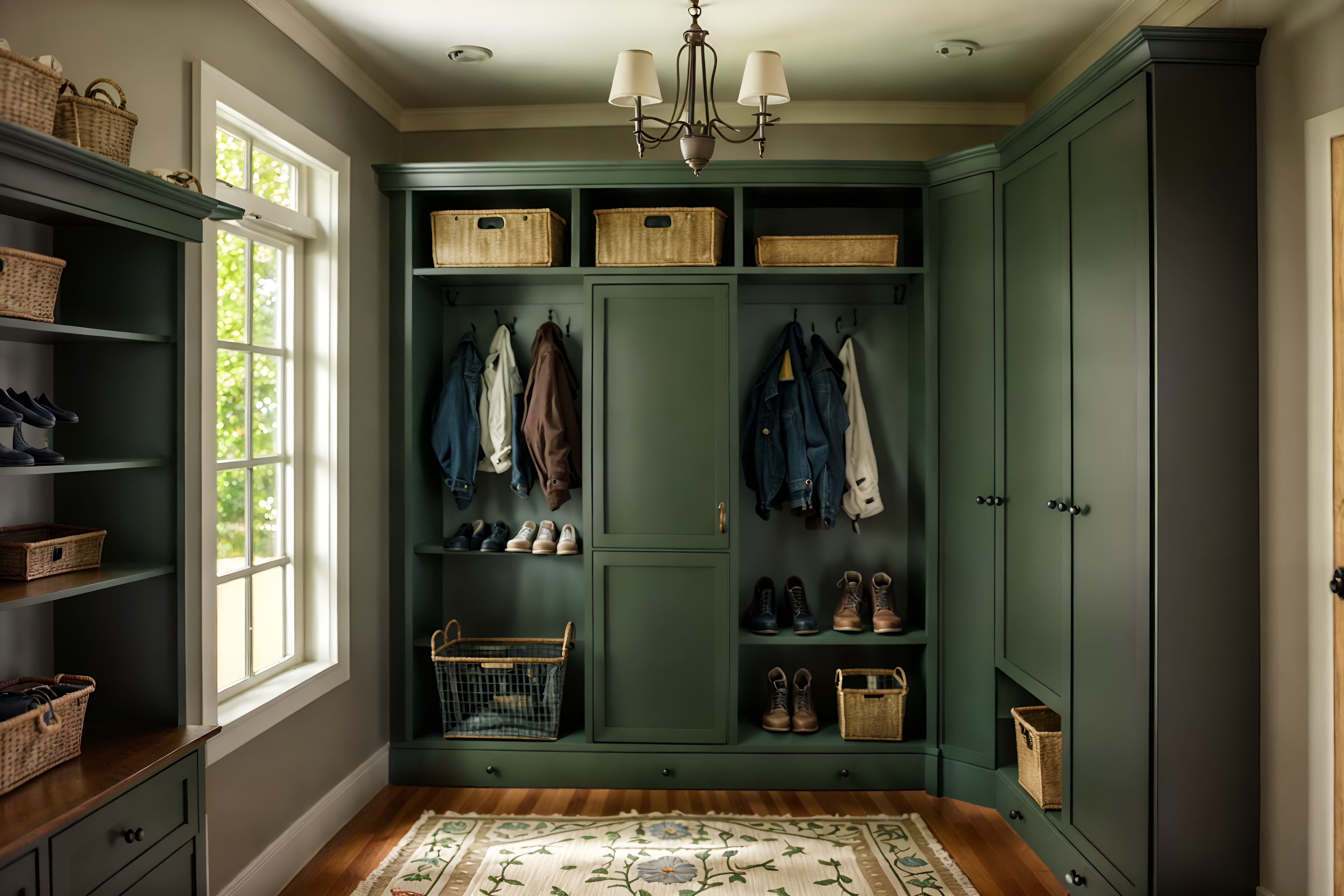 photo from pinterest of retro-style interior designed (mudroom interior) with wall hooks for coats and cubbies and high up storage and storage drawers and cabinets and storage baskets and a bench and shelves for shoes cinematic photo, highly detailed, cinematic lighting, ultra-detailed, ultrarealistic, photorealism, 8k. trending on pinterest. retro interior design style. masterpiece, cinematic light, ultrarealistic+, photorealistic+, 8k, raw photo, realistic, sharp focus on eyes, (symmetrical eyes), (intact eyes), hyperrealistic, highest quality, best quality, , highly detailed, masterpiece, best quality, extremely detailed 8k wallpaper, masterpiece, best quality, ultra-detailed, best shadow, detailed background, detailed face, detailed eyes, high contrast, best illumination, detailed face, dulux, caustic, dynamic angle, detailed glow. dramatic lighting. highly detailed, insanely detailed hair, symmetrical, intricate details, professionally retouched, 8k high definition. strong bokeh. award winning photo.